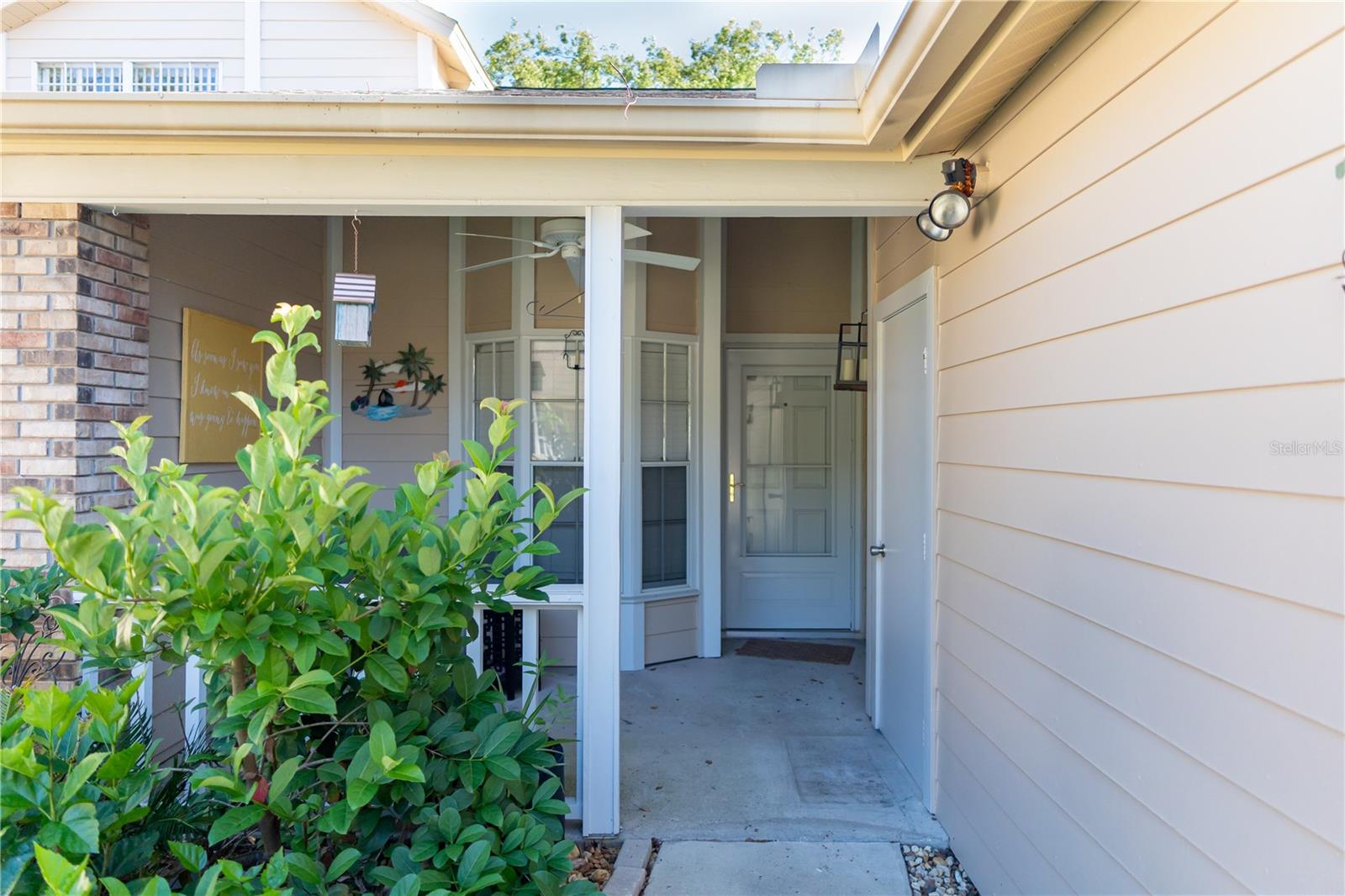 One or more photo(s) has been virtually staged. Welcome to this beautifully maintained 2-bedroom, 2-bathroom villa in the desirable maintenance-free 55+ community of Briar Patch. Enjoy your morning coffee on the spacious front porch or relax in the enclosed Florida room overlooking the serene backyard. This charming single-level home features an open floor plan with cathedral ceilings, a skylight that fills the living area with natural light, and bay windows in the kitchen. Both bedrooms feature upgraded tile plank flooring, adding a stylish and modern touch. The home also includes stainless steel appliances, walk-in closets, and a full-size washer and dryer for added convenience. The low monthly HOA fee covers lawn care, trash, exterior maintenance (including the roof), community pool, recreational facilities, and escrow reserves fund. Ideally located near restaurants, shopping, medical facilities, and beautiful Gulf Coast beaches, this villa offers comfort, convenience, and low-maintenance living. Come see it today!