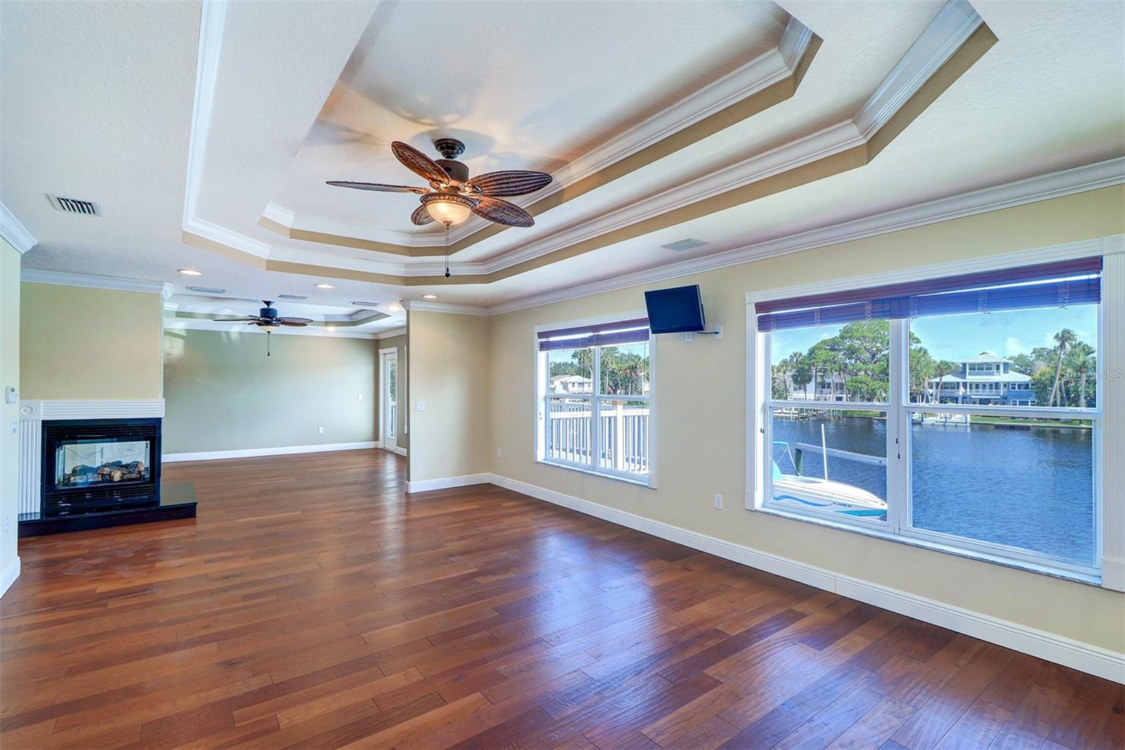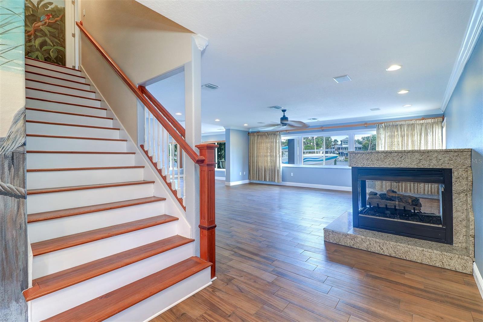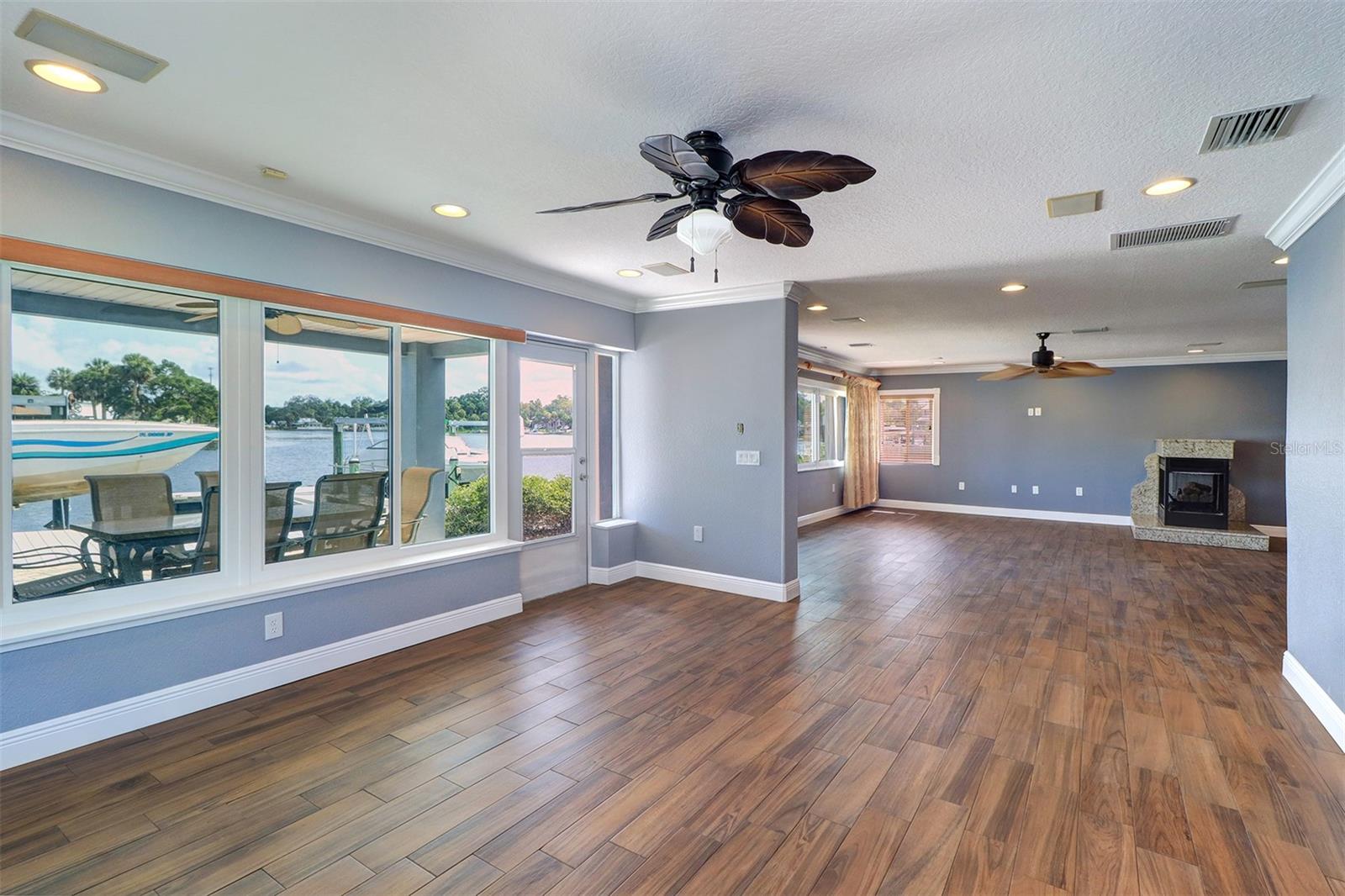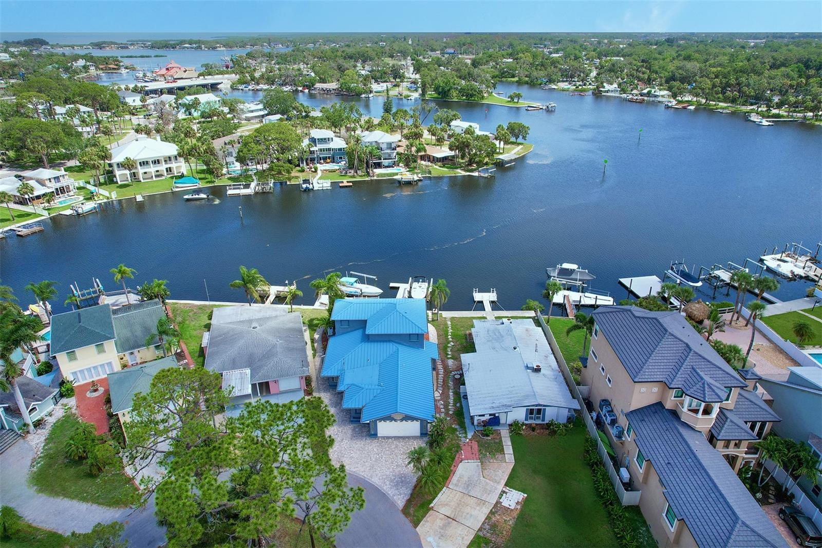 Discover this stunningly renovated Cotee Riverfront residence with 65 feet of composite board dock, a floating dock, two boat lifts, (24,000/8,000 PDS) and a paver lounge area, this home offers unparalleled access to the ever-active Cotee River. A spacious 20x30 oversized garage with extra Storage accommodates all your toys, complemented by an additional paved parking area and a 10x9 finished storage space with stylish c-tile flooring. The garage houses a full bath/laundry room, complete with c-tile flooring, granite counters, and a walk-in shower. Modern oversized 15x13 updated gourmet kitchen boasts 36-inch cabinets, soft-close drawers, granite countertops, and new appliances, including a coveted GAS range. C-tile and wood-grain composite flooring extend throughout, blending durability with elegance. Enjoy the breathtaking panoramic views of the Cotee River from the expansive 33x25 great room, featuring a gas fireplace. The adjoining 16x15 dining area opens onto a 16x15 covered lanai, perfect for seamless indoor-outdoor living and entertaining by the river. Two spacious bedrooms on the main level provide comfort and convenience. Upstairs, the luxurious 15x32 ensuite offers a gas fireplace, an adjacent 15x15 private sitting area, and exclusive access to an 18x12 observation platform for stunning river vistas. The ensuite bathroom showcases a wraparound walk-in shower and dual c-tile sinks. A durable metal roof ensures peace of mind. Equipped with two AC units for optimal climate control. With three bedrooms, three baths, and 2,800 sq. ft. of refined living space, this home redefines modern riverfront living. And best of all, enjoy the golf cart friendly always active downtown New Port Richey with many upscale restaurants and unending riverfront activities for the whole family.