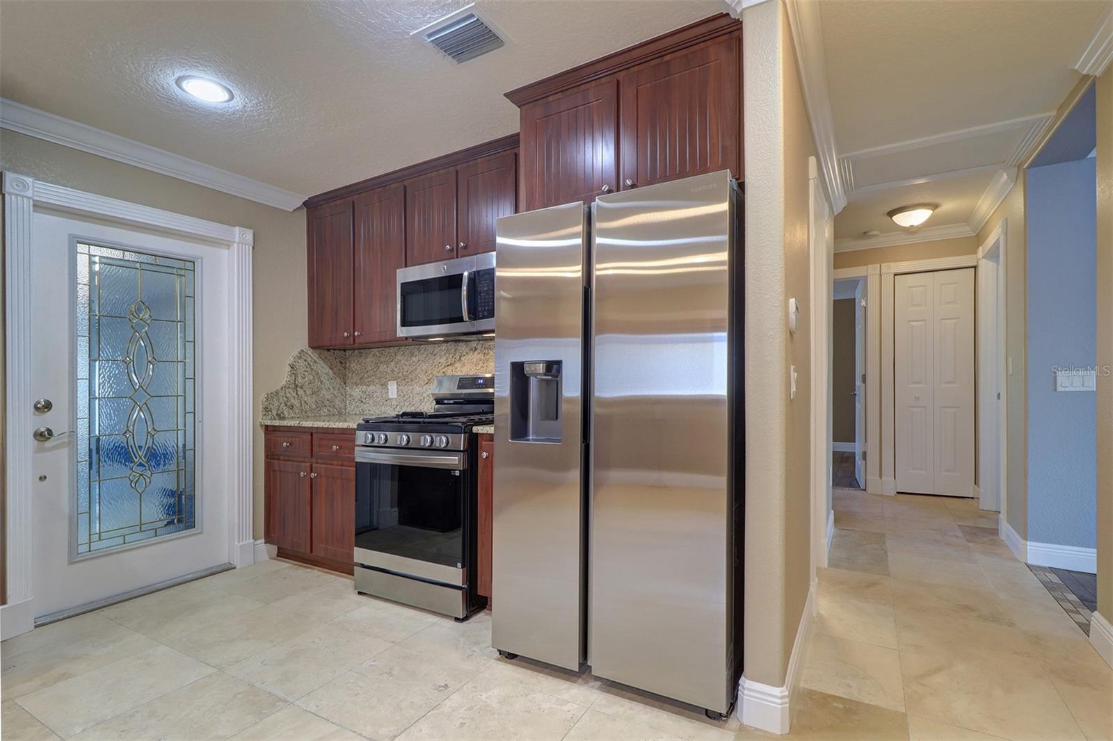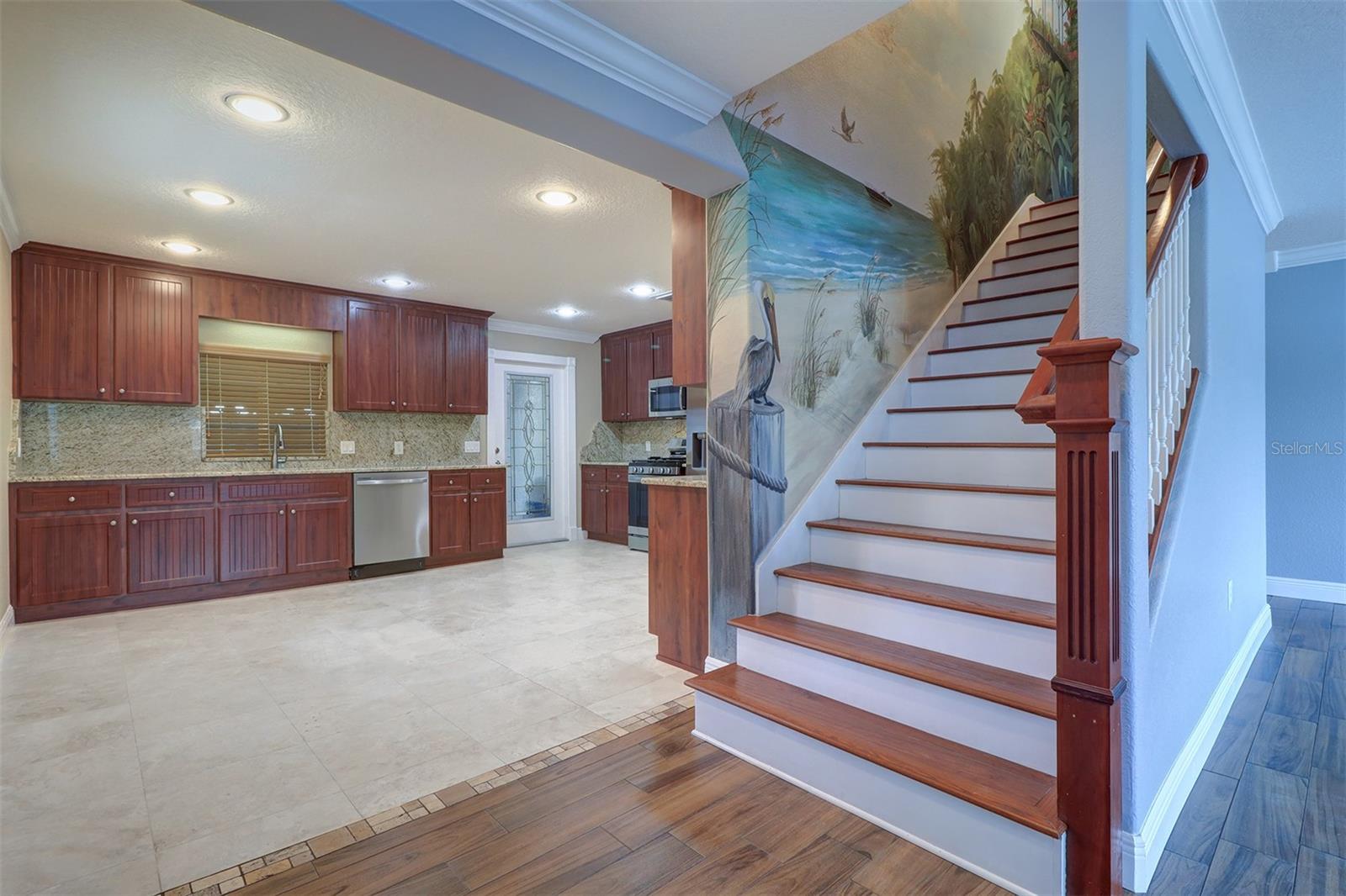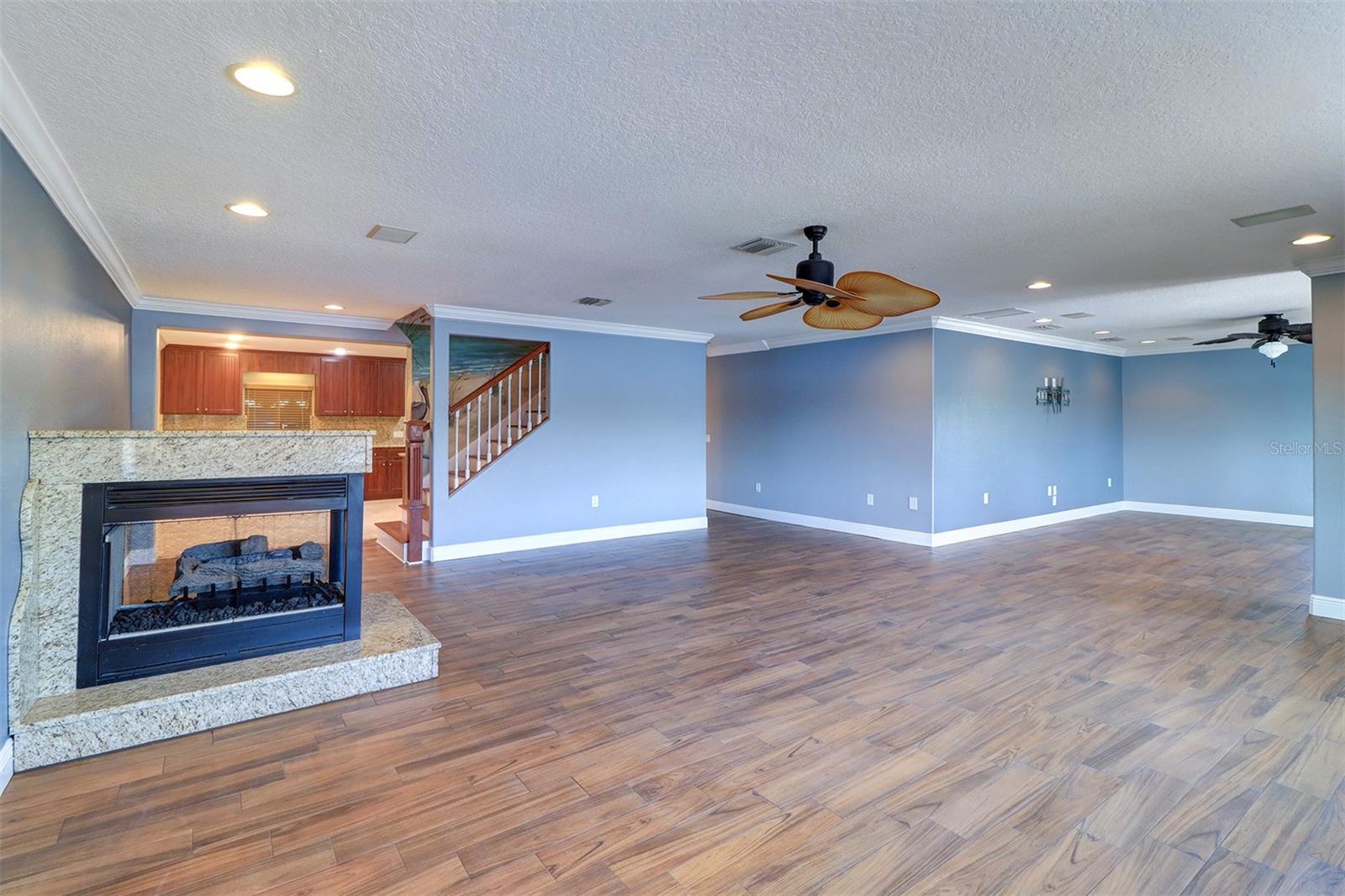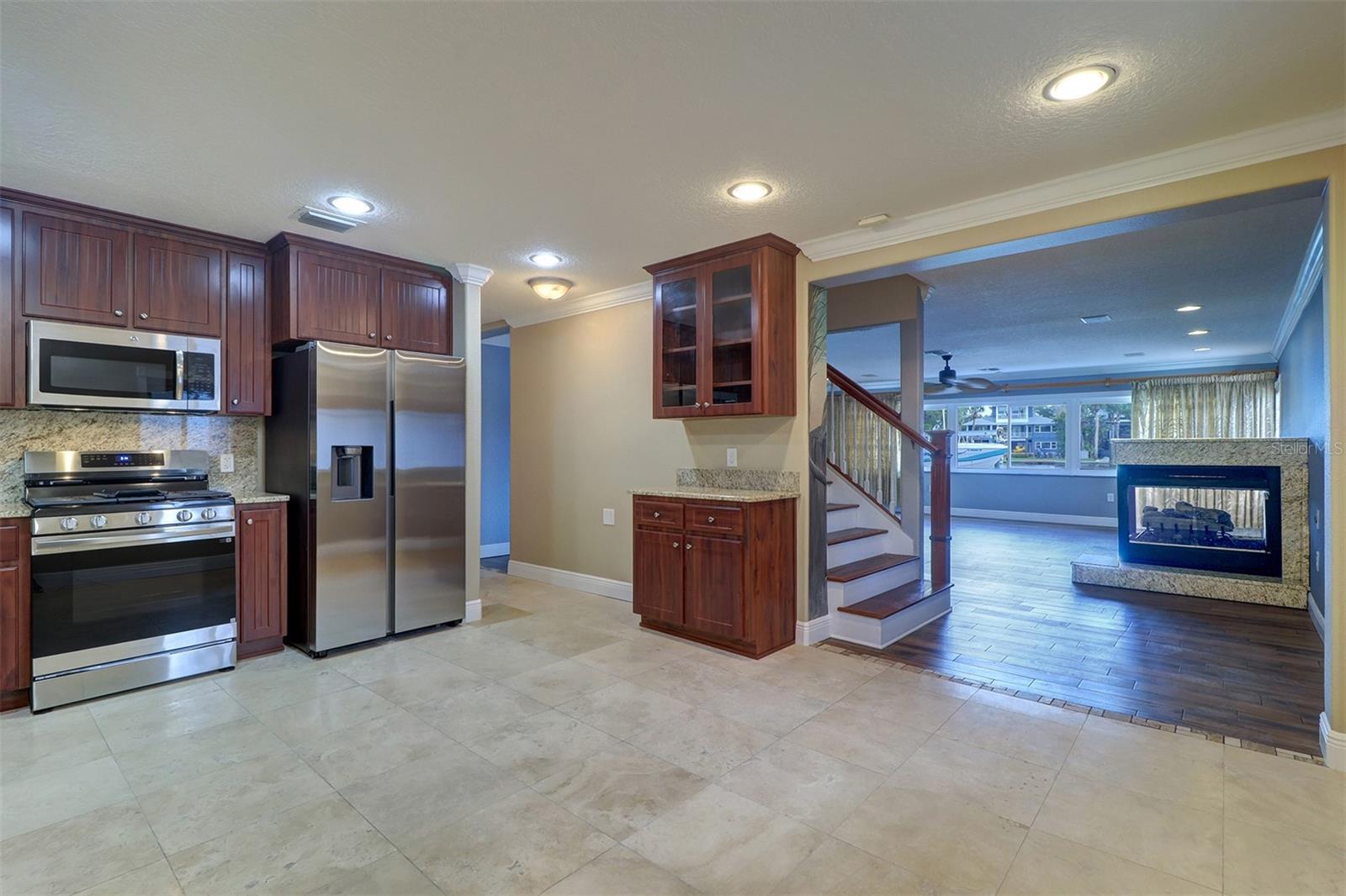 Discover this stunningly renovated Cotee Riverfront residence with 65 feet of composite board dock, a floating dock, two boat lifts, (24,000/8,000 PDS) and a paver lounge area, this home offers unparalleled access to the ever-active Cotee River. A spacious 20x30 oversized garage with extra Storage accommodates all your toys, complemented by an additional paved parking area and a 10x9 finished storage space with stylish c-tile flooring. The garage houses a full bath/laundry room, complete with c-tile flooring, granite counters, and a walk-in shower. Modern oversized 15x13 updated gourmet kitchen boasts 36-inch cabinets, soft-close drawers, granite countertops, and new appliances, including a coveted GAS range. C-tile and wood-grain composite flooring extend throughout, blending durability with elegance. Enjoy the breathtaking panoramic views of the Cotee River from the expansive 33x25 great room, featuring a gas fireplace. The adjoining 16x15 dining area opens onto a 16x15 covered lanai, perfect for seamless indoor-outdoor living and entertaining by the river. Two spacious bedrooms on the main level provide comfort and convenience. Upstairs, the luxurious 15x32 ensuite offers a gas fireplace, an adjacent 15x15 private sitting area, and exclusive access to an 18x12 observation platform for stunning river vistas. The ensuite bathroom showcases a wraparound walk-in shower and dual c-tile sinks. A durable metal roof ensures peace of mind. Equipped with two AC units for optimal climate control. With three bedrooms, three baths, and 2,800 sq. ft. of refined living space, this home redefines modern riverfront living. And best of all, enjoy the golf cart friendly always active downtown New Port Richey with many upscale restaurants and unending riverfront activities for the whole family.