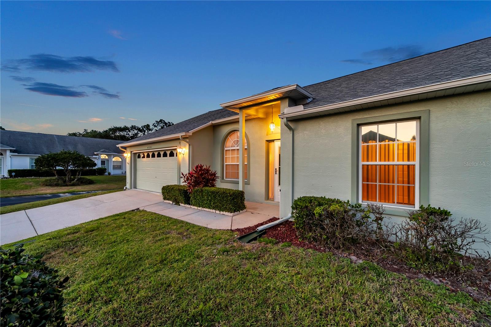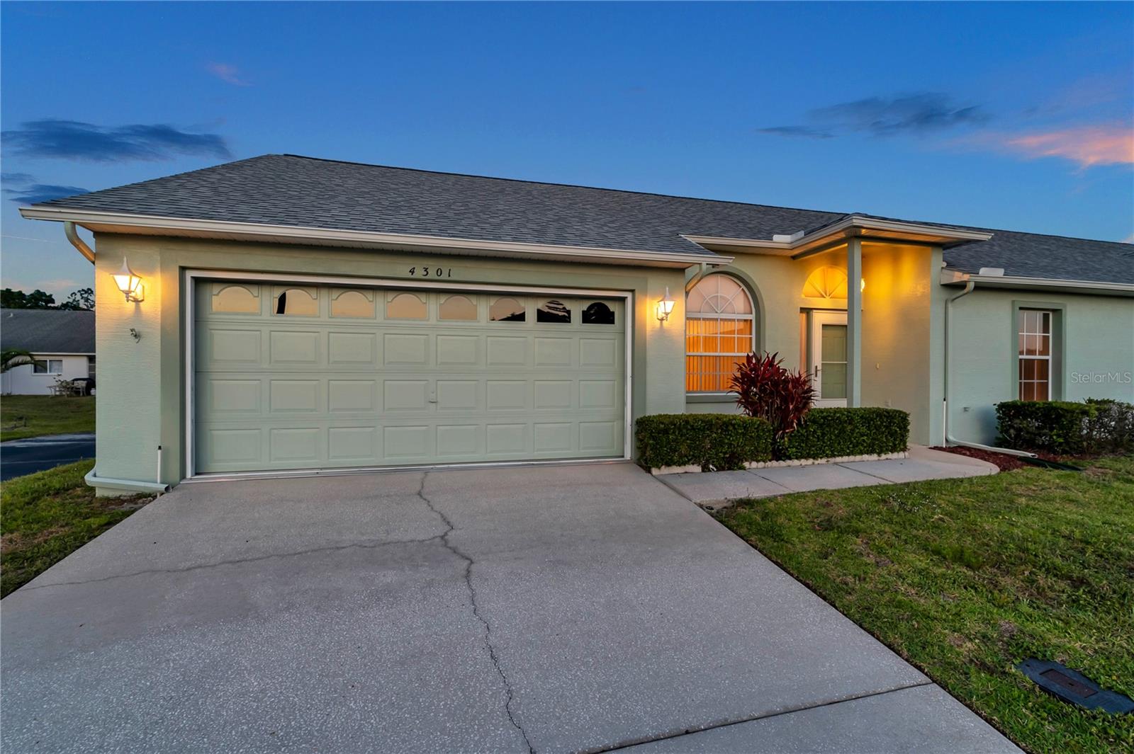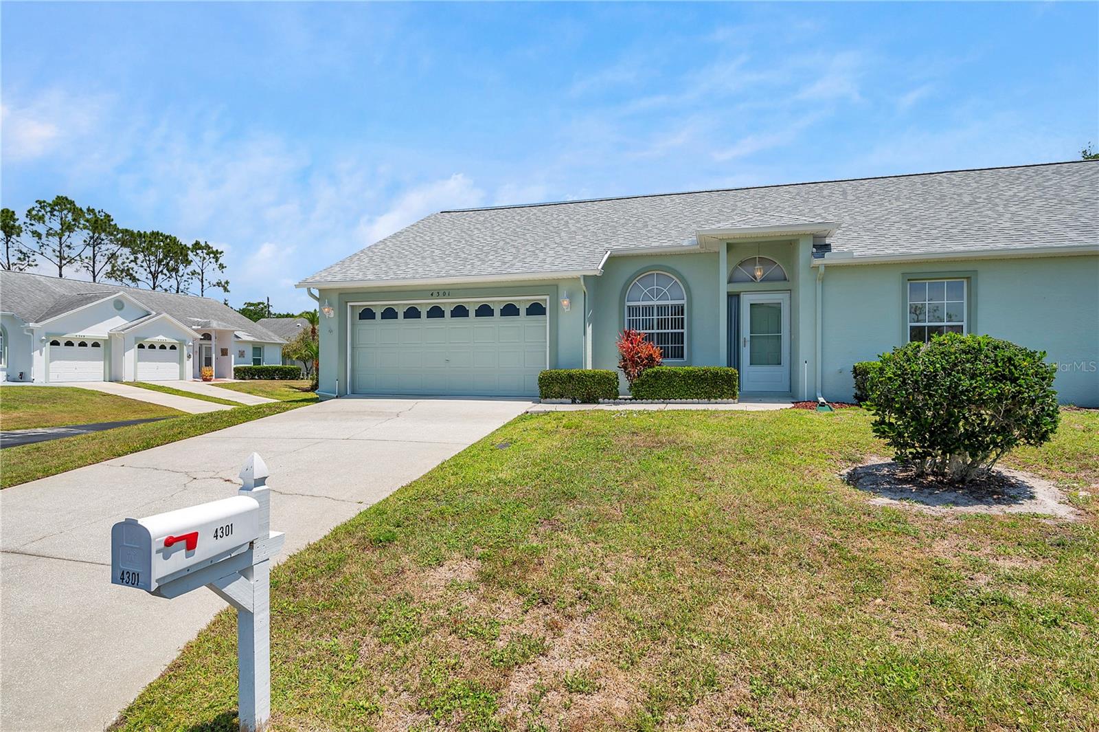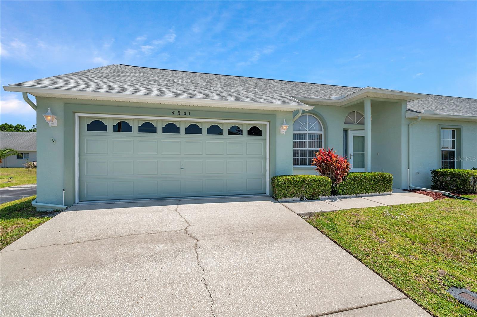 A home of SIMPLICITY and PEACE and neighborly JOY, this villa calls to the soul that longs for order, warmth, and rest. May the one meant to dwell here feel the nudge of HEAVEN and the whisper, “This is yours.” OVERSIZED END-UNIT. ELONGATED DRIVEWAY. EXTERIOR FRESHLY PAINTED. 2 bedrooms, 2 bathrooms, a versatile office/flex space, an enclosed Florida room (double pocket doors), and a spacious 2-car garage. Located in a maintenance-free, golf cart-friendly community with a low monthly HOA of just $286.00, this home provides a comfortable and convenient lifestyle. HOA dues cover full lawn care & maintenance, roof replacement and exterior paint. The community features a pool, shuffleboard, a screened area for socializing or playing cards, and a beautiful nature area perfect for relaxing, watching wildlife, or even fishing in the community waters that connect to Anclote River. The villa has been well maintained with notable updates including a new roof installed in 2019, exterior paint in 2020, new garage side door, new ballasts in kitchen & baths, new garbage disposal, and a stylish glass front door replaced in October 2023, HVAC system (2023), water heater (2021), microwave (2022), WHOLE HOME water softener system (2023), sink faucet (2023), raised toilets (2017 and 2024). Additional features include the kitchen eat-in area with Bay windows, walk-in closet in primary bedroom, plenty of closet space, no carpet! Garage features; attic with pulldown ladder, light and additional storage boards that go full length from side-to-side of garage, side door entry, utility sink and rebuilt garage door (2018) that includes new O.R.B. (Operator Reinforcement Bracket), Neoprene rollers & (2) remotes. In addition, garage screens. 14X8 sq. ft. sweet concrete pad perfect for evening meals Additional features include downspouts and gutters, a front-entry water bib, and key access with a small key for the glass door and one matching key for both front and back doors. Floor Plan on file. PRIME LOCATION with something to offer EVERYONE. Close proximity to several beaches, beautiful golf courses, favorite restaurants, boat marinas, churches, bike trails, local markets & more. Buy a Little Piece of Florida Now!