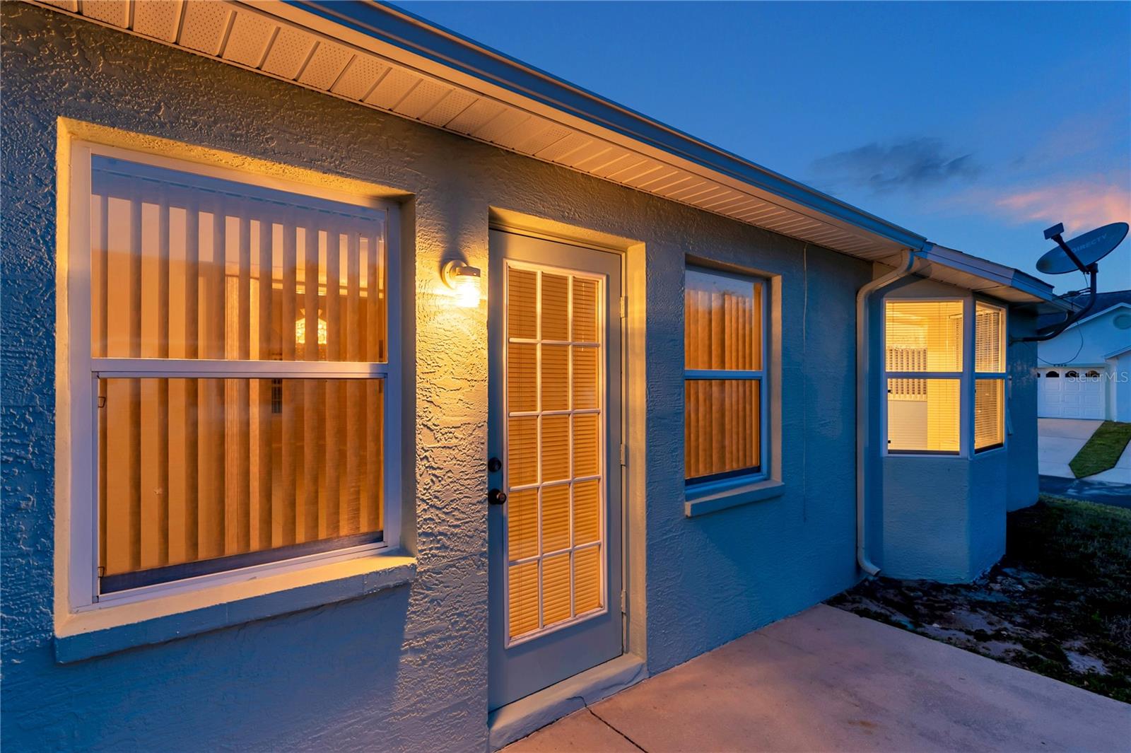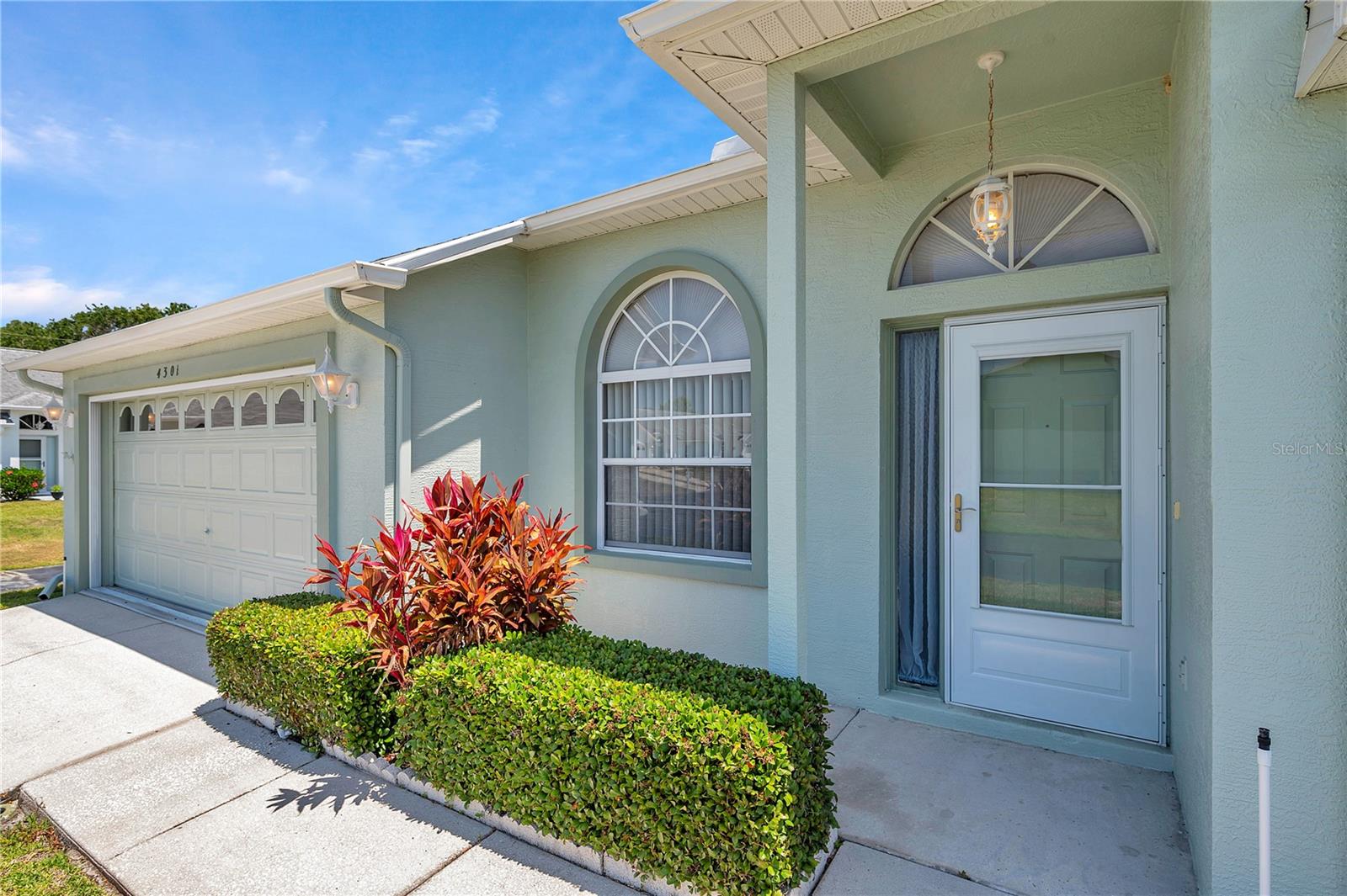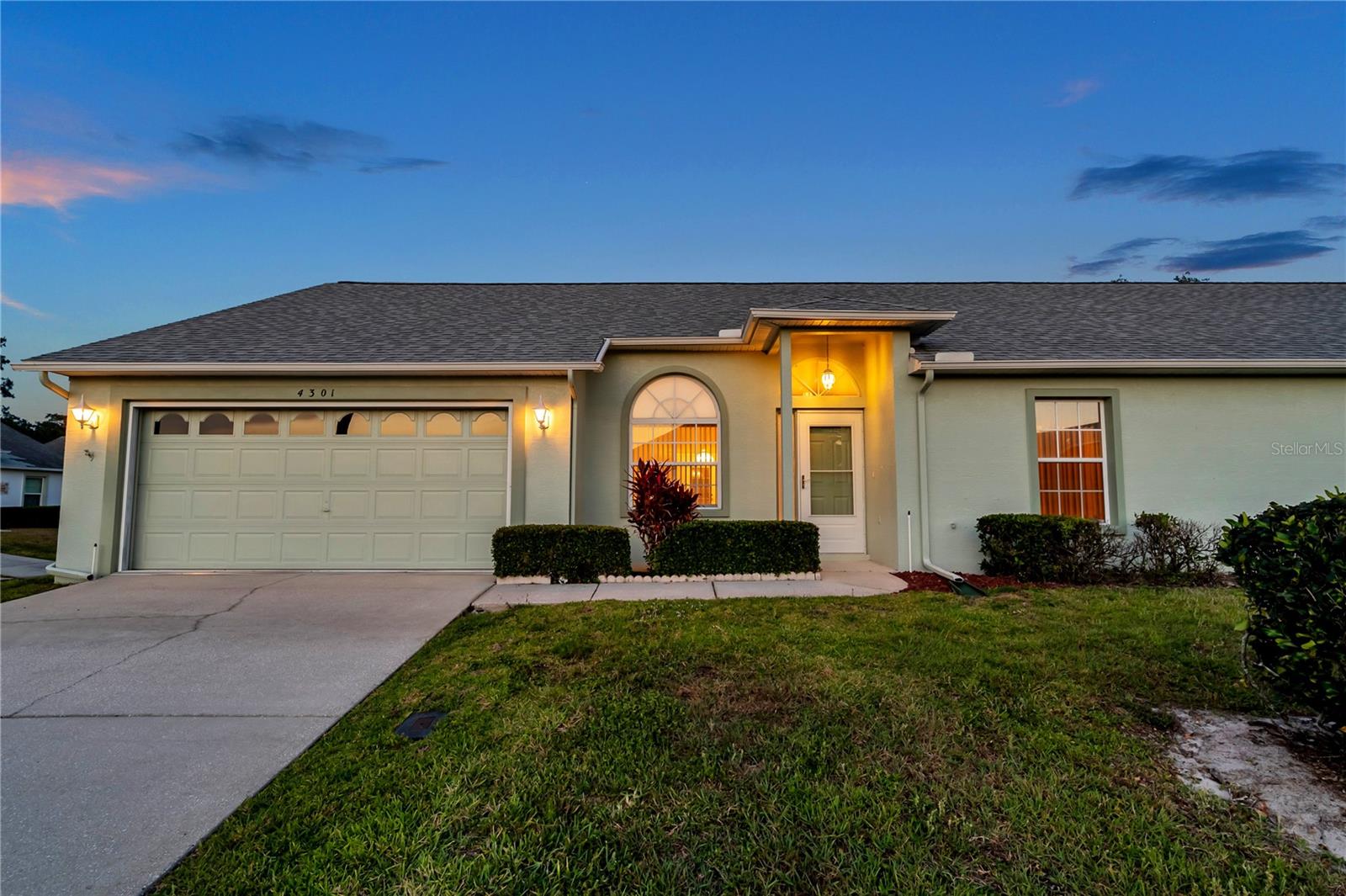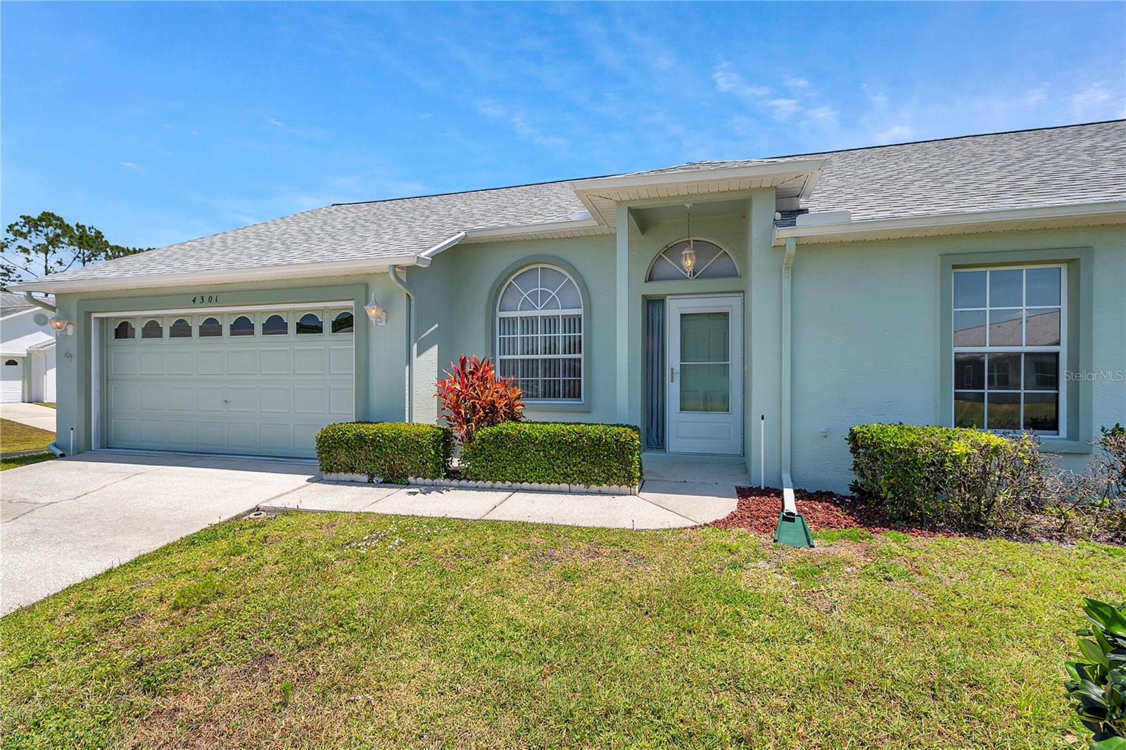 A home of SIMPLICITY and PEACE and neighborly JOY, this villa calls to the soul that longs for order, warmth, and rest. May the one meant to dwell here feel the nudge of HEAVEN and the whisper, “This is yours.” OVERSIZED END-UNIT. ELONGATED DRIVEWAY. EXTERIOR FRESHLY PAINTED. 2 bedrooms, 2 bathrooms, a versatile office/flex space, an enclosed Florida room (double pocket doors), and a spacious 2-car garage. Located in a maintenance-free, golf cart-friendly community with a low monthly HOA of just $286.00, this home provides a comfortable and convenient lifestyle. HOA dues cover full lawn care & maintenance, roof replacement and exterior paint. The community features a pool, shuffleboard, a screened area for socializing or playing cards, and a beautiful nature area perfect for relaxing, watching wildlife, or even fishing in the community waters that connect to Anclote River. The villa has been well maintained with notable updates including a new roof installed in 2019, exterior paint in 2020, new garage side door, new ballasts in kitchen & baths, new garbage disposal, and a stylish glass front door replaced in October 2023, HVAC system (2023), water heater (2021), microwave (2022), WHOLE HOME water softener system (2023), sink faucet (2023), raised toilets (2017 and 2024). Additional features include the kitchen eat-in area with Bay windows, walk-in closet in primary bedroom, plenty of closet space, no carpet! Garage features; attic with pulldown ladder, light and additional storage boards that go full length from side-to-side of garage, side door entry, utility sink and rebuilt garage door (2018) that includes new O.R.B. (Operator Reinforcement Bracket), Neoprene rollers & (2) remotes. In addition, garage screens. 14X8 sq. ft. sweet concrete pad perfect for evening meals Additional features include downspouts and gutters, a front-entry water bib, and key access with a small key for the glass door and one matching key for both front and back doors. Floor Plan on file. PRIME LOCATION with something to offer EVERYONE. Close proximity to several beaches, beautiful golf courses, favorite restaurants, boat marinas, churches, bike trails, local markets & more. Buy a Little Piece of Florida Now!