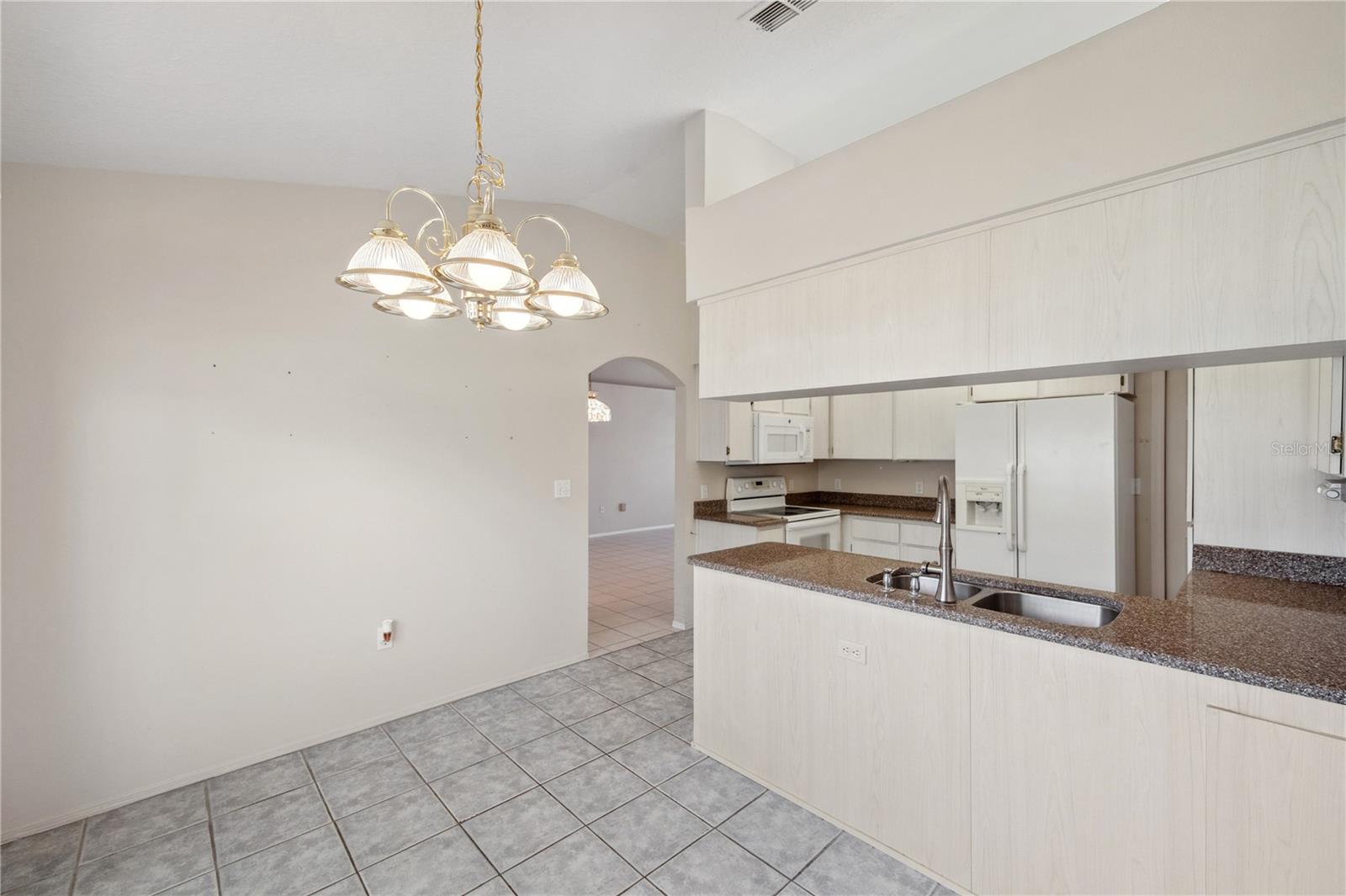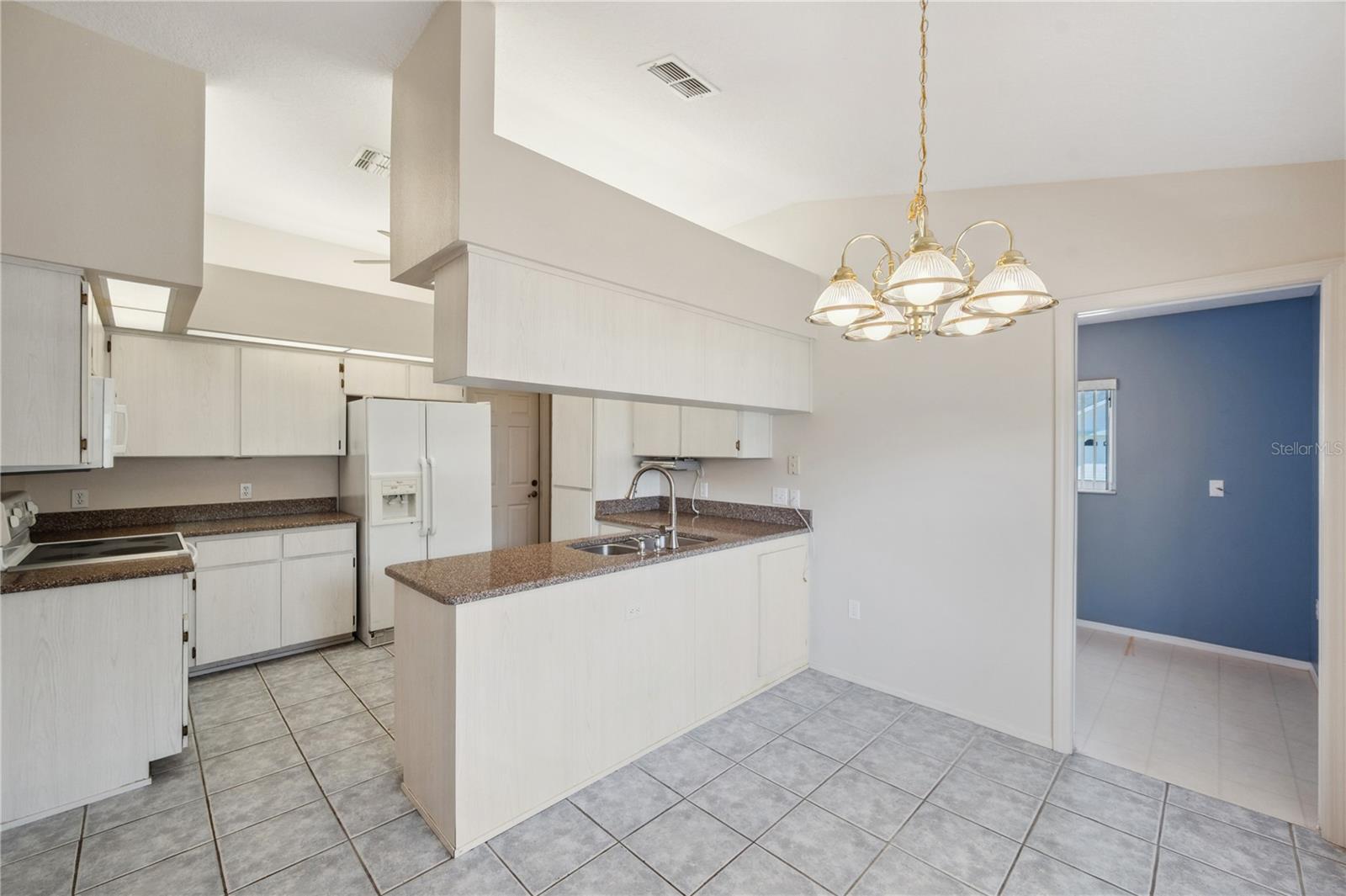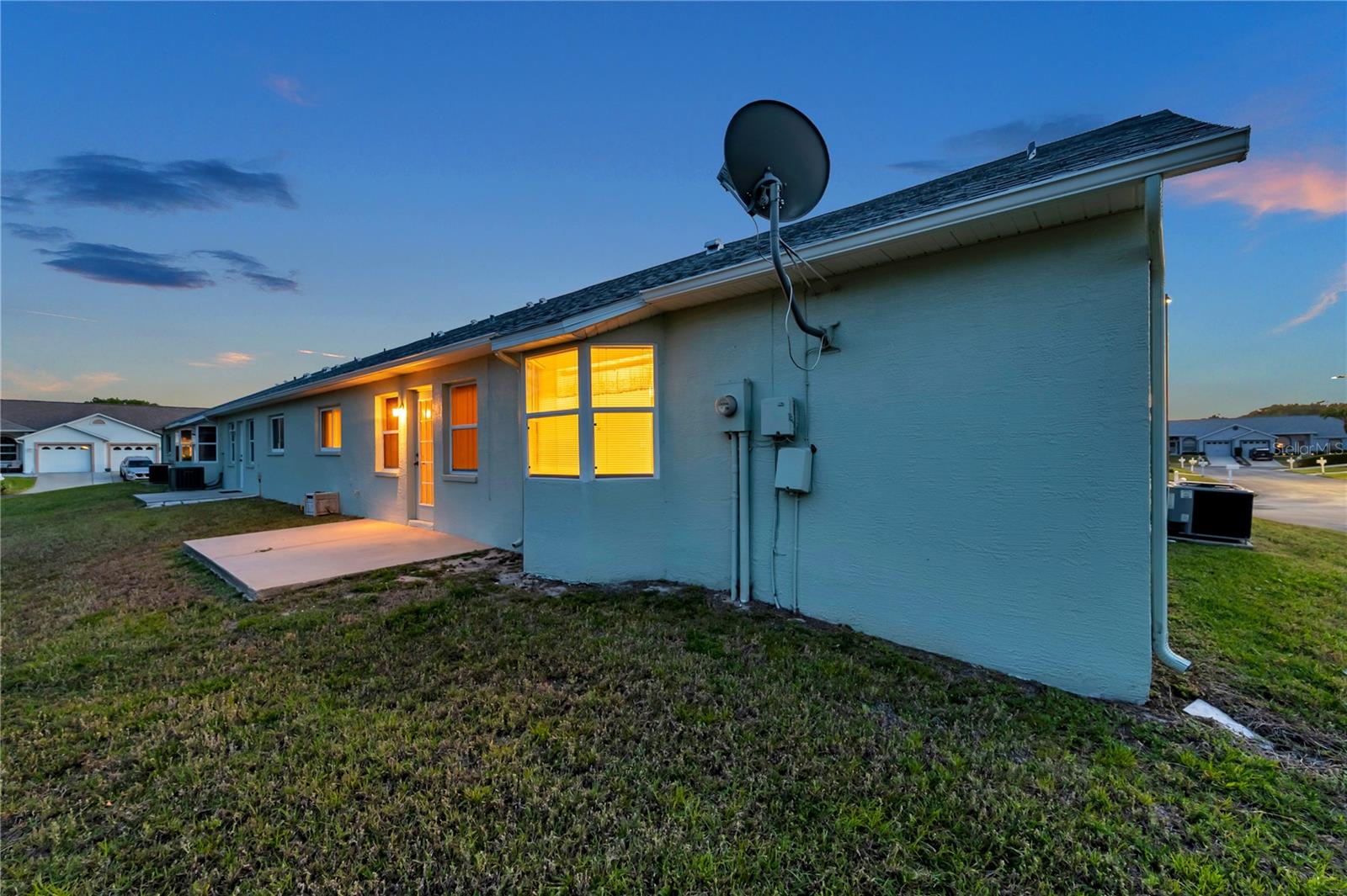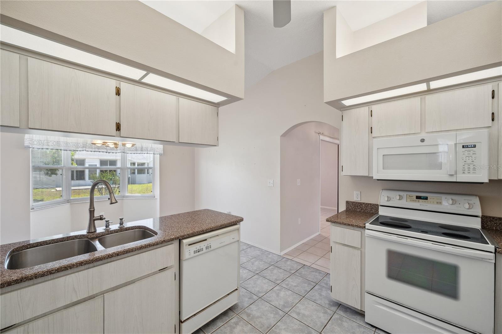 A home of SIMPLICITY and PEACE and neighborly JOY, this villa calls to the soul that longs for order, warmth, and rest. May the one meant to dwell here feel the nudge of HEAVEN and the whisper, “This is yours.” OVERSIZED END-UNIT. ELONGATED DRIVEWAY. EXTERIOR FRESHLY PAINTED. 2 bedrooms, 2 bathrooms, a versatile office/flex space, an enclosed Florida room (double pocket doors), and a spacious 2-car garage. Located in a maintenance-free, golf cart-friendly community with a low monthly HOA of just $286.00, this home provides a comfortable and convenient lifestyle. HOA dues cover full lawn care & maintenance, roof replacement and exterior paint. The community features a pool, shuffleboard, a screened area for socializing or playing cards, and a beautiful nature area perfect for relaxing, watching wildlife, or even fishing in the community waters that connect to Anclote River. The villa has been well maintained with notable updates including a new roof installed in 2019, exterior paint in 2020, new garage side door, new ballasts in kitchen & baths, new garbage disposal, and a stylish glass front door replaced in October 2023, HVAC system (2023), water heater (2021), microwave (2022), WHOLE HOME water softener system (2023), sink faucet (2023), raised toilets (2017 and 2024). Additional features include the kitchen eat-in area with Bay windows, walk-in closet in primary bedroom, plenty of closet space, no carpet! Garage features; attic with pulldown ladder, light and additional storage boards that go full length from side-to-side of garage, side door entry, utility sink and rebuilt garage door (2018) that includes new O.R.B. (Operator Reinforcement Bracket), Neoprene rollers & (2) remotes. In addition, garage screens. 14X8 sq. ft. sweet concrete pad perfect for evening meals Additional features include downspouts and gutters, a front-entry water bib, and key access with a small key for the glass door and one matching key for both front and back doors. Floor Plan on file. PRIME LOCATION with something to offer EVERYONE. Close proximity to several beaches, beautiful golf courses, favorite restaurants, boat marinas, churches, bike trails, local markets & more. Buy a Little Piece of Florida Now!