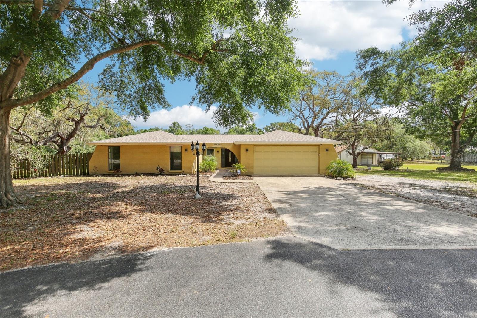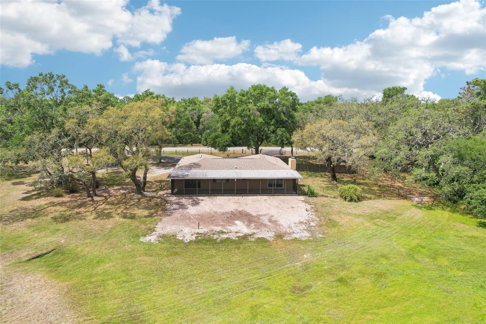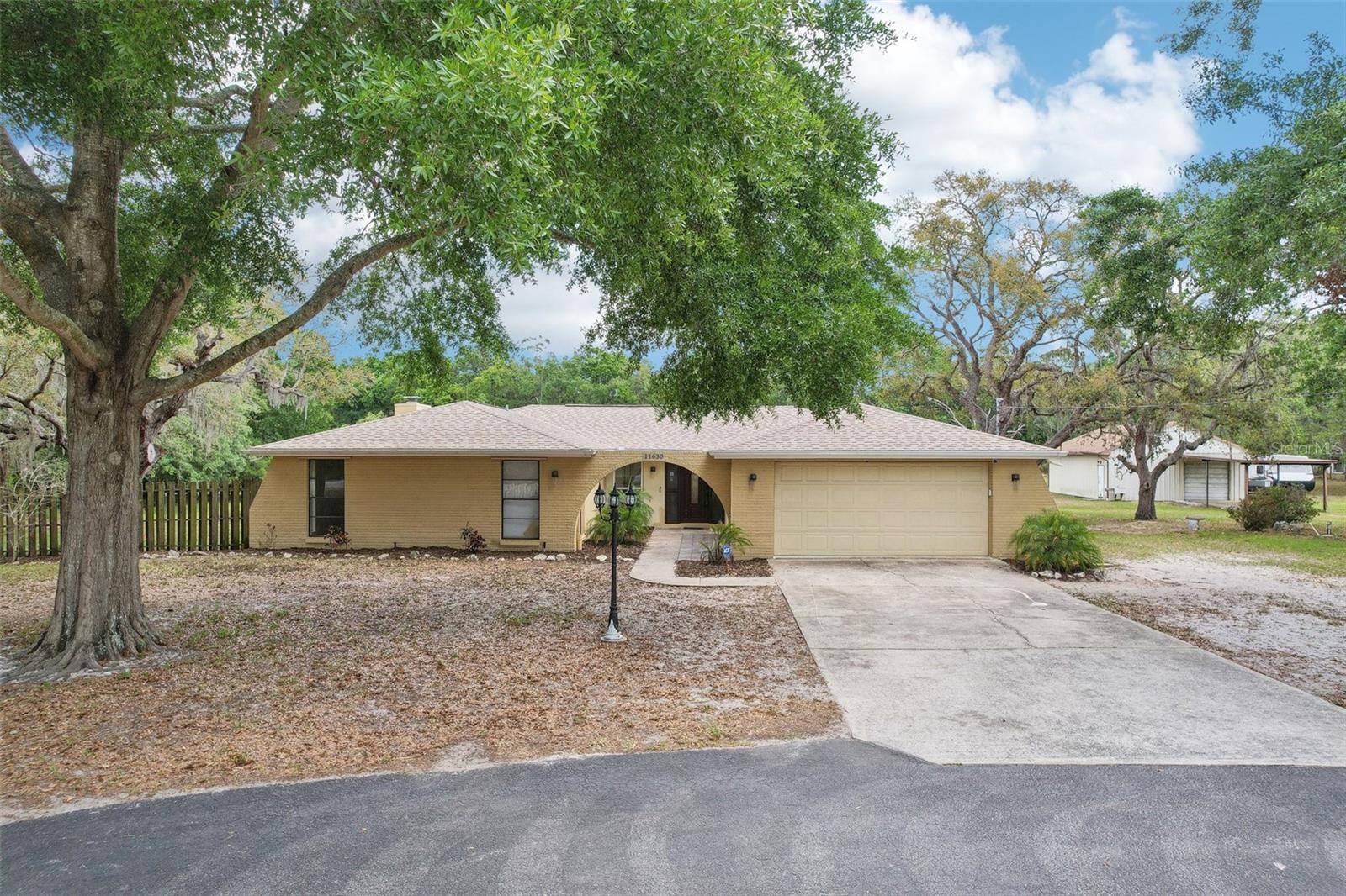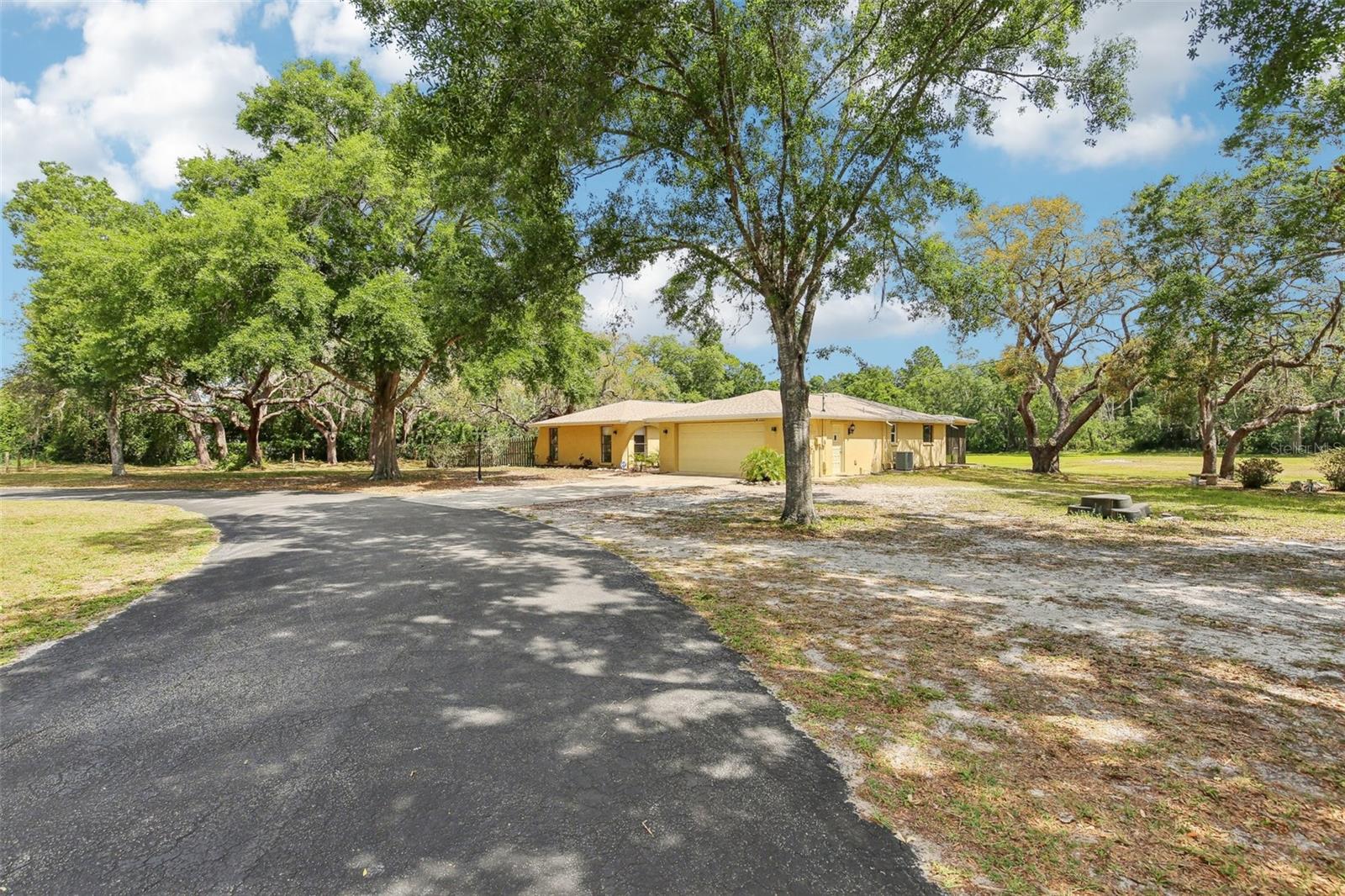 One or more photo(s) has been virtually staged. Welcome to 11630 Osceola Drive - Modern Country Living on Nearly 3 Acres (2 Lots Totaling 2.73 Acres) – Fully Renovated and Move-In Ready! This residence is tucked away on your own private oasis with circular driveway and over 2000SF of living space. It has been exceptionally updated, providing 3-bedrooms, 2-bathrooms combining modern comfort and country charm. Every inch of this property has been thoughtfully re imagined—from the 2021 roof installation to the sleek luxury vinyl flooring throughout—absolutely no carpet in sight! Step inside and be instantly drawn to the heart of the home: a bright, open kitchen featuring crisp shaker cabinets, granite countertops, a tile backsplash, and stainless steel appliances. Just off the kitchen, a versatile nook with a built-in dry bar offers the perfect space for a coffee station, buffet setup, or pantry expansion—tailored to your lifestyle. The split-bedroom layout ensures privacy, with a spacious primary suite that opens directly to an expansive screened-in patio stretching the full length of the home—ideal for morning coffee, evening relaxation, or entertaining under the stars. The en-suite bath is both tech-savvy and luxurious, featuring smart lighting and built-in speakers that sync with Alexa. Additional upgrades include hurricane shutters for peace of mind, a whole-home water softener system, updated duct-work, a 2021 Water Heater, updated electrical, new fixtures, ceiling fans, and lighting—truly move-in ready with no detail overlooked. Outside, your options are limitless: park your RV or boat with ease, let your animals roam freely with ER zoning, or get to work in the oversized workshop (40x26) with electric door opener—fully outfitted with electric, plumbing, and its own attic. There’s also an additional powered shed, a private pond, and best of all—No HOA, No CDD, and Non Flood Zone. This one-of-a-kind property offers space, freedom, and functionality—a rare combination you won’t want to miss (APNs 12-25-16-0020-00000-0220 and 12-25-16-0020-00000-0231 Included).