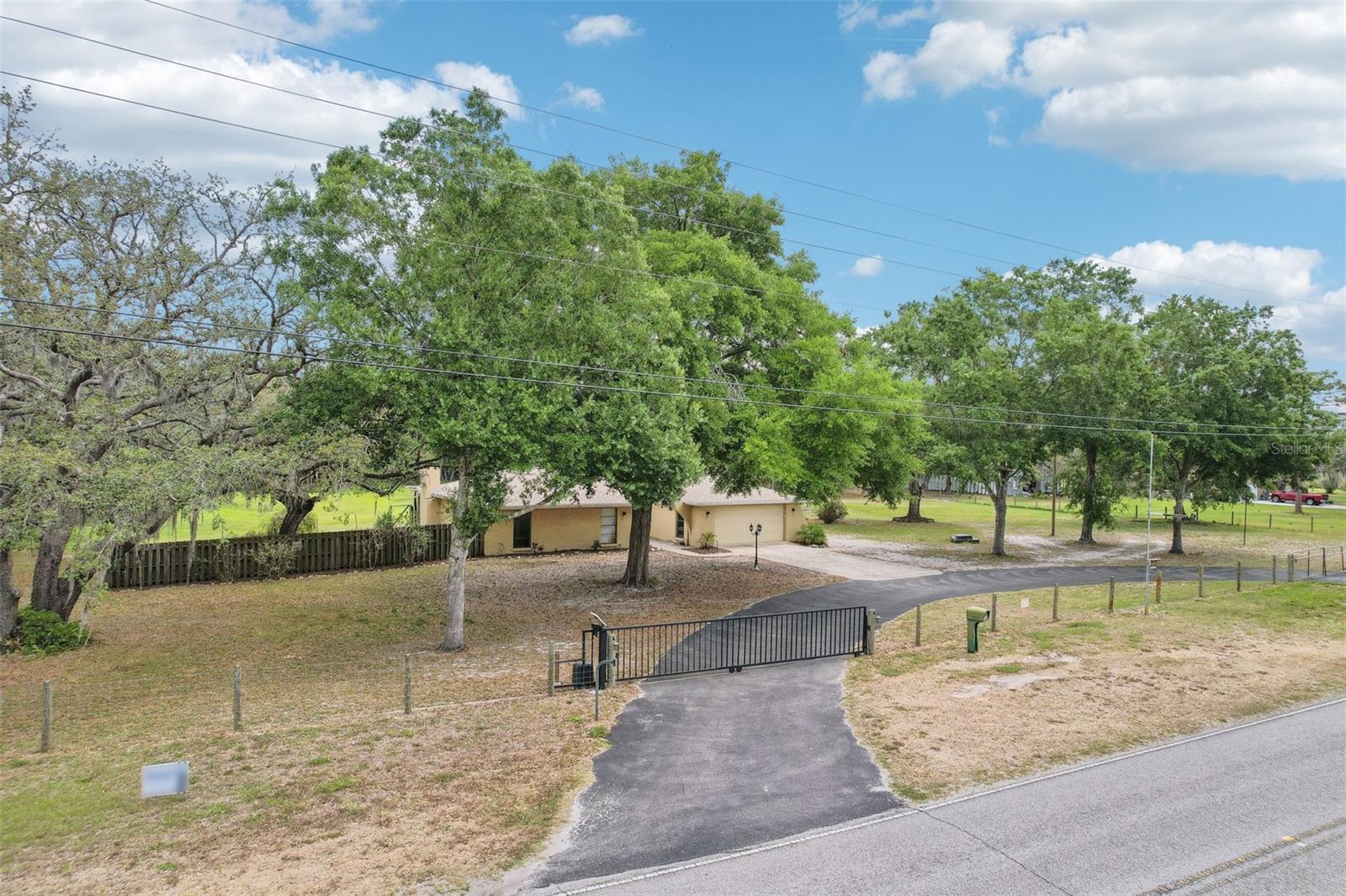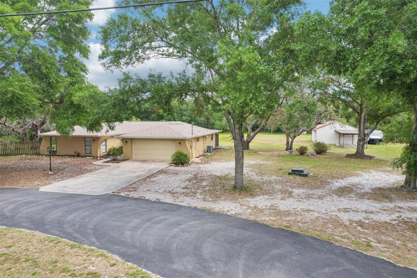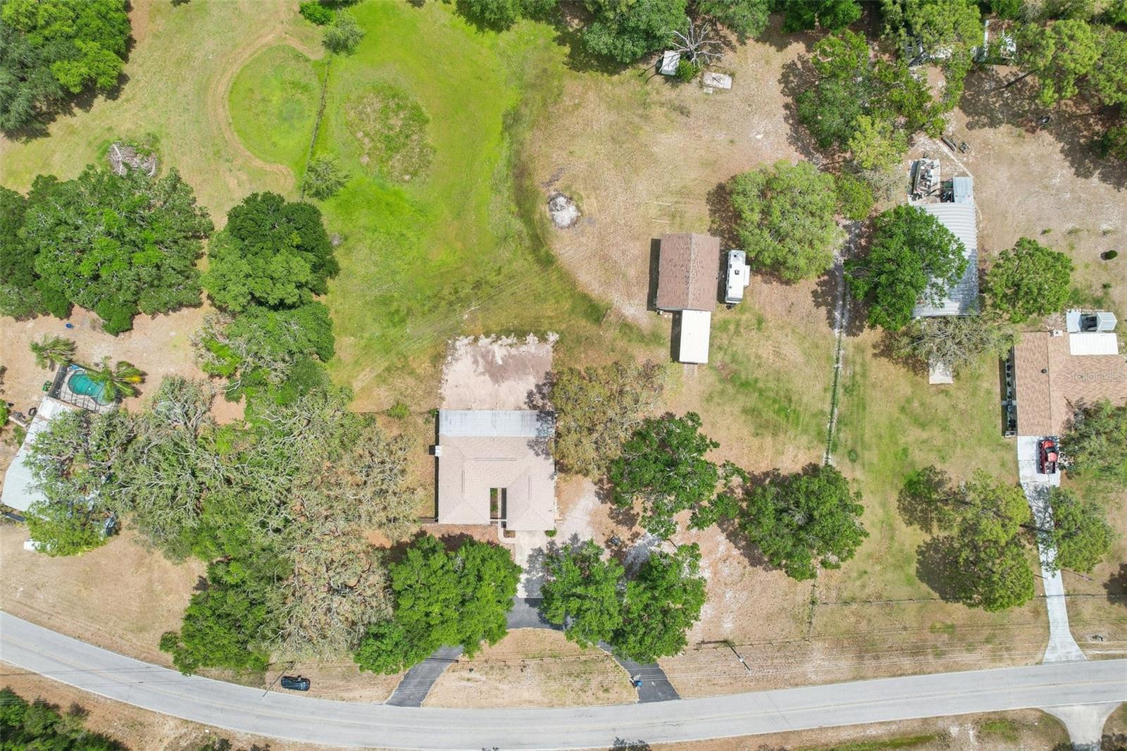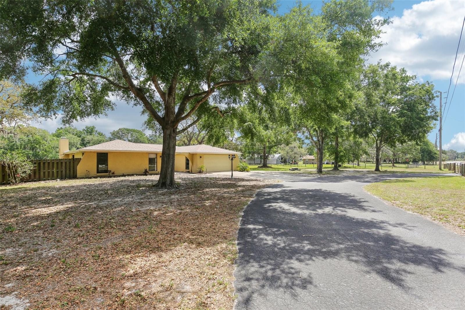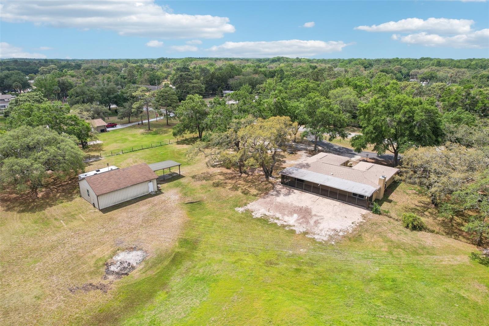 One or more photo(s) has been virtually staged. Welcome to 11630 Osceola Drive - Modern Country Living on Nearly 3 Acres (2 Lots Totaling 2.73 Acres) – Fully Renovated and Move-In Ready! This residence is tucked away on your own private oasis with circular driveway and over 2000SF of living space. It has been exceptionally updated, providing 3-bedrooms, 2-bathrooms combining modern comfort and country charm. Every inch of this property has been thoughtfully re imagined—from the 2021 roof installation to the sleek luxury vinyl flooring throughout—absolutely no carpet in sight! Step inside and be instantly drawn to the heart of the home: a bright, open kitchen featuring crisp shaker cabinets, granite countertops, a tile backsplash, and stainless steel appliances. Just off the kitchen, a versatile nook with a built-in dry bar offers the perfect space for a coffee station, buffet setup, or pantry expansion—tailored to your lifestyle. The split-bedroom layout ensures privacy, with a spacious primary suite that opens directly to an expansive screened-in patio stretching the full length of the home—ideal for morning coffee, evening relaxation, or entertaining under the stars. The en-suite bath is both tech-savvy and luxurious, featuring smart lighting and built-in speakers that sync with Alexa. Additional upgrades include hurricane shutters for peace of mind, a whole-home water softener system, updated duct-work, a 2021 Water Heater, updated electrical, new fixtures, ceiling fans, and lighting—truly move-in ready with no detail overlooked. Outside, your options are limitless: park your RV or boat with ease, let your animals roam freely with ER zoning, or get to work in the oversized workshop (40x26) with electric door opener—fully outfitted with electric, plumbing, and its own attic. There’s also an additional powered shed, a private pond, and best of all—No HOA, No CDD, and Non Flood Zone. This one-of-a-kind property offers space, freedom, and functionality—a rare combination you won’t want to miss (APNs 12-25-16-0020-00000-0220 and 12-25-16-0020-00000-0231 Included).