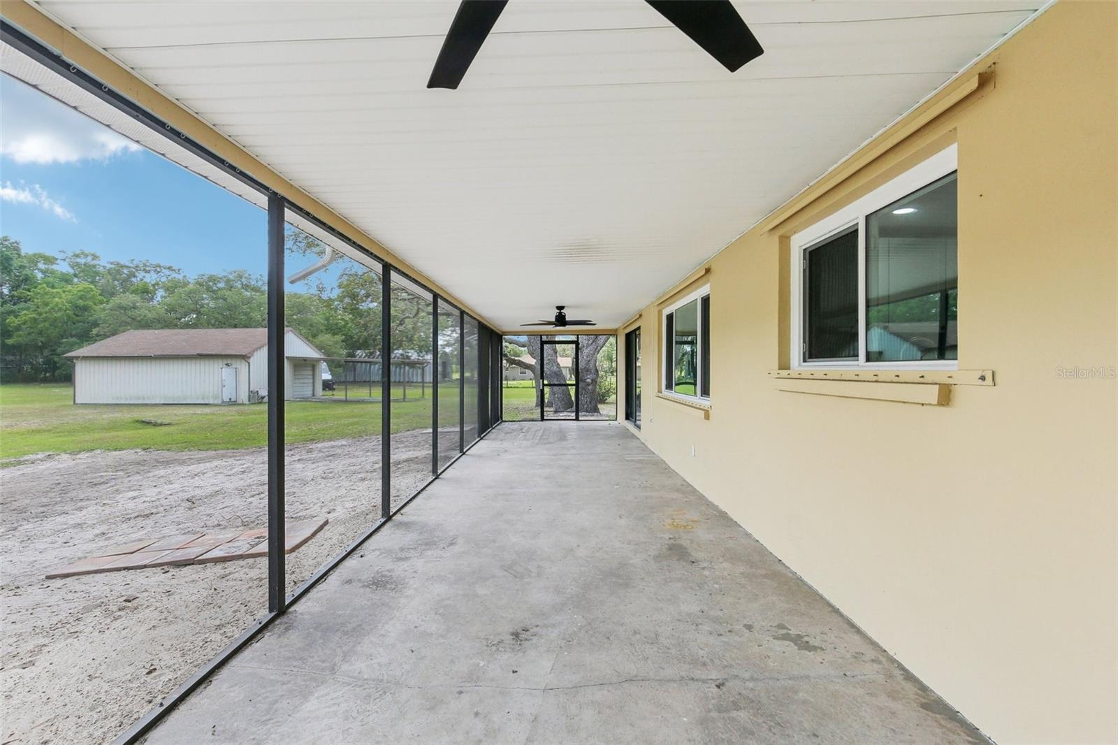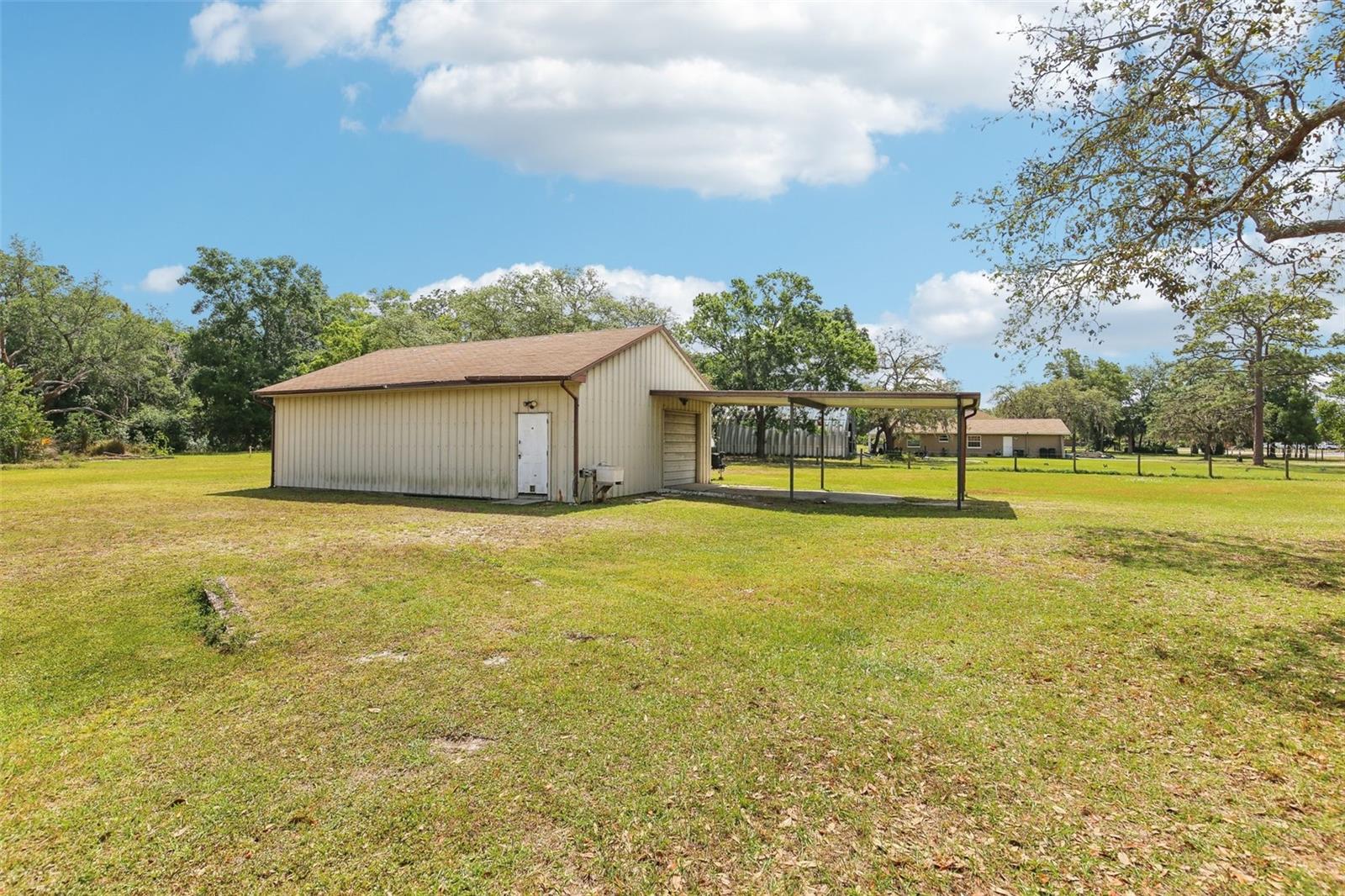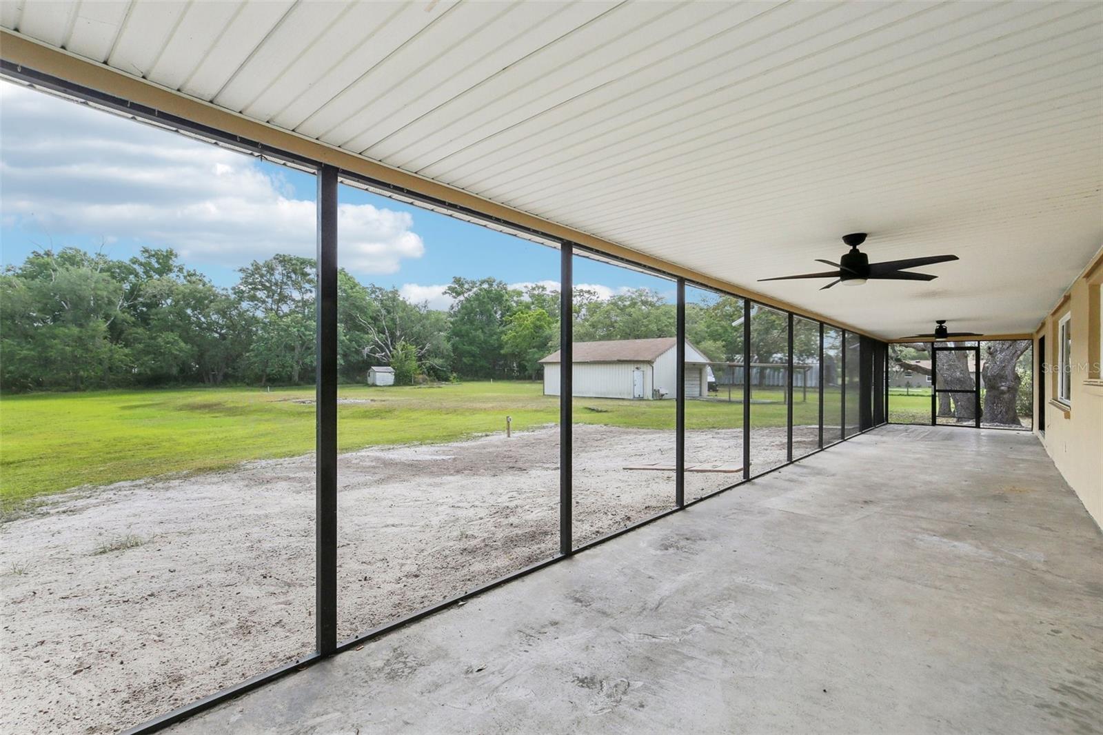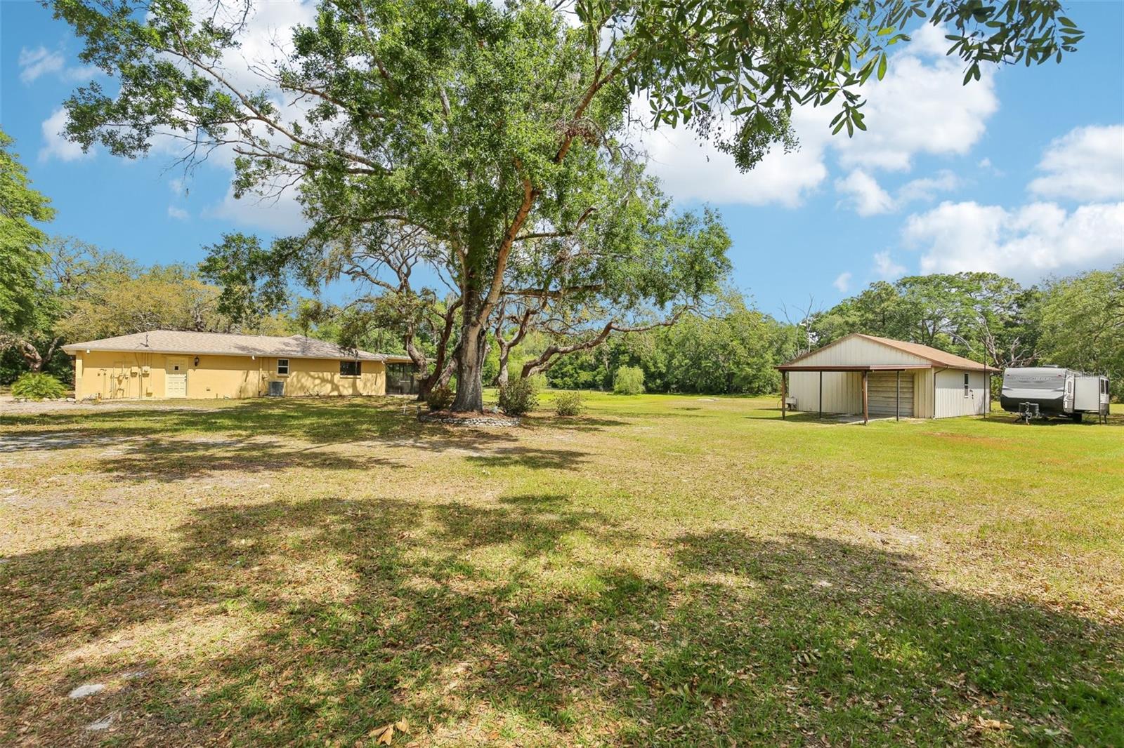 One or more photo(s) has been virtually staged. Welcome to 11630 Osceola Drive - Modern Country Living on Nearly 3 Acres (2 Lots Totaling 2.73 Acres) – Fully Renovated and Move-In Ready! This residence is tucked away on your own private oasis with circular driveway and over 2000SF of living space. It has been exceptionally updated, providing 3-bedrooms, 2-bathrooms combining modern comfort and country charm. Every inch of this property has been thoughtfully re imagined—from the 2021 roof installation to the sleek luxury vinyl flooring throughout—absolutely no carpet in sight! Step inside and be instantly drawn to the heart of the home: a bright, open kitchen featuring crisp shaker cabinets, granite countertops, a tile backsplash, and stainless steel appliances. Just off the kitchen, a versatile nook with a built-in dry bar offers the perfect space for a coffee station, buffet setup, or pantry expansion—tailored to your lifestyle. The split-bedroom layout ensures privacy, with a spacious primary suite that opens directly to an expansive screened-in patio stretching the full length of the home—ideal for morning coffee, evening relaxation, or entertaining under the stars. The en-suite bath is both tech-savvy and luxurious, featuring smart lighting and built-in speakers that sync with Alexa. Additional upgrades include hurricane shutters for peace of mind, a whole-home water softener system, updated duct-work, a 2021 Water Heater, updated electrical, new fixtures, ceiling fans, and lighting—truly move-in ready with no detail overlooked. Outside, your options are limitless: park your RV or boat with ease, let your animals roam freely with ER zoning, or get to work in the oversized workshop (40x26) with electric door opener—fully outfitted with electric, plumbing, and its own attic. There’s also an additional powered shed, a private pond, and best of all—No HOA, No CDD, and Non Flood Zone. This one-of-a-kind property offers space, freedom, and functionality—a rare combination you won’t want to miss (APNs 12-25-16-0020-00000-0220 and 12-25-16-0020-00000-0231 Included).