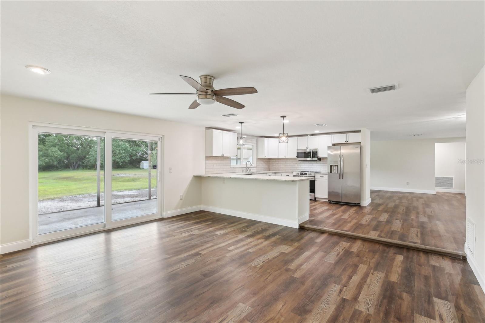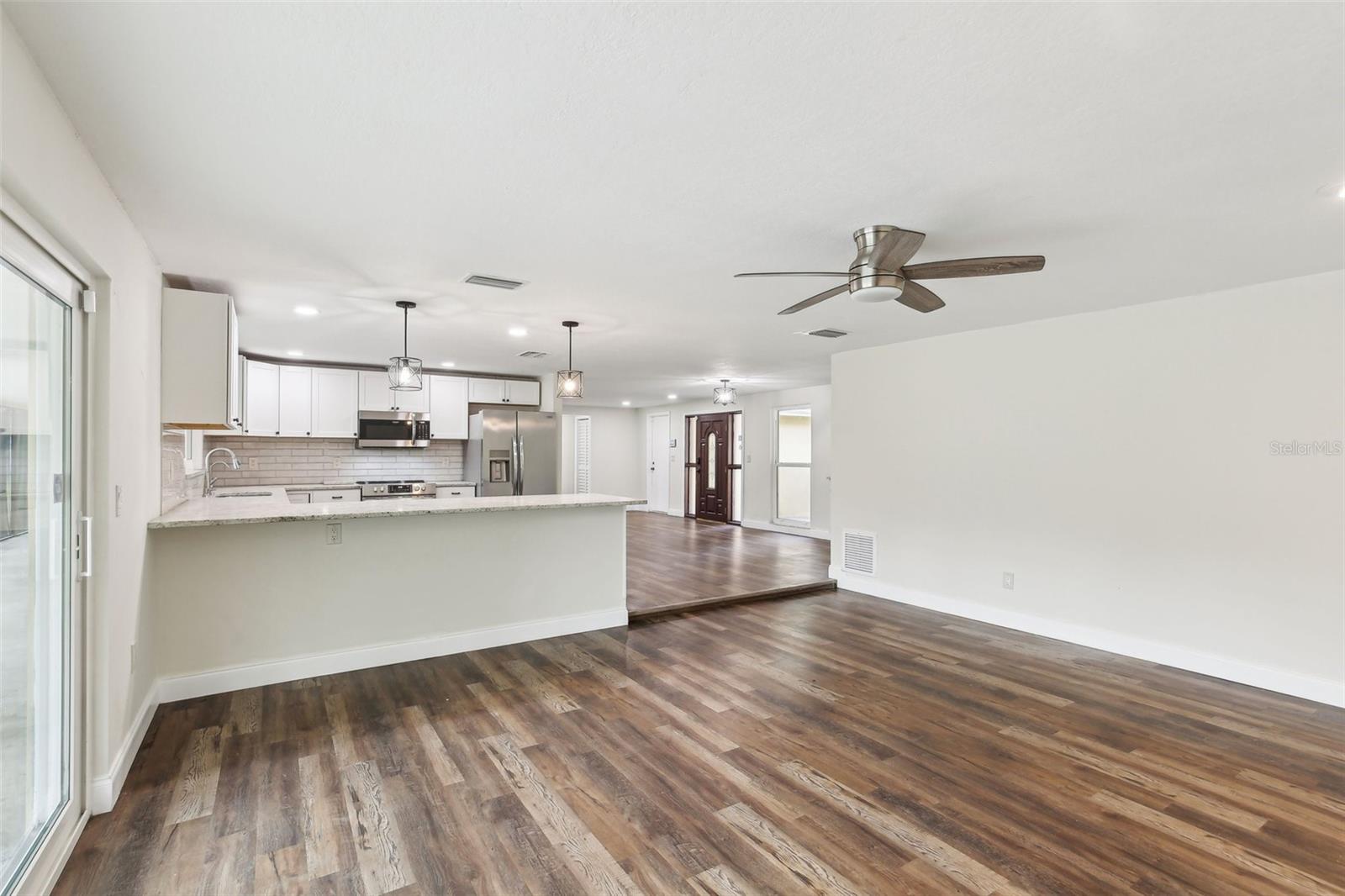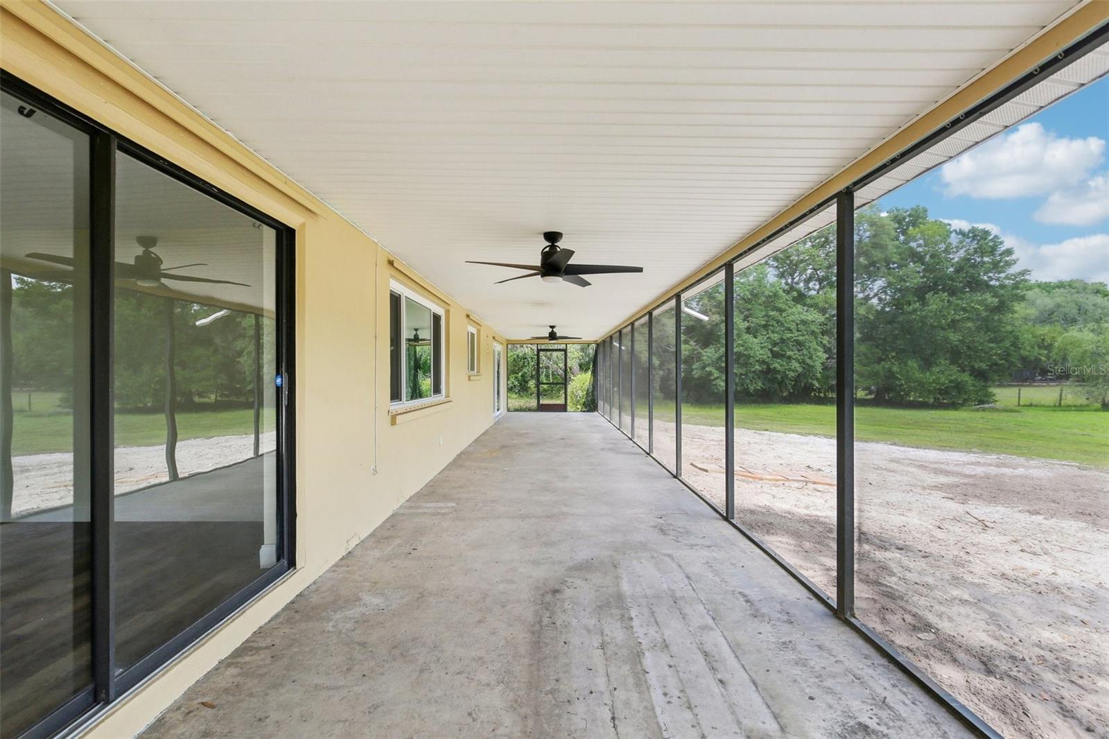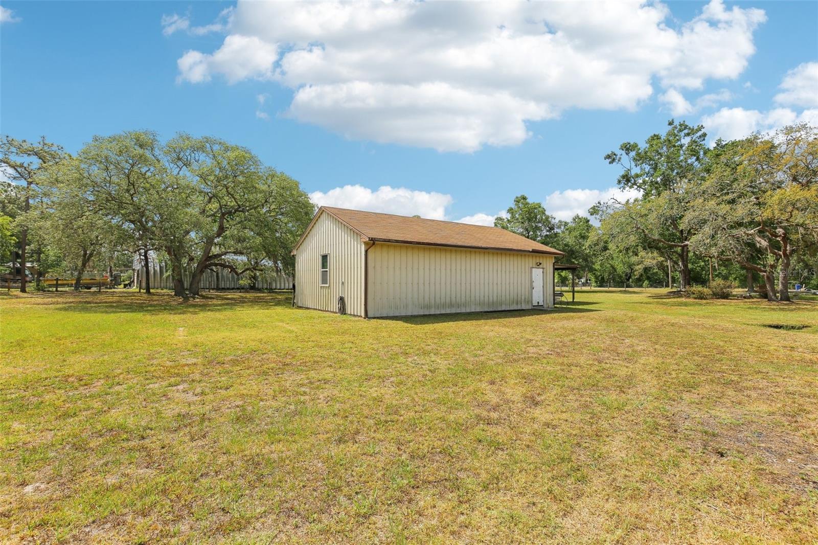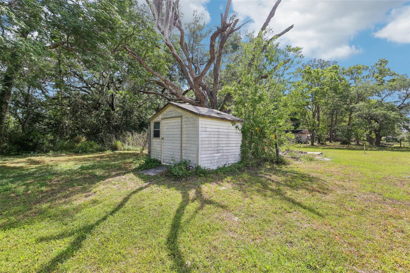 One or more photo(s) has been virtually staged. Welcome to 11630 Osceola Drive - Modern Country Living on Nearly 3 Acres (2 Lots Totaling 2.73 Acres) – Fully Renovated and Move-In Ready! This residence is tucked away on your own private oasis with circular driveway and over 2000SF of living space. It has been exceptionally updated, providing 3-bedrooms, 2-bathrooms combining modern comfort and country charm. Every inch of this property has been thoughtfully re imagined—from the 2021 roof installation to the sleek luxury vinyl flooring throughout—absolutely no carpet in sight! Step inside and be instantly drawn to the heart of the home: a bright, open kitchen featuring crisp shaker cabinets, granite countertops, a tile backsplash, and stainless steel appliances. Just off the kitchen, a versatile nook with a built-in dry bar offers the perfect space for a coffee station, buffet setup, or pantry expansion—tailored to your lifestyle. The split-bedroom layout ensures privacy, with a spacious primary suite that opens directly to an expansive screened-in patio stretching the full length of the home—ideal for morning coffee, evening relaxation, or entertaining under the stars. The en-suite bath is both tech-savvy and luxurious, featuring smart lighting and built-in speakers that sync with Alexa. Additional upgrades include hurricane shutters for peace of mind, a whole-home water softener system, updated duct-work, a 2021 Water Heater, updated electrical, new fixtures, ceiling fans, and lighting—truly move-in ready with no detail overlooked. Outside, your options are limitless: park your RV or boat with ease, let your animals roam freely with ER zoning, or get to work in the oversized workshop (40x26) with electric door opener—fully outfitted with electric, plumbing, and its own attic. There’s also an additional powered shed, a private pond, and best of all—No HOA, No CDD, and Non Flood Zone. This one-of-a-kind property offers space, freedom, and functionality—a rare combination you won’t want to miss (APNs 12-25-16-0020-00000-0220 and 12-25-16-0020-00000-0231 Included).