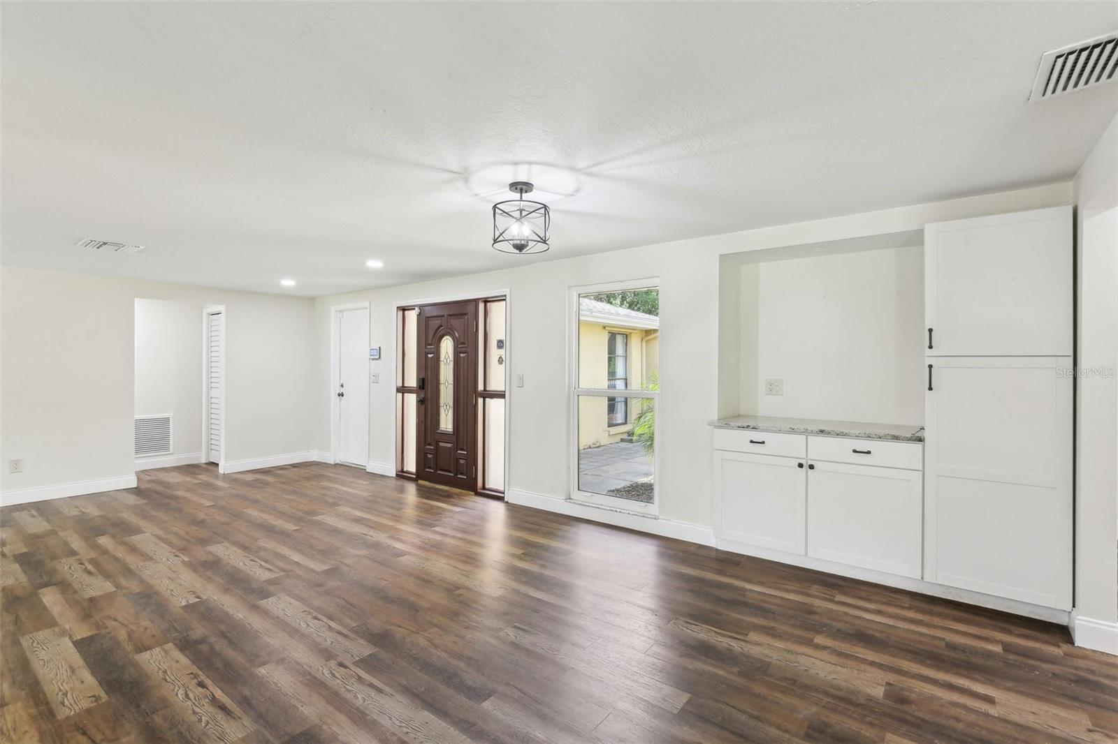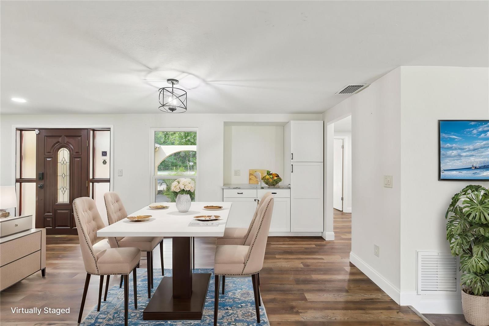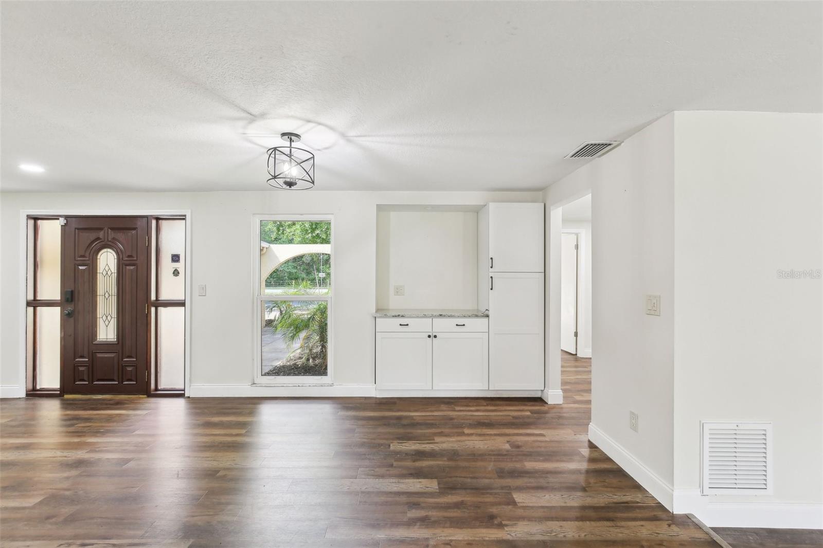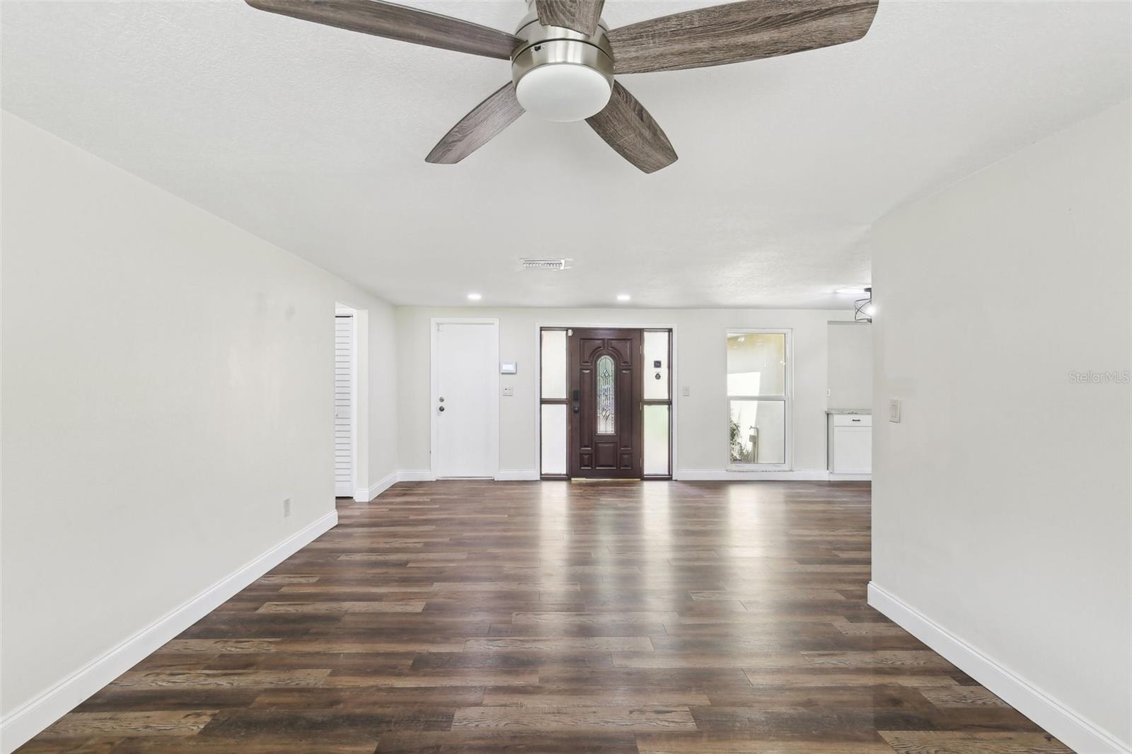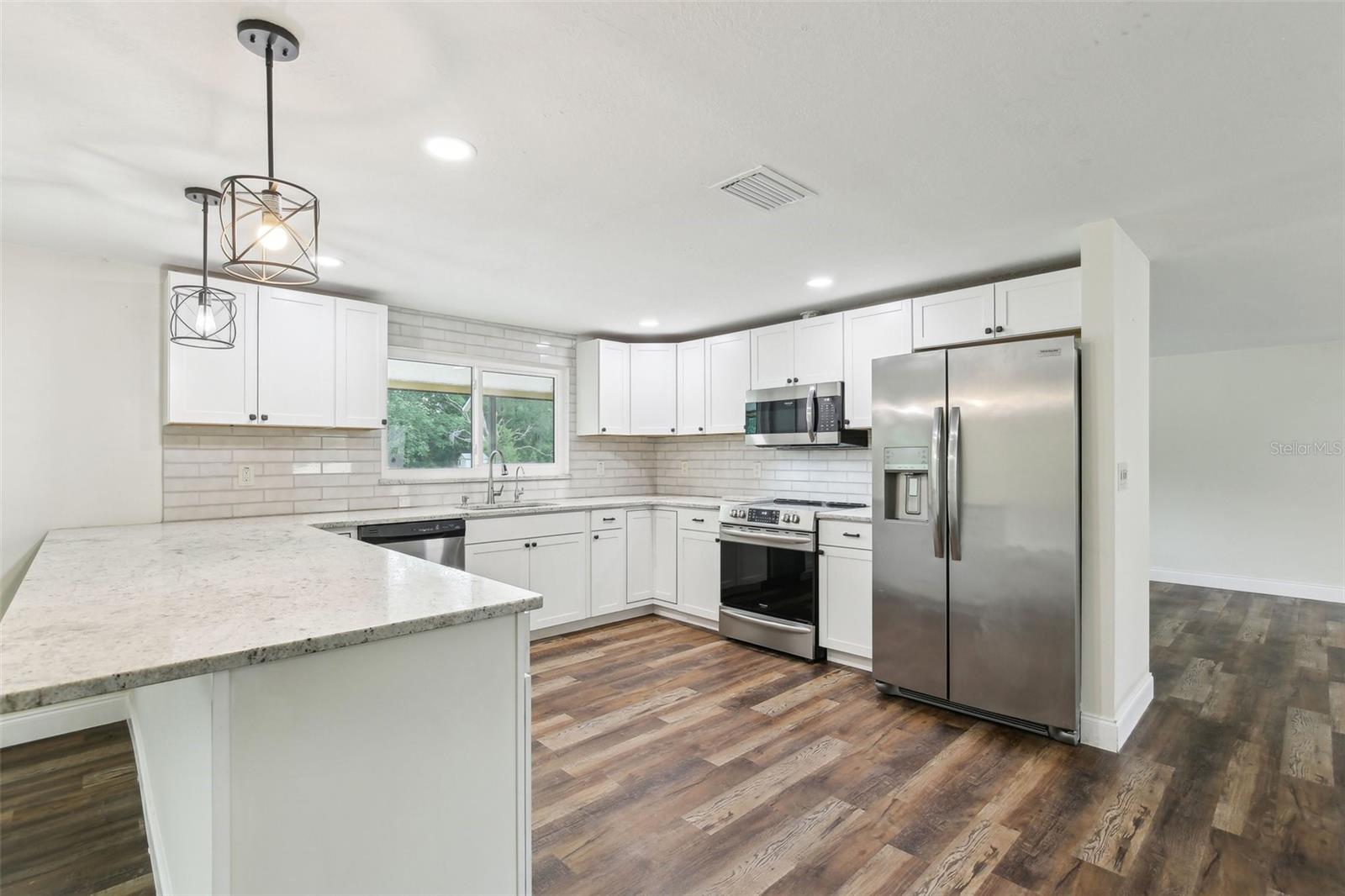One or more photo(s) has been virtually staged. Welcome to 11630 Osceola Drive - Modern Country Living on Nearly 3 Acres (2 Lots Totaling 2.73 Acres) – Fully Renovated and Move-In Ready! This residence is tucked away on your own private oasis with circular driveway and over 2000SF of living space. It has been exceptionally updated, providing 3-bedrooms, 2-bathrooms combining modern comfort and country charm. Every inch of this property has been thoughtfully re imagined—from the 2021 roof installation to the sleek luxury vinyl flooring throughout—absolutely no carpet in sight! Step inside and be instantly drawn to the heart of the home: a bright, open kitchen featuring crisp shaker cabinets, granite countertops, a tile backsplash, and stainless steel appliances. Just off the kitchen, a versatile nook with a built-in dry bar offers the perfect space for a coffee station, buffet setup, or pantry expansion—tailored to your lifestyle. The split-bedroom layout ensures privacy, with a spacious primary suite that opens directly to an expansive screened-in patio stretching the full length of the home—ideal for morning coffee, evening relaxation, or entertaining under the stars. The en-suite bath is both tech-savvy and luxurious, featuring smart lighting and built-in speakers that sync with Alexa. Additional upgrades include hurricane shutters for peace of mind, a whole-home water softener system, updated duct-work, a 2021 Water Heater, updated electrical, new fixtures, ceiling fans, and lighting—truly move-in ready with no detail overlooked. Outside, your options are limitless: park your RV or boat with ease, let your animals roam freely with ER zoning, or get to work in the oversized workshop (40x26) with electric door opener—fully outfitted with electric, plumbing, and its own attic. There’s also an additional powered shed, a private pond, and best of all—No HOA, No CDD, and Non Flood Zone. This one-of-a-kind property offers space, freedom, and functionality—a rare combination you won’t want to miss (APNs 12-25-16-0020-00000-0220 and 12-25-16-0020-00000-0231 Included).