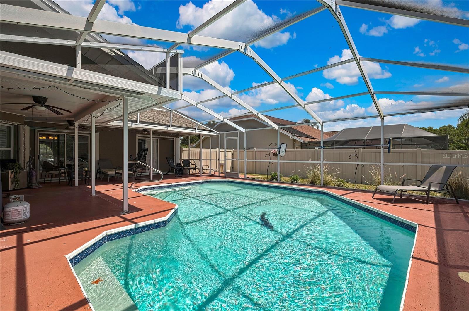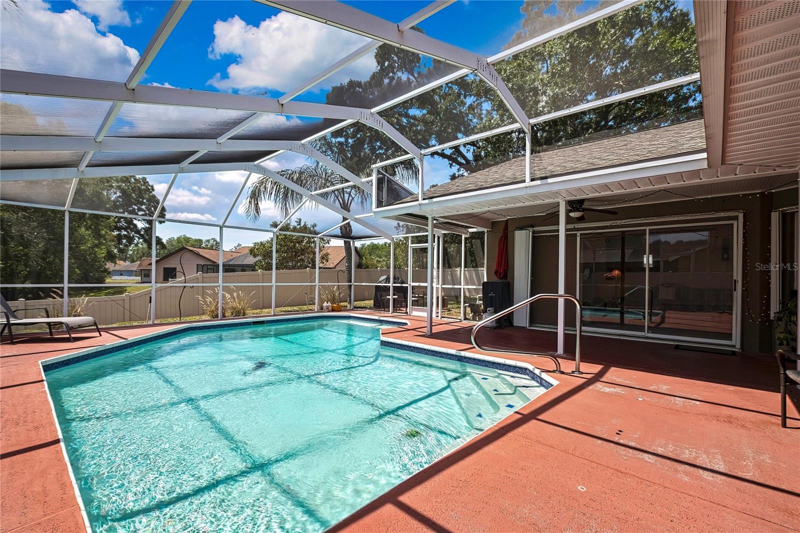 One or more photo(s) has been virtually staged. HUGE PRICE REDUCTION SO LOOK NO FURTHER, THIS IS THE ONE. You’re going to love this 3/2/2 POOL home perfectly situated on almost a 1/4-acre lot in the highly desired Hunters Ridge. No Flood zone, NO previous water intrusion or storm damage. NEWER ROOF (2021), NEWER AC (2020), NEW HOTWATER HEATER (2023) NEW WINDOWS (2024), CUSTOM FITTED STORM SHUTTER, everything needed to make this home worry-free from some of the top replacement items for years to come. As you approach the house, you will notice the stunning line of souring palm trees along the front and a charming screened in porch area. As you enter this home you will immediately notice almost 2100 square feet of living space that boast a split floor plan design. Separate Formal living and dining room and a beautiful open floor plan in the back. A gourmet kitchen with nook, pantry, wood cabinets, granite countertop and breakfast bar that look over the large family room. The Huge Primary bedroom as his & her walk- in closets, en-suite bathroom with dual sinks, jetted tub & separate shower. Sliders also lead to the pool from the master, formal living and family room. On the other side of the house are 2 spacious bedrooms and a guest bath. As you make your way to the garage you will pass through the inside laundry room with loads of cabinet storage, additional full service sink and countertop for folding. This beautiful floor plan allows for a ton of natural light as it wraps itself around your own private pool area. The screened in pool features ample covered space perfect for sitting in the shade with your morning coffee, that evening beverage, and the crystal clear pool for those hot summer days, creating your own private cozy retreat as well as entertaining. Additionally, you’ll be surprised to see how spacious the back yard is perfect for child’s play and pets. The seller has strategically priced the home for some cosmetic updates and is offering a flooring allowance on top of that. The possibilities here for instant equity are endless. A short commute to Tampa via the Suncoast Parkway/589, and easy access to some of the most popular locations along Florida's West Coast such as world renown Beaches, Shopping malls, Restaurants, Movie theaters, kayak the freshwater springs or even Weeki Wachee springs to watch the mermaids and so much more. Schedule your showing today.