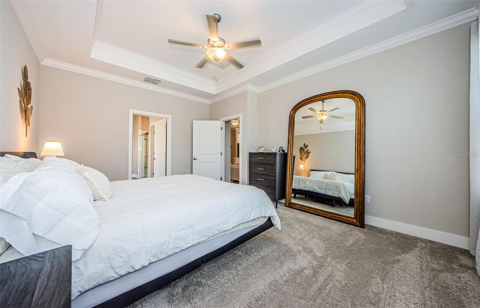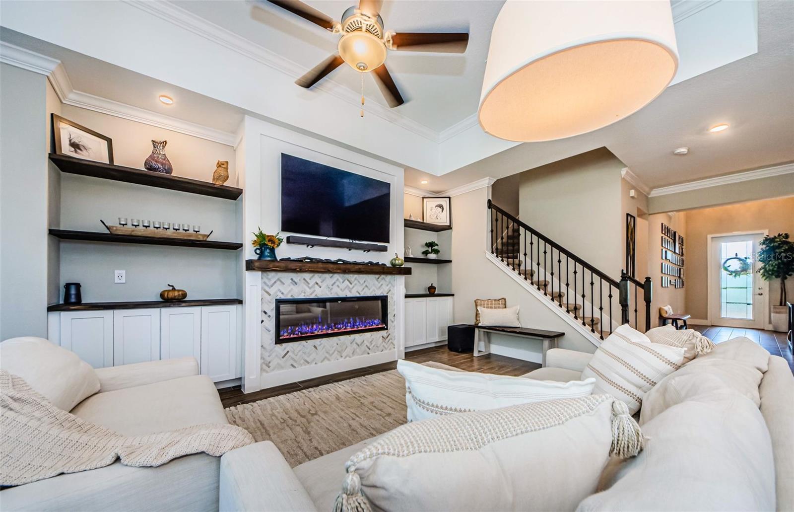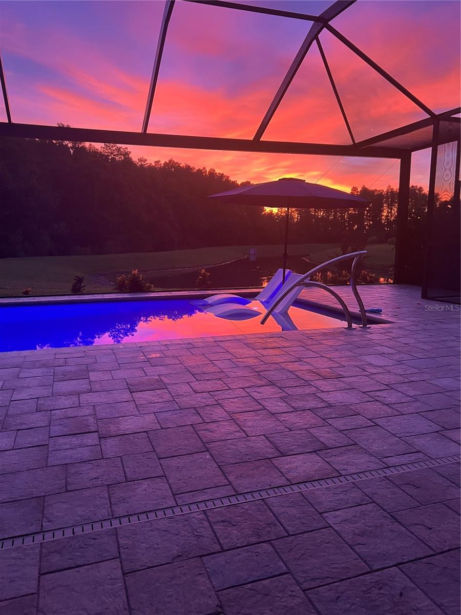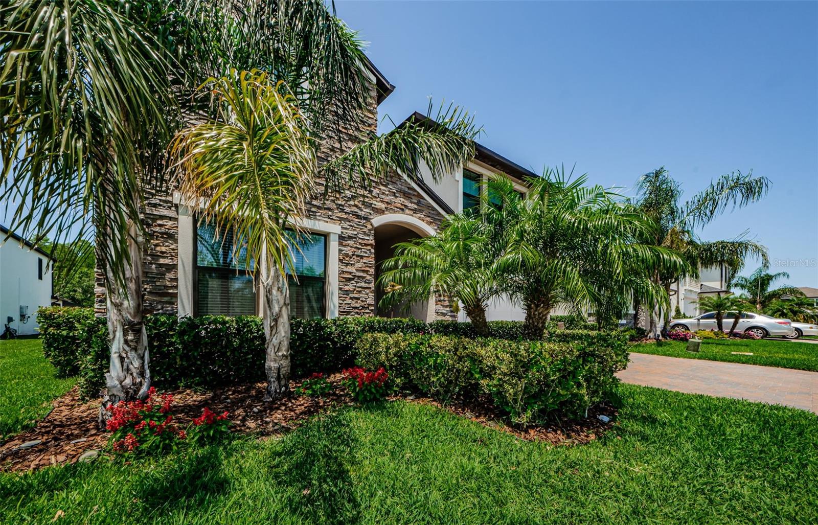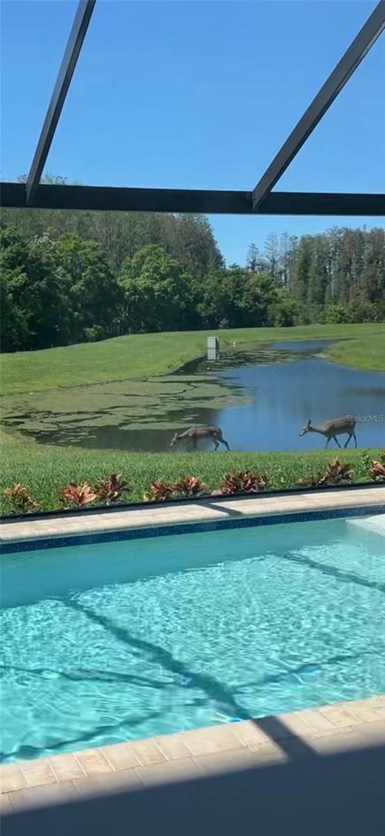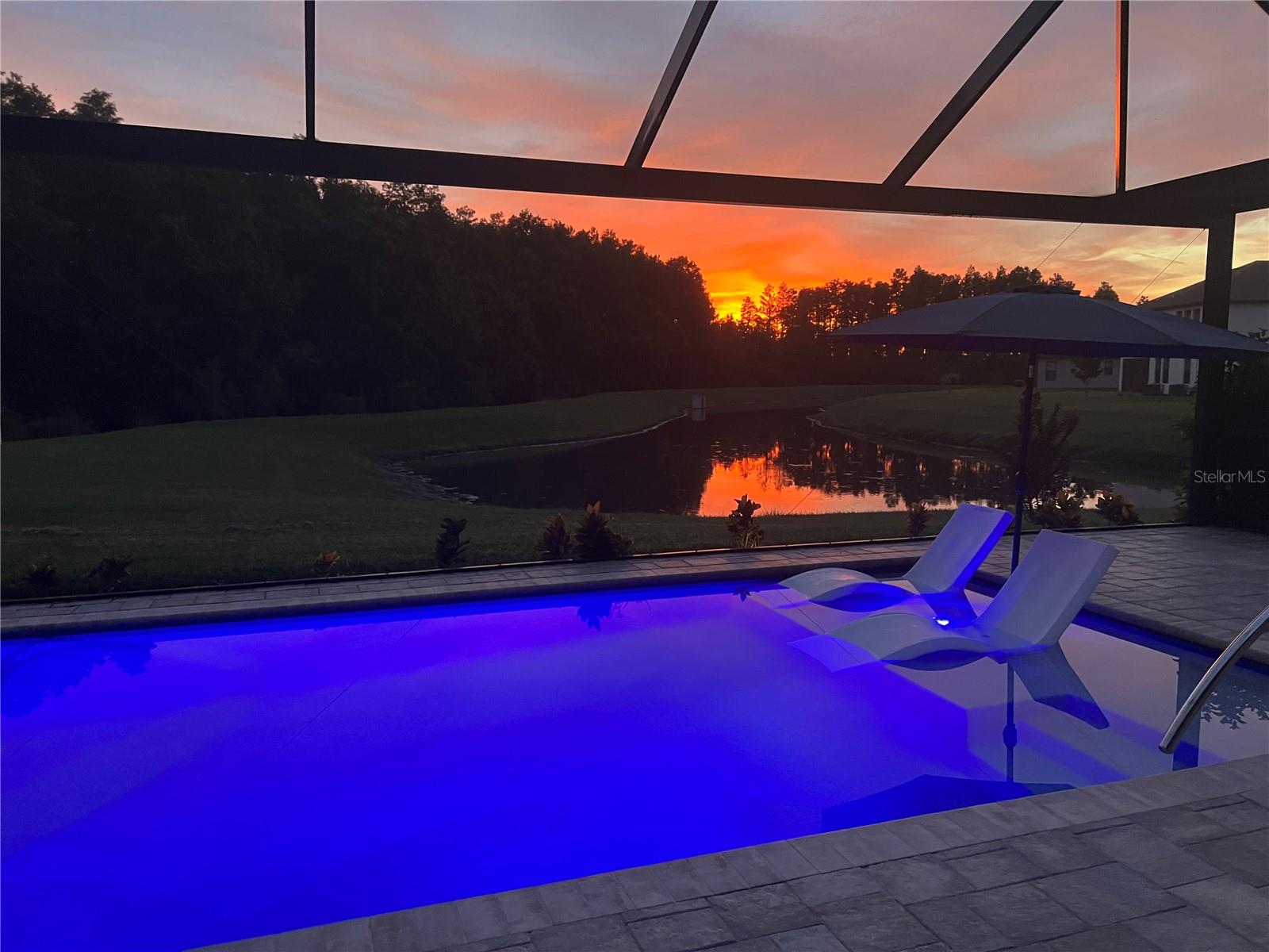 Seller is motivated! This 3,282 sq. ft. energy-efficient home offers 5 bedrooms, 4.5 bathrooms, and stunning pond and conservation views with ultimate privacy. The open-concept layout features vaulted ceilings, crown molding, wood plank tile flooring, and a custom built-in with electric fireplace. Pocket sliders in the living area open fully to reveal a heated saltwater pool with sun loungers, multi-colored lighting, and a panoramic screen enclosure. The gourmet kitchen boasts quartz countertops, stainless steel appliances, gas stove, reverse osmosis, butler’s pantry, and a massive walk-in pantry. The main-level primary suite includes a spa-like bath with dual sinks, garden tub, walk-in shower, and large walk-in closet. A second en-suite on the main floor is perfect for guests or in-laws. Upstairs includes three more bedrooms (one en-suite) and a large loft with built-in wet bar. Additional highlights include a two-car garage, paid-off solar panels (no electric bill), hurricane impact windows and shutters, tankless water heater, and a 10-stage Purity Bay water filtration system. No storm damage and located in a non-flood zone. Community amenities include two pools, playgrounds, low HOA, and proximity to shopping, dining, and top-rated schools.