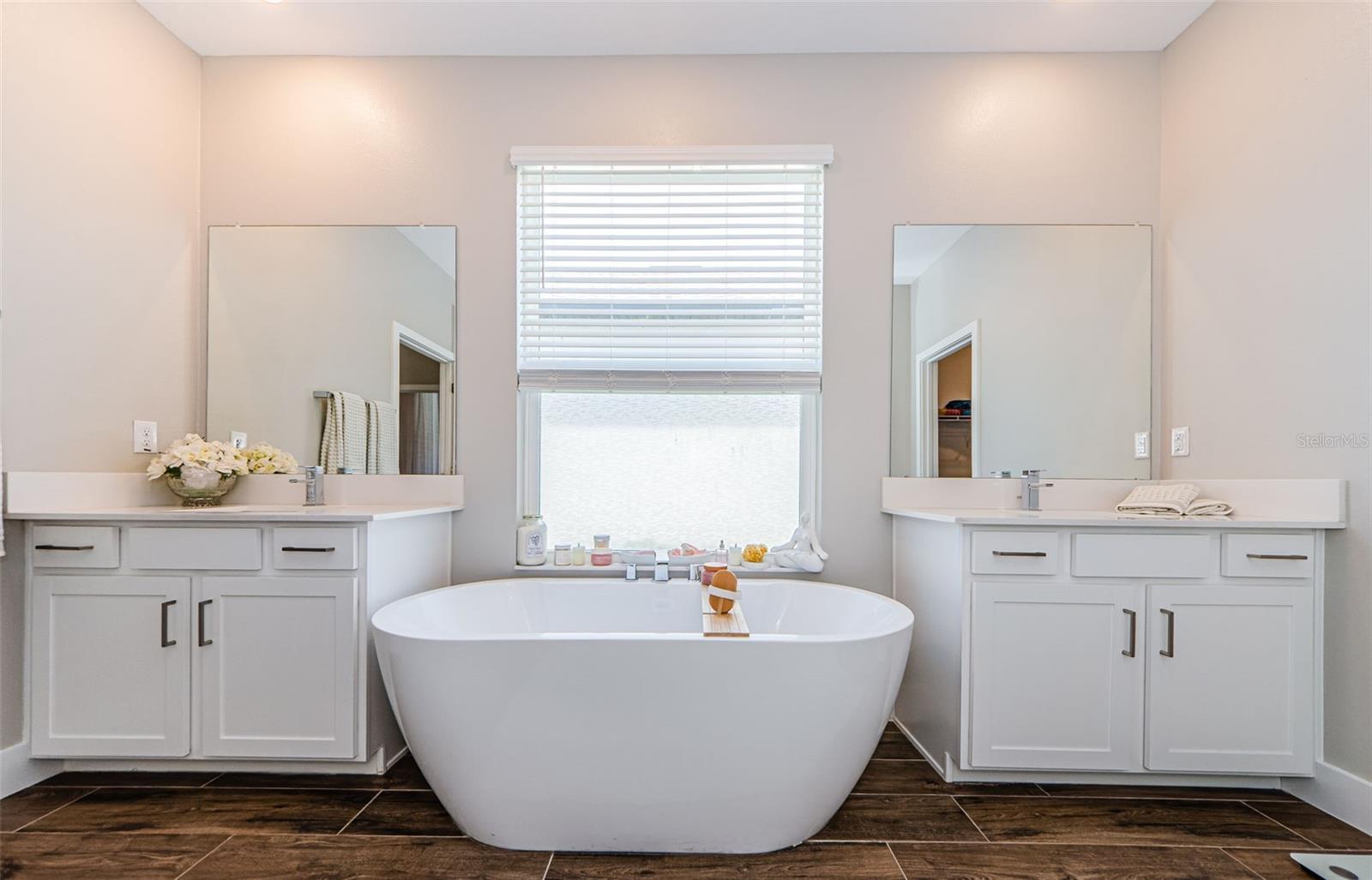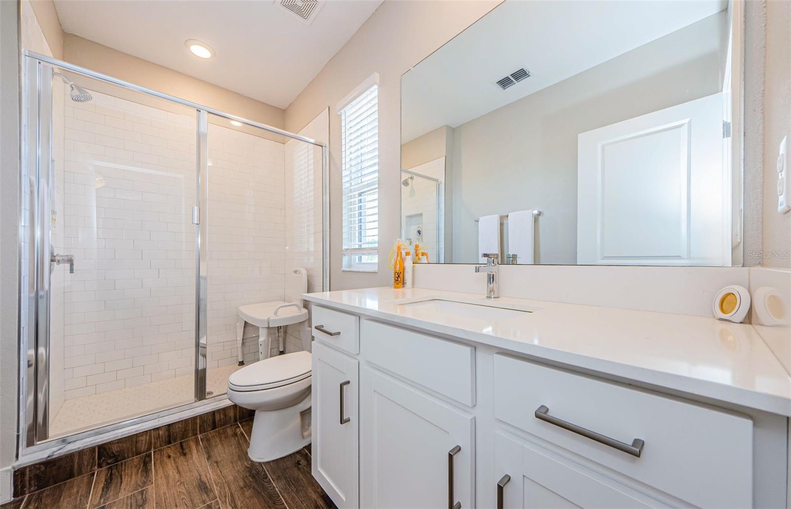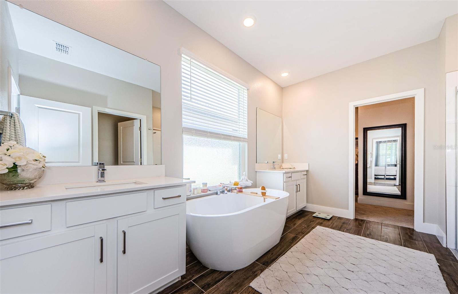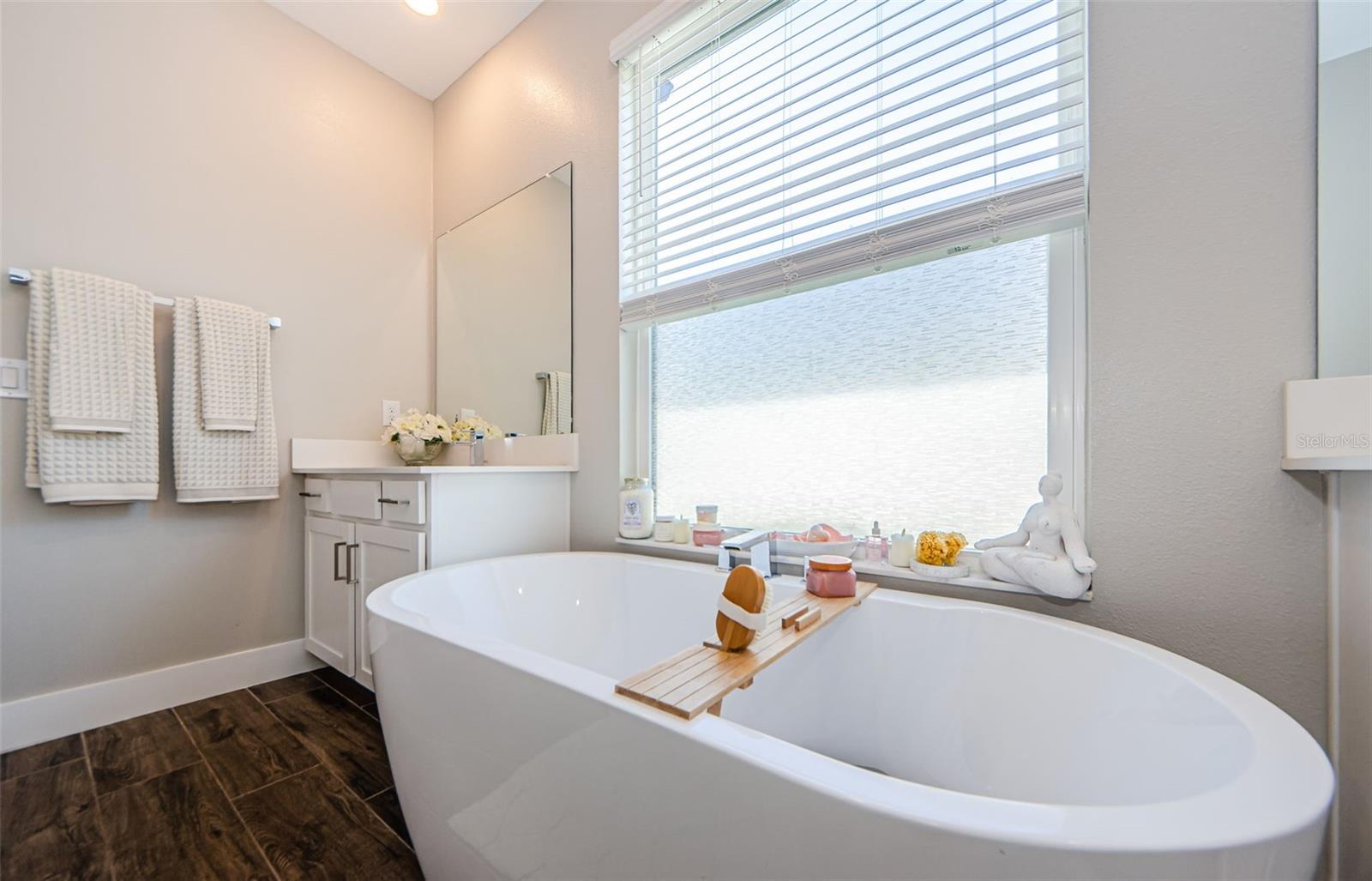 Seller is motivated! This 3,282 sq. ft. energy-efficient home offers 5 bedrooms, 4.5 bathrooms, and stunning pond and conservation views with ultimate privacy. The open-concept layout features vaulted ceilings, crown molding, wood plank tile flooring, and a custom built-in with electric fireplace. Pocket sliders in the living area open fully to reveal a heated saltwater pool with sun loungers, multi-colored lighting, and a panoramic screen enclosure. The gourmet kitchen boasts quartz countertops, stainless steel appliances, gas stove, reverse osmosis, butler’s pantry, and a massive walk-in pantry. The main-level primary suite includes a spa-like bath with dual sinks, garden tub, walk-in shower, and large walk-in closet. A second en-suite on the main floor is perfect for guests or in-laws. Upstairs includes three more bedrooms (one en-suite) and a large loft with built-in wet bar. Additional highlights include a two-car garage, paid-off solar panels (no electric bill), hurricane impact windows and shutters, tankless water heater, and a 10-stage Purity Bay water filtration system. No storm damage and located in a non-flood zone. Community amenities include two pools, playgrounds, low HOA, and proximity to shopping, dining, and top-rated schools.