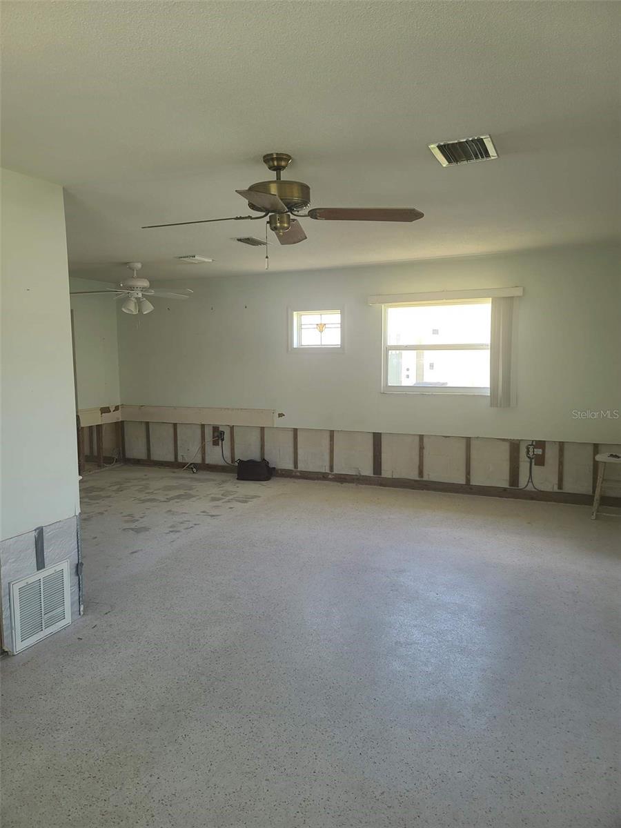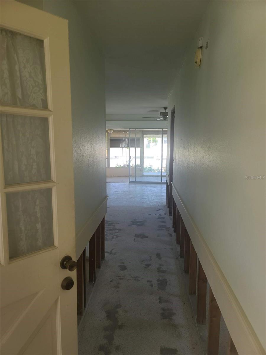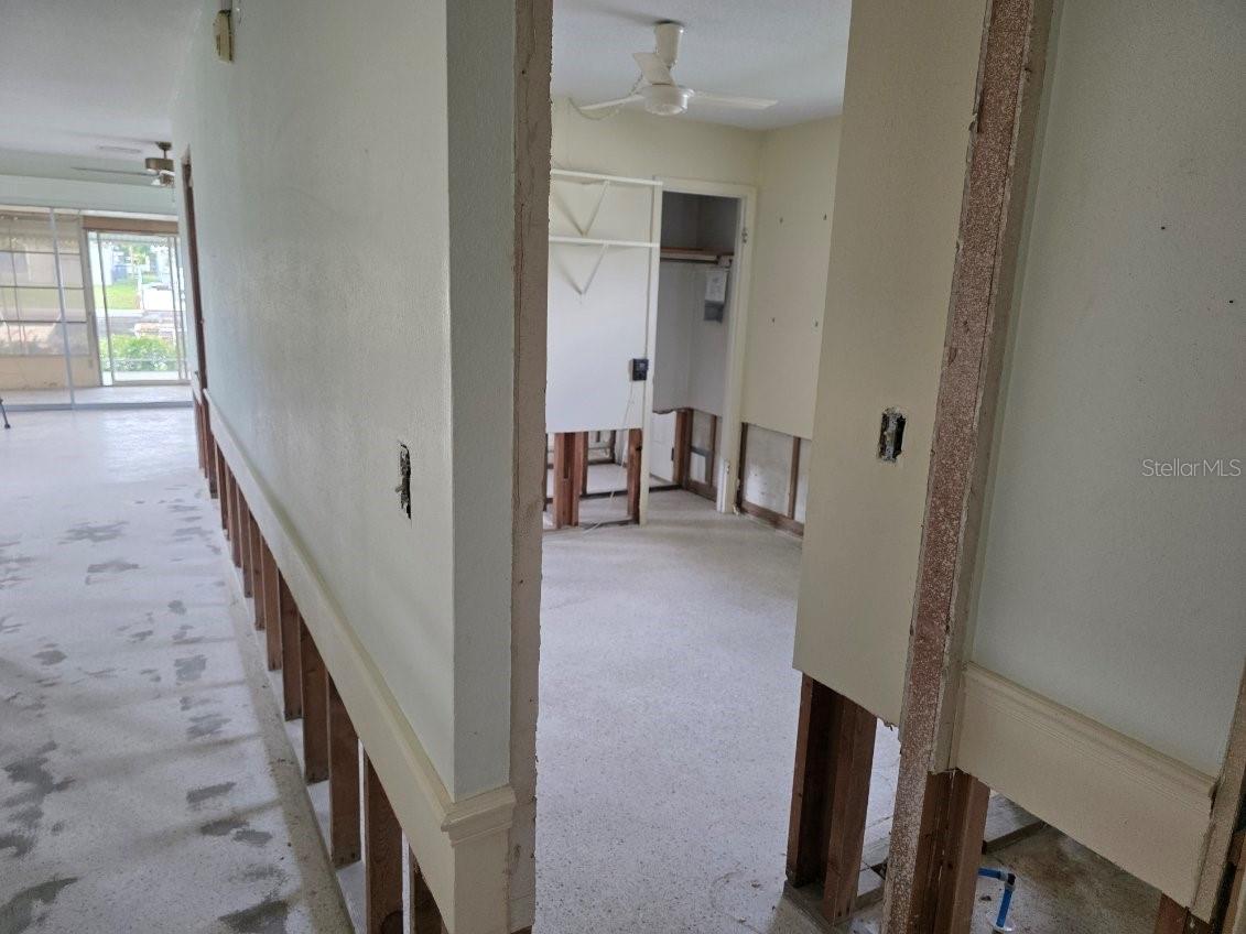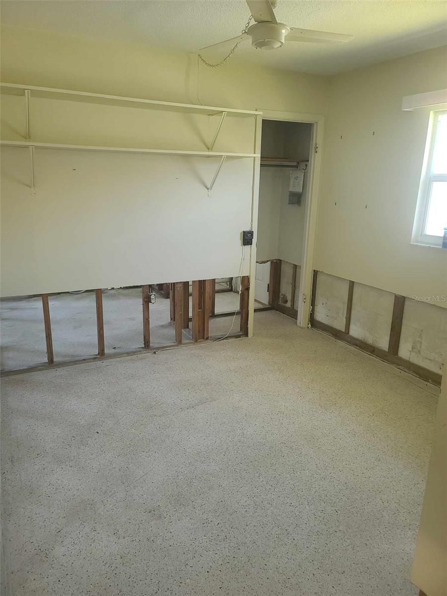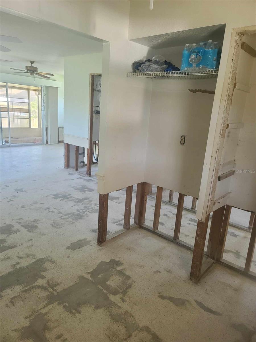 If you are looking to live the most affordable Florida WaterFront LIFESTYLE, then this is the home and community for you. Purchase this home by using Special Renovation Financing to turn it into your dream home. This property is eligible for Special Renovation Financing for all Conventional.,FHA, or VA eligible homebuyers that qualify...Gulf Harbors has its own Private Beach (very low yearly fee) with grills, picnic tables and restrooms, located right up the street. There is a newly remodeled restaurant/music venue right off the main channel with boat access. You have great fishing inland and off shore (for this homes' location, only smaller vessels with no permanent flying bridge, due to the fixed bridge). There are 2 spacious bedrooms and a large FAMILY ROOM/DINING ROOM combo. Wide sliders off the FR to a covered enclosed lanai for extra ENTERTAINMENT SPACE to watch the birds, dolphins, and manatee sitings. Not to mention, the shade tree right off the back porch, that you can get out of the direct sun and enjoy your coffee in the morning. There is a large laundry room with outdoor access so you don't have to tread in your sandy feet or salt water drenched clothes from the beach and with the existing plumbing and electric the laundry room can easily be made into a 2nd bath for the 2nd bedroom. Sheetrock has been removed from 2024 hurricane season and its ready to customize to your liking. Water and electric are currently on. Sellers immediately tore out the damaged sheetrock and doors and door moldings to preserve the rest of the home till the next buyer comes along to put this beauty back to the pristine condition. Come and put your vision to work and enjoy LIFE ON THE WATER in Gulf Harbors.