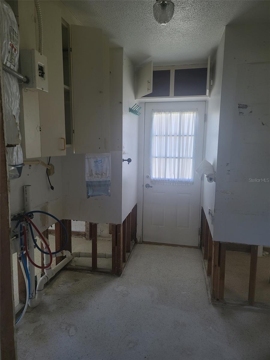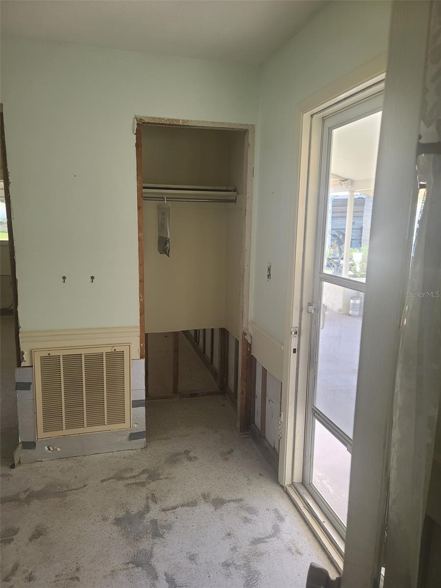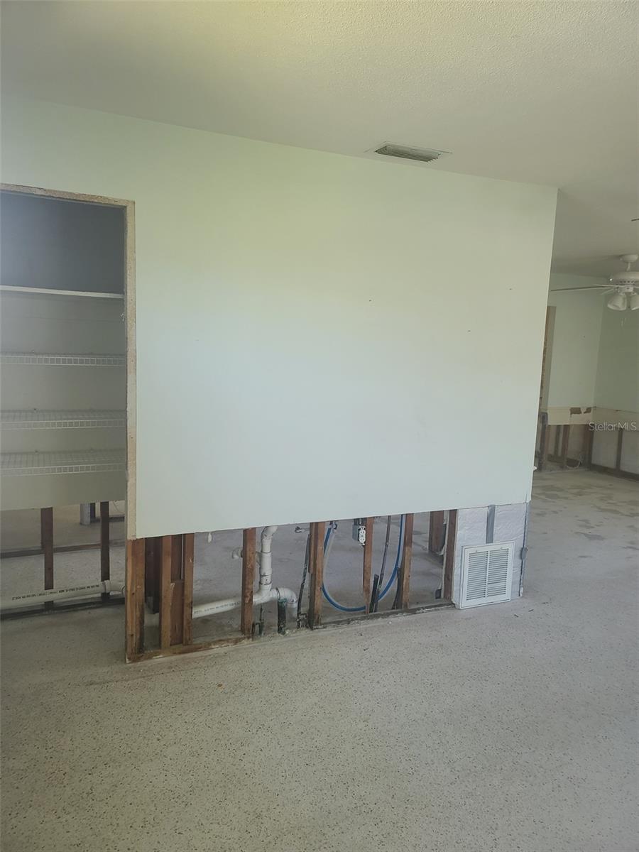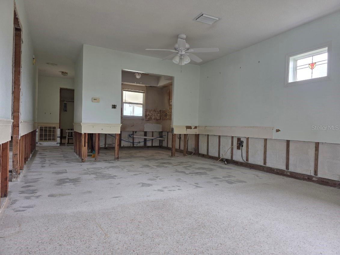 If you are looking to live the most affordable Florida WaterFront LIFESTYLE, then this is the home and community for you. Purchase this home by using Special Renovation Financing to turn it into your dream home. This property is eligible for Special Renovation Financing for all Conventional.,FHA, or VA eligible homebuyers that qualify...Gulf Harbors has its own Private Beach (very low yearly fee) with grills, picnic tables and restrooms, located right up the street. There is a newly remodeled restaurant/music venue right off the main channel with boat access. You have great fishing inland and off shore (for this homes' location, only smaller vessels with no permanent flying bridge, due to the fixed bridge). There are 2 spacious bedrooms and a large FAMILY ROOM/DINING ROOM combo. Wide sliders off the FR to a covered enclosed lanai for extra ENTERTAINMENT SPACE to watch the birds, dolphins, and manatee sitings. Not to mention, the shade tree right off the back porch, that you can get out of the direct sun and enjoy your coffee in the morning. There is a large laundry room with outdoor access so you don't have to tread in your sandy feet or salt water drenched clothes from the beach and with the existing plumbing and electric the laundry room can easily be made into a 2nd bath for the 2nd bedroom. Sheetrock has been removed from 2024 hurricane season and its ready to customize to your liking. Water and electric are currently on. Sellers immediately tore out the damaged sheetrock and doors and door moldings to preserve the rest of the home till the next buyer comes along to put this beauty back to the pristine condition. Come and put your vision to work and enjoy LIFE ON THE WATER in Gulf Harbors.