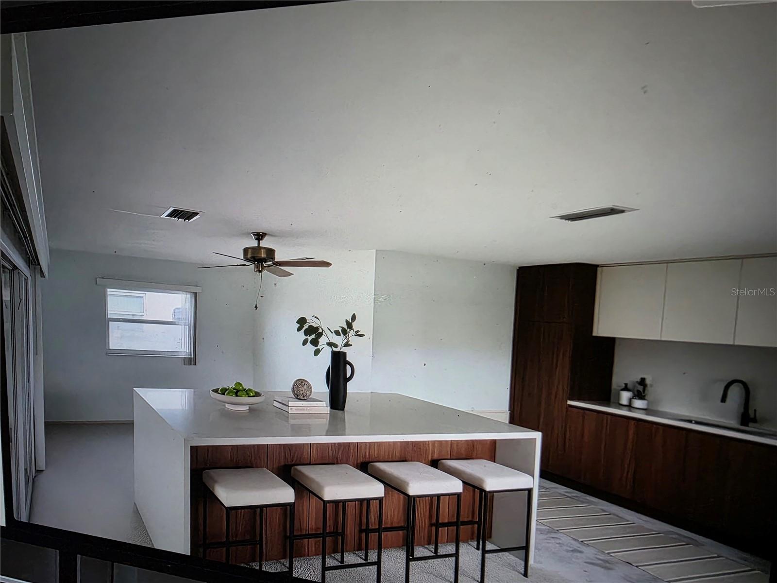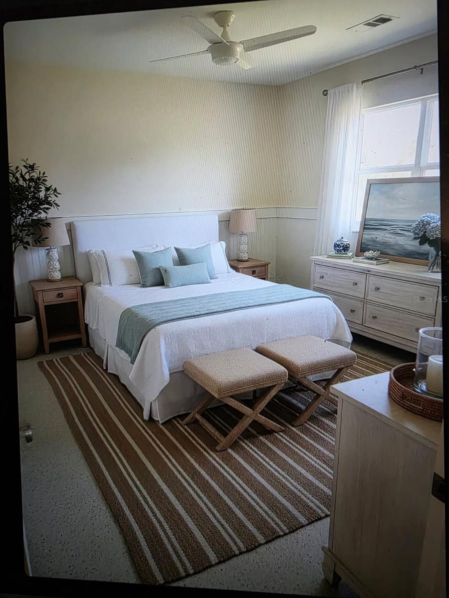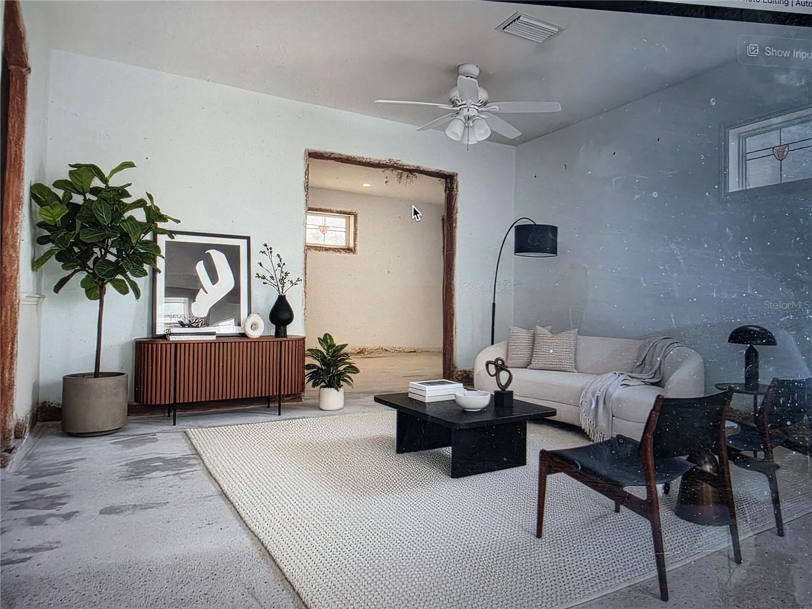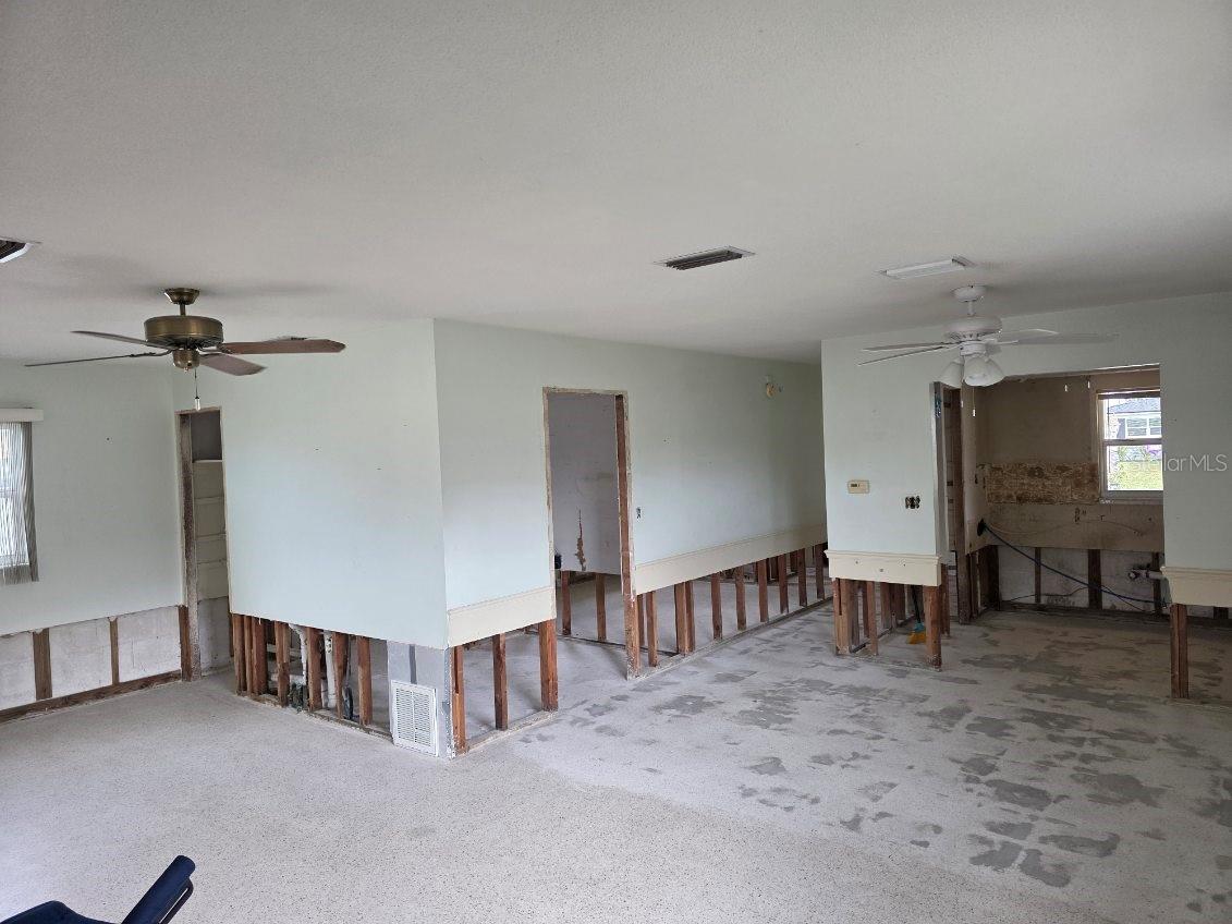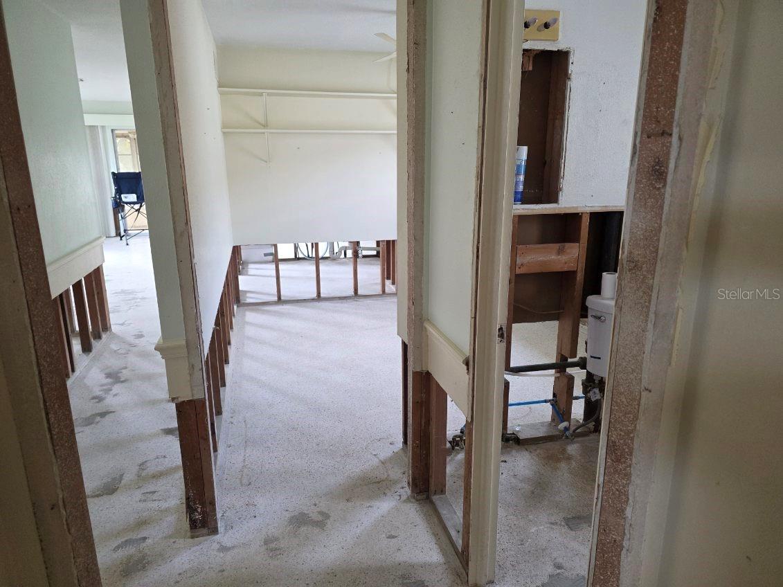 If you are looking to live the most affordable Florida WaterFront LIFESTYLE, then this is the home and community for you. Purchase this home by using Special Renovation Financing to turn it into your dream home. This property is eligible for Special Renovation Financing for all Conventional.,FHA, or VA eligible homebuyers that qualify...Gulf Harbors has its own Private Beach (very low yearly fee) with grills, picnic tables and restrooms, located right up the street. There is a newly remodeled restaurant/music venue right off the main channel with boat access. You have great fishing inland and off shore (for this homes' location, only smaller vessels with no permanent flying bridge, due to the fixed bridge). There are 2 spacious bedrooms and a large FAMILY ROOM/DINING ROOM combo. Wide sliders off the FR to a covered enclosed lanai for extra ENTERTAINMENT SPACE to watch the birds, dolphins, and manatee sitings. Not to mention, the shade tree right off the back porch, that you can get out of the direct sun and enjoy your coffee in the morning. There is a large laundry room with outdoor access so you don't have to tread in your sandy feet or salt water drenched clothes from the beach and with the existing plumbing and electric the laundry room can easily be made into a 2nd bath for the 2nd bedroom. Sheetrock has been removed from 2024 hurricane season and its ready to customize to your liking. Water and electric are currently on. Sellers immediately tore out the damaged sheetrock and doors and door moldings to preserve the rest of the home till the next buyer comes along to put this beauty back to the pristine condition. Come and put your vision to work and enjoy LIFE ON THE WATER in Gulf Harbors.