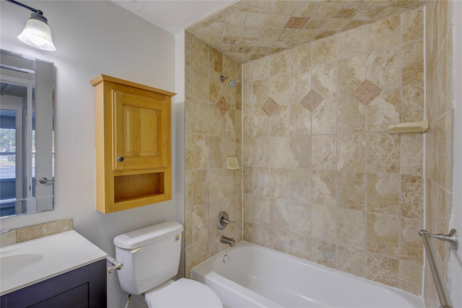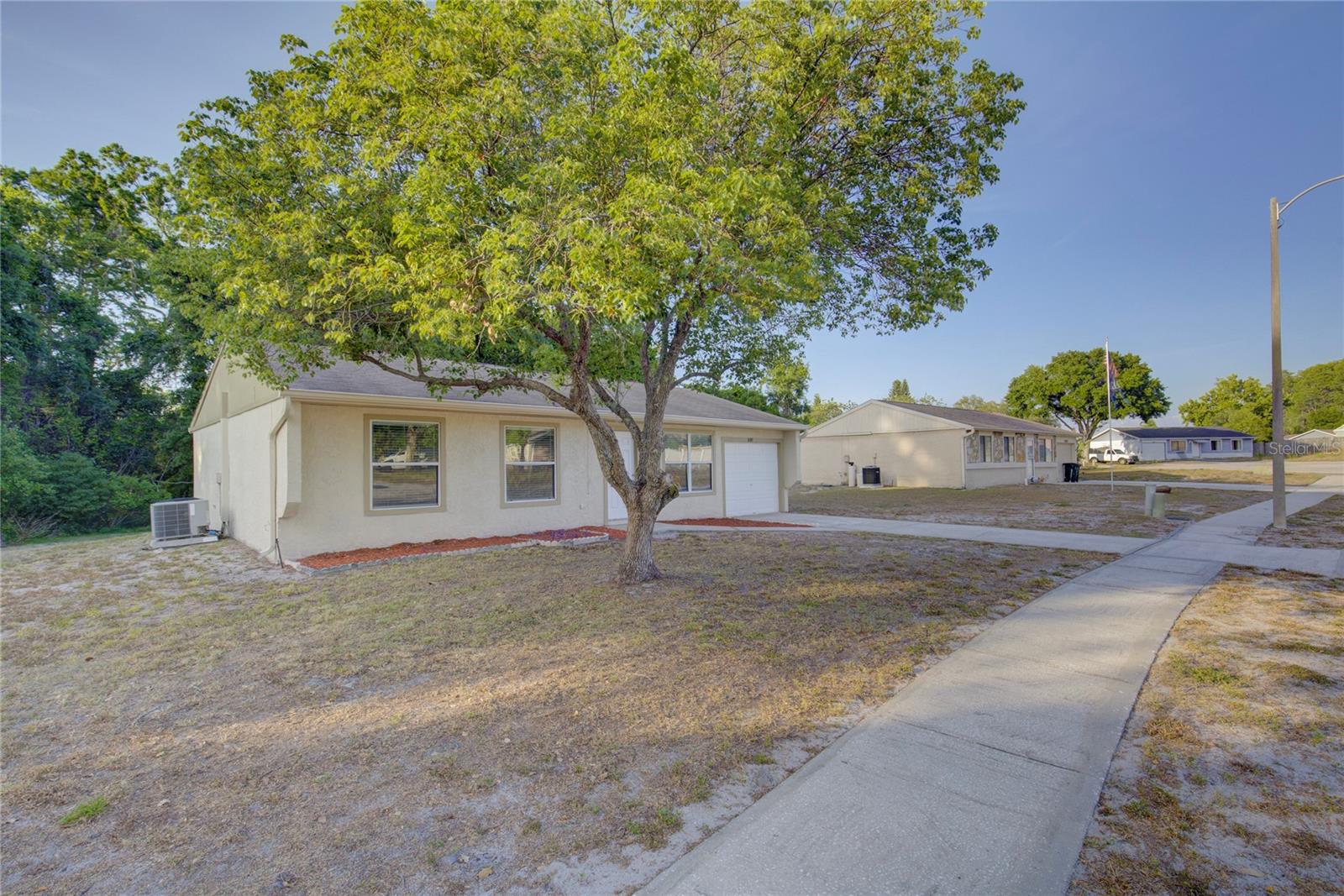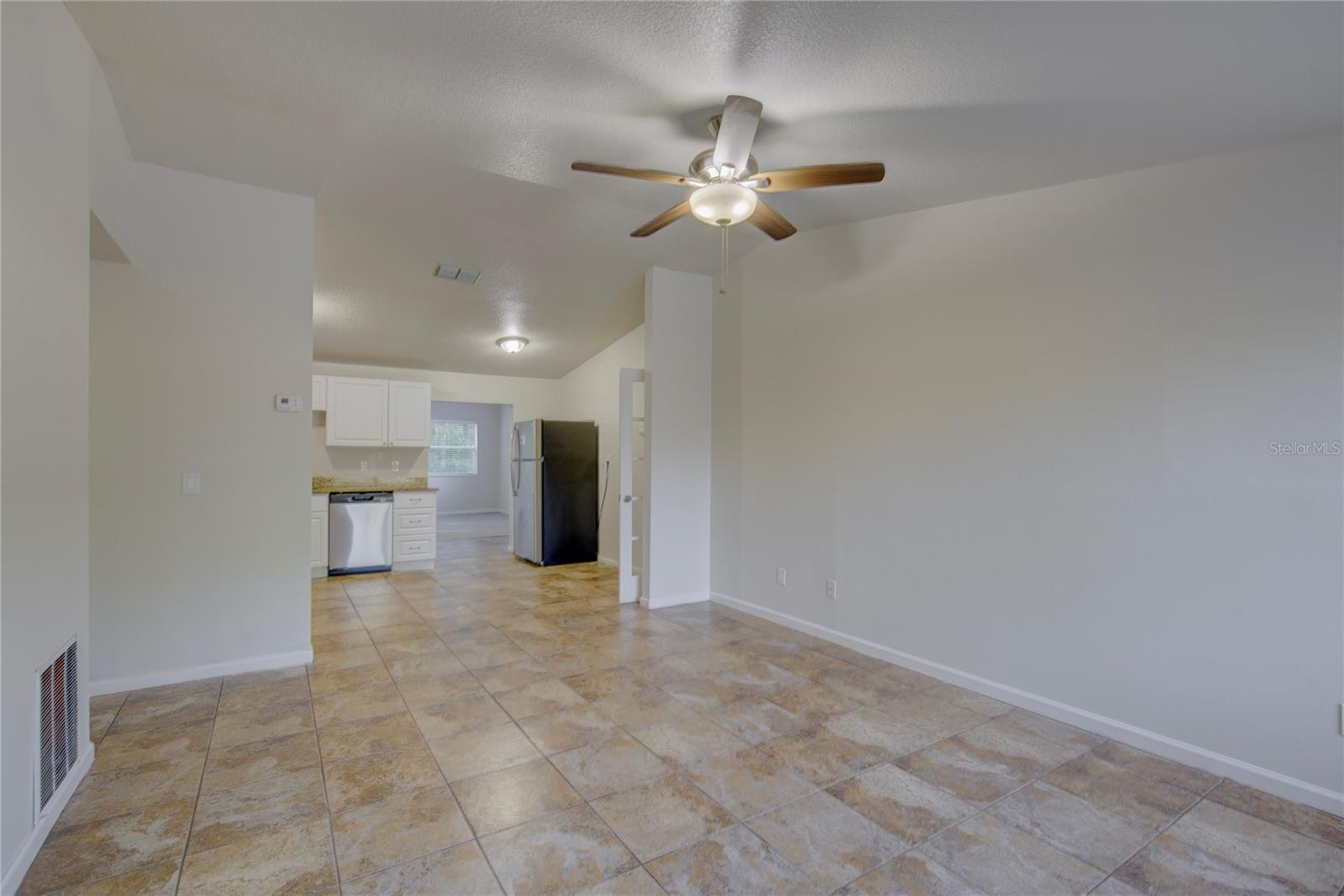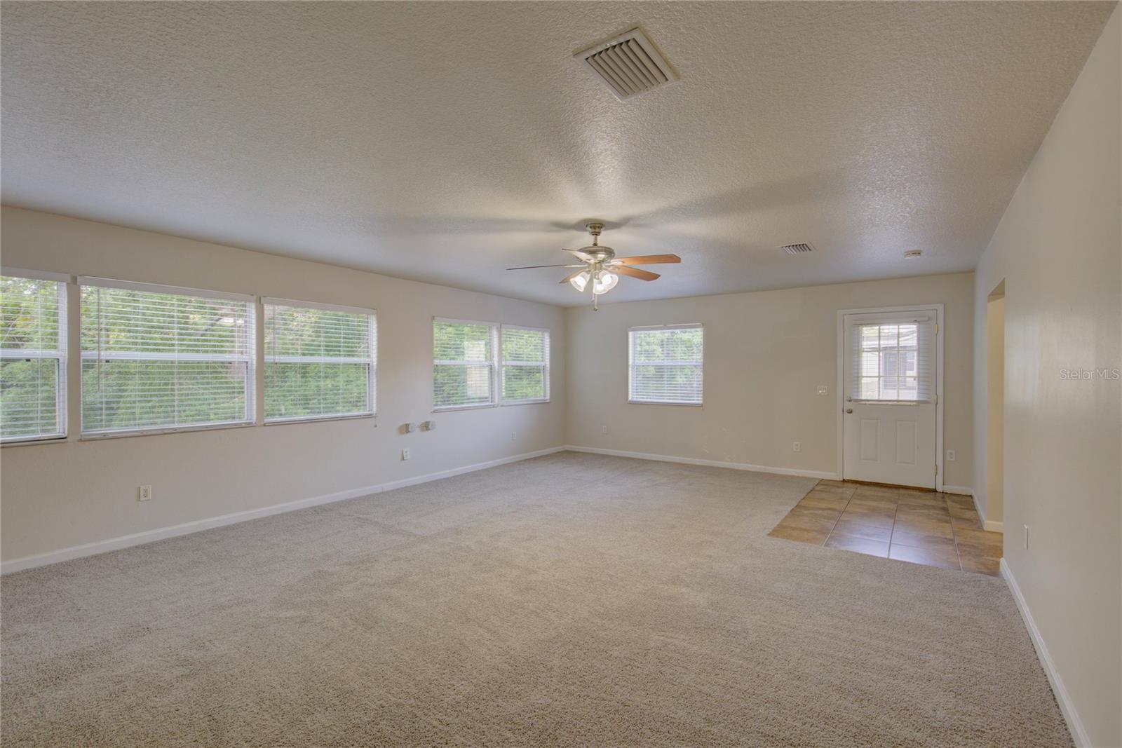 This well-maintained home features a spacious and versatile interior layout with two generous living areas, both filled with natural light and equipped with ceiling fans for year-round comfort. The kitchen is appointed with granite countertops, white cabinetry, and stainless steel appliances, seamlessly connecting to the adjacent dining space and one of the main living rooms. Durable tile flooring runs through much of the home, while select rooms feature plush carpeting for added warmth. Multiple bedrooms offer ample closet space, and the bathrooms are upgraded with tiled shower surrounds, modern vanities, and built-in shelving. Additional highlights include a hallway with built-in storage, a rear entry for convenient outdoor access, and a clean, neutral color palette throughout—making the home move-in ready and adaptable to a variety of lifestyles. Conveniently located, the property is approximately 10 minutes from Jay B. Starkey Wilderness Park, 15 minutes from downtown New Port Richey, 20 minutes from Gulf View Square Mall, and about 45 minutes from Tampa International Airport.