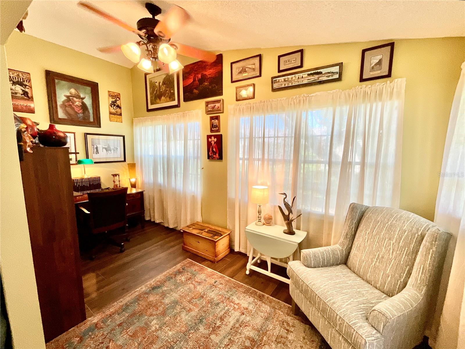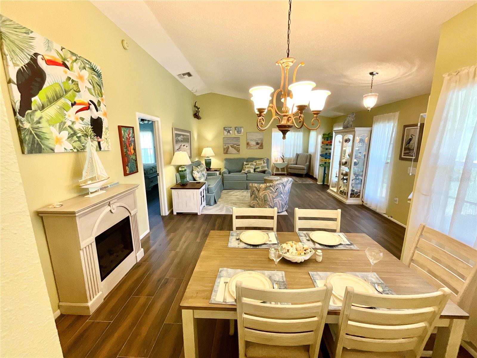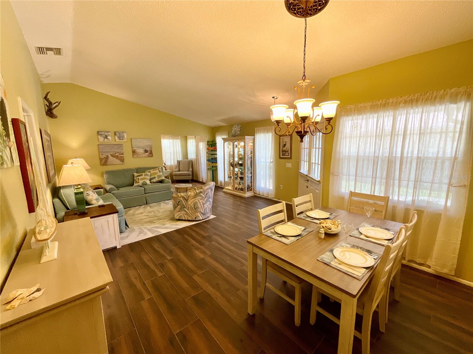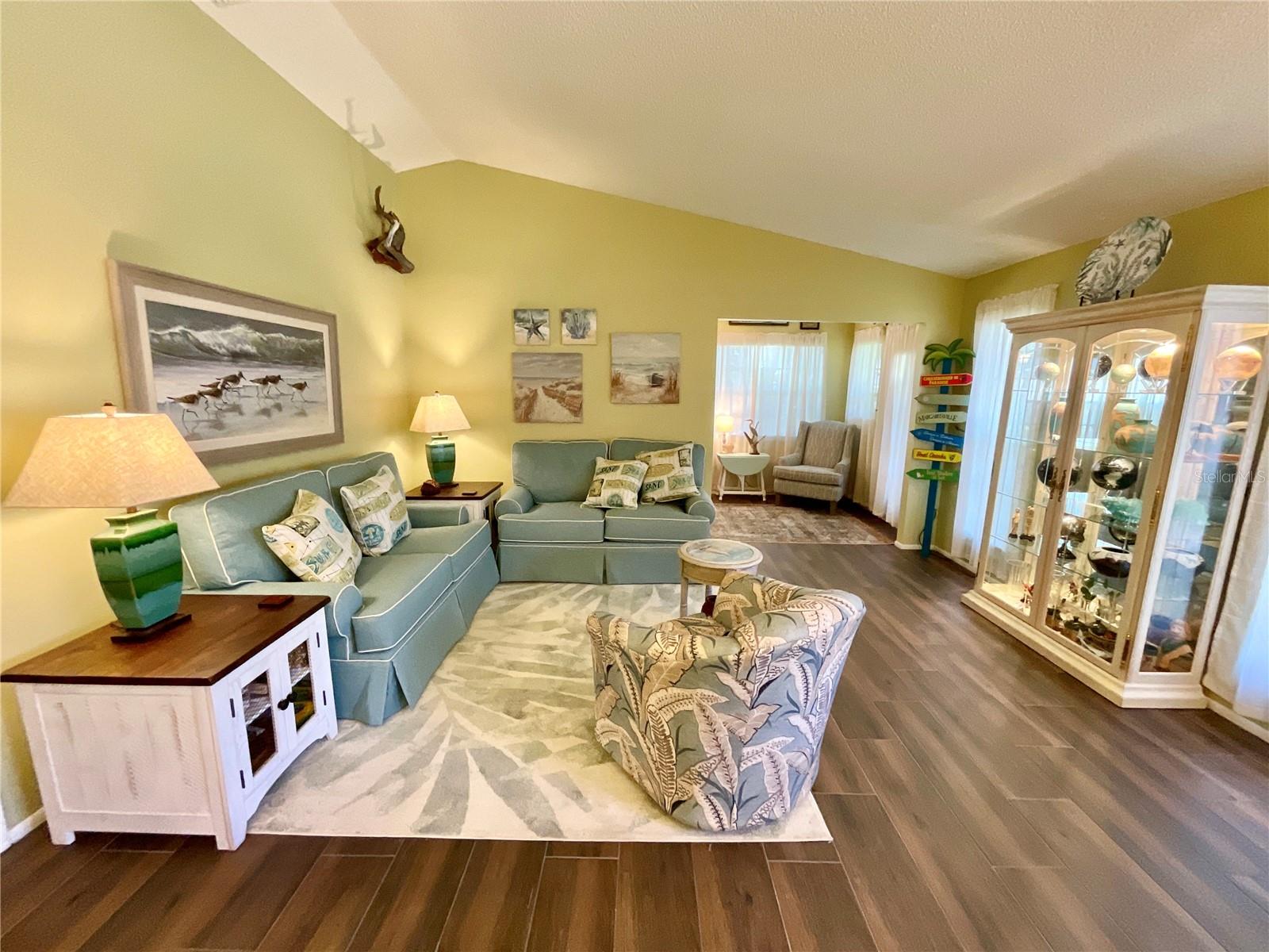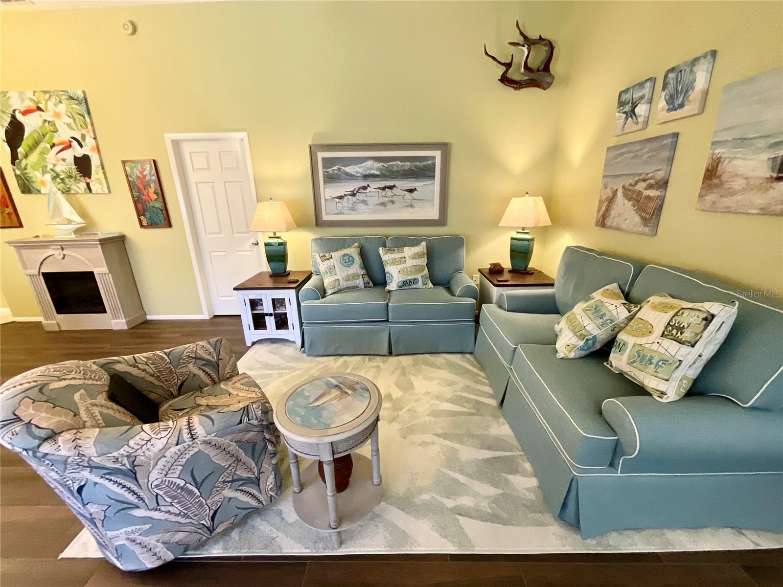 Discover the charm of this beautifully maintained, maintenance-free 55+ home featuring 2 bedrooms, 2 full baths, and over 1,300 sq. ft. of comfortable living space, plus a convenient 1-car garage. Pack your bags and move right in to this 100% turnkey opportunity. Being offered fully furnished with all the furniture including the dishes, flatware,towels and linens. Only thing missing is you”. All for the listed price of $230,000 Step inside to an open floor plan with soaring ceilings that welcome you into the spacious living and dining areas. Enjoy the privacy of split bedrooms and a versatile den/office with high ceilings at the rear of the home. The galley-style eat-in kitchen opens seamlessly to the dining and living rooms, perfect for entertaining. The main bedroom impresses with cathedral ceilings, two closets including a walk-in with custom built-ins, and a stylishly remodeled bath with glass doors, new tile shower, and dual granite sinks. The cozy second bedroom offers ample closet space. The garage includes room for parking, storage, and a washer/dryer (as-is). Located in the vibrant Heritage Lake 55+ community, you’ll have access to a lakefront clubhouse with billiards, card rooms, a banquet hall, pool, cabana, shuffleboard, tennis courts, and more. Lawn care, internet, trash, and clubhouse amenities are included in the rent. Conveniently situated near Little Rd and near SR54, with new shopping centers nearby, this home offers an active, social lifestyle in a welcoming neighborhood. NO PET DOGS BUT CAT ALLOWED - ASSUMABLE VA LOAN AVAILABLE. OFFERED FULLY FURNISHED OR VACANT SAME PRICE.
