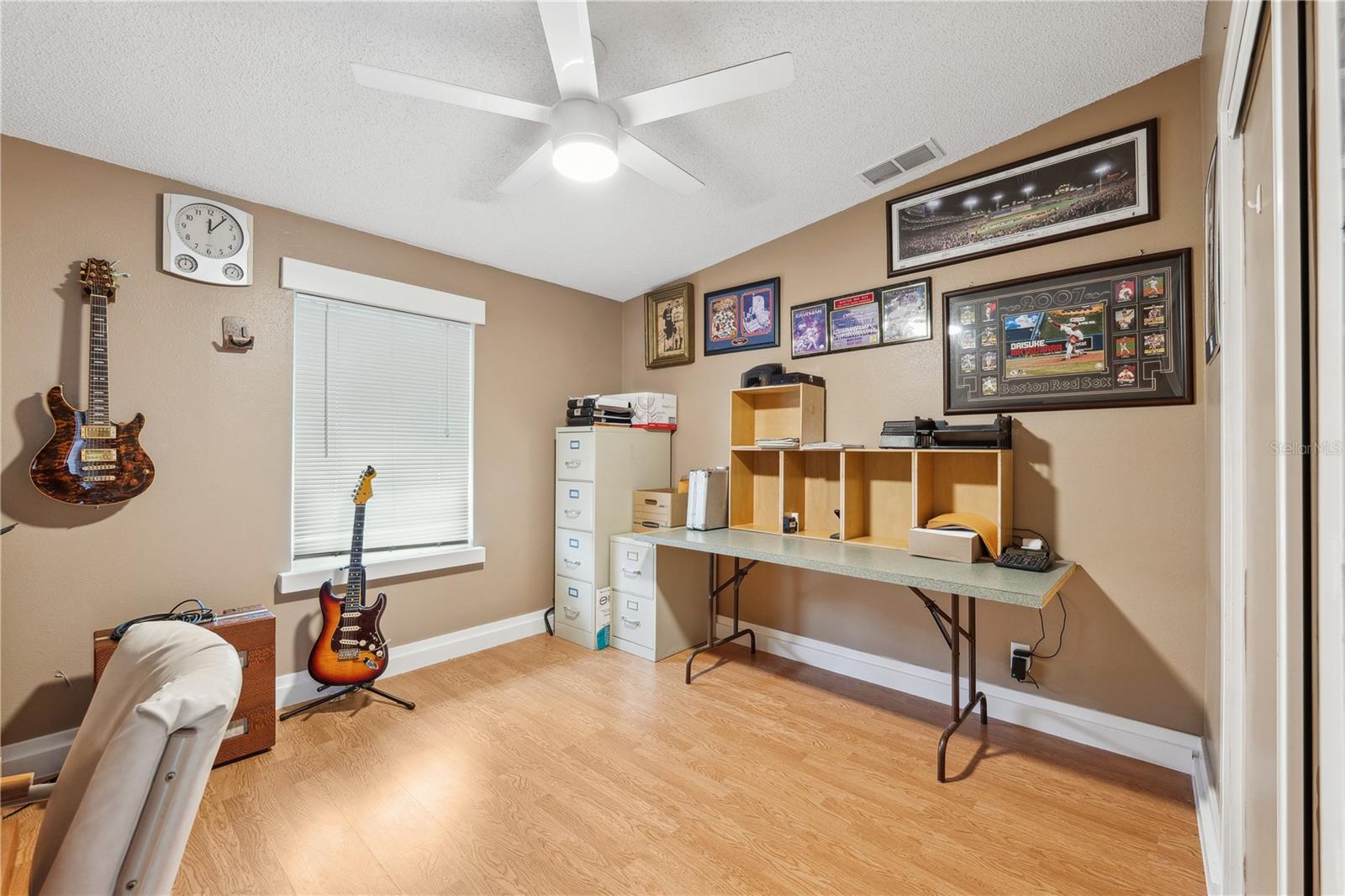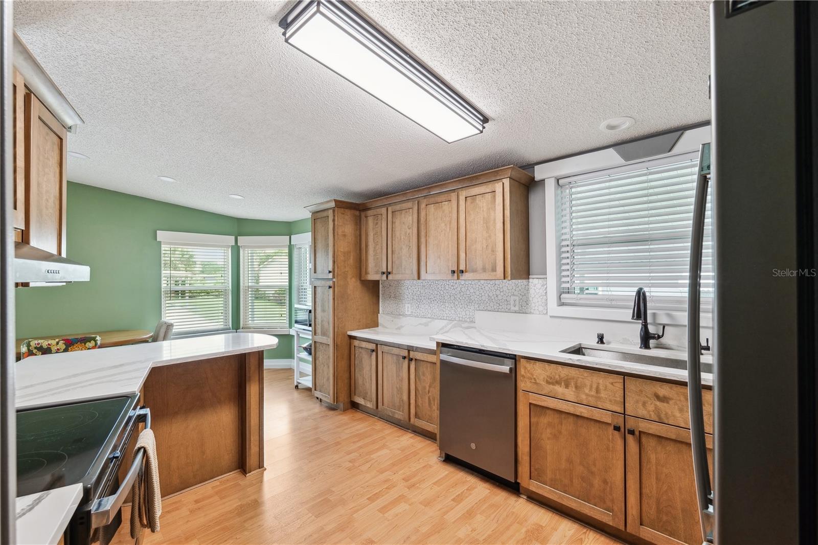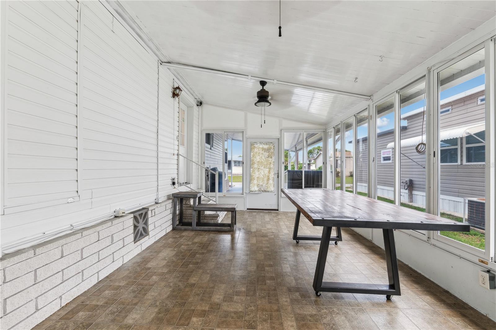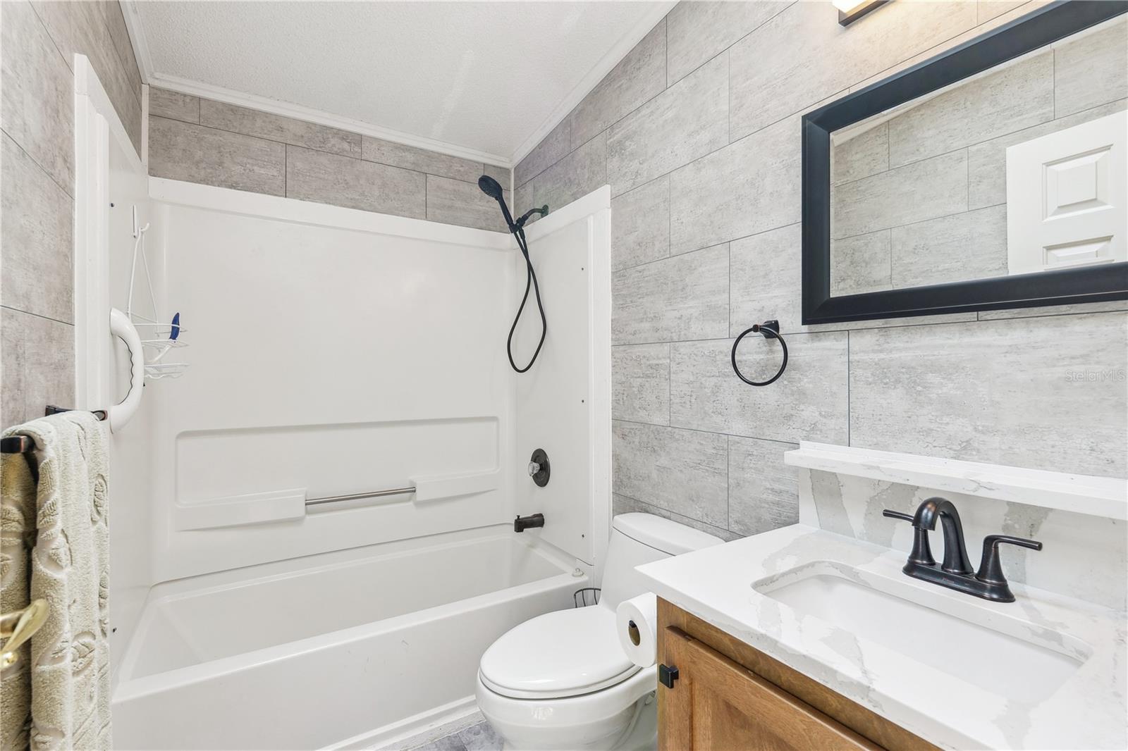 YOU OWN THE LAND! This well-maintained 2-bedroom, 2-bath Palm Harbor Model manufactured home offers 1,242 sq ft of living space with solid 2x6 construction and no storm damage from recent hurricanes. Built in 1997, the home has been recently updated with over $35k in upgrades. The kitchen features refaced real wood cabinet doors, quartz countertops, new stainless steel appliances, updated plumbing, a new sink, and recessed lighting. The living room includes a custom stone mantle with a mounted TV (included) and two large built-in alcoves for books or display. Throughout the home, you’ll find LED lighting, new ceiling fans, updated blinds with real wood valances, upgraded baseboards, and freshly textured and painted walls. The bathrooms have quartz countertops and weatherproof tile. Major systems are in excellent shape: the roof was replaced in 2023, the A/C is four years old, and the water heater is under five years old. The home also features insulated, impact windows for added comfort and efficiency. Outdoor highlights include a large screened lanai, two sheds, a spacious carport, and a fully fenced yard. Move-in ready with all the key updates already done—just bring your personal touch.