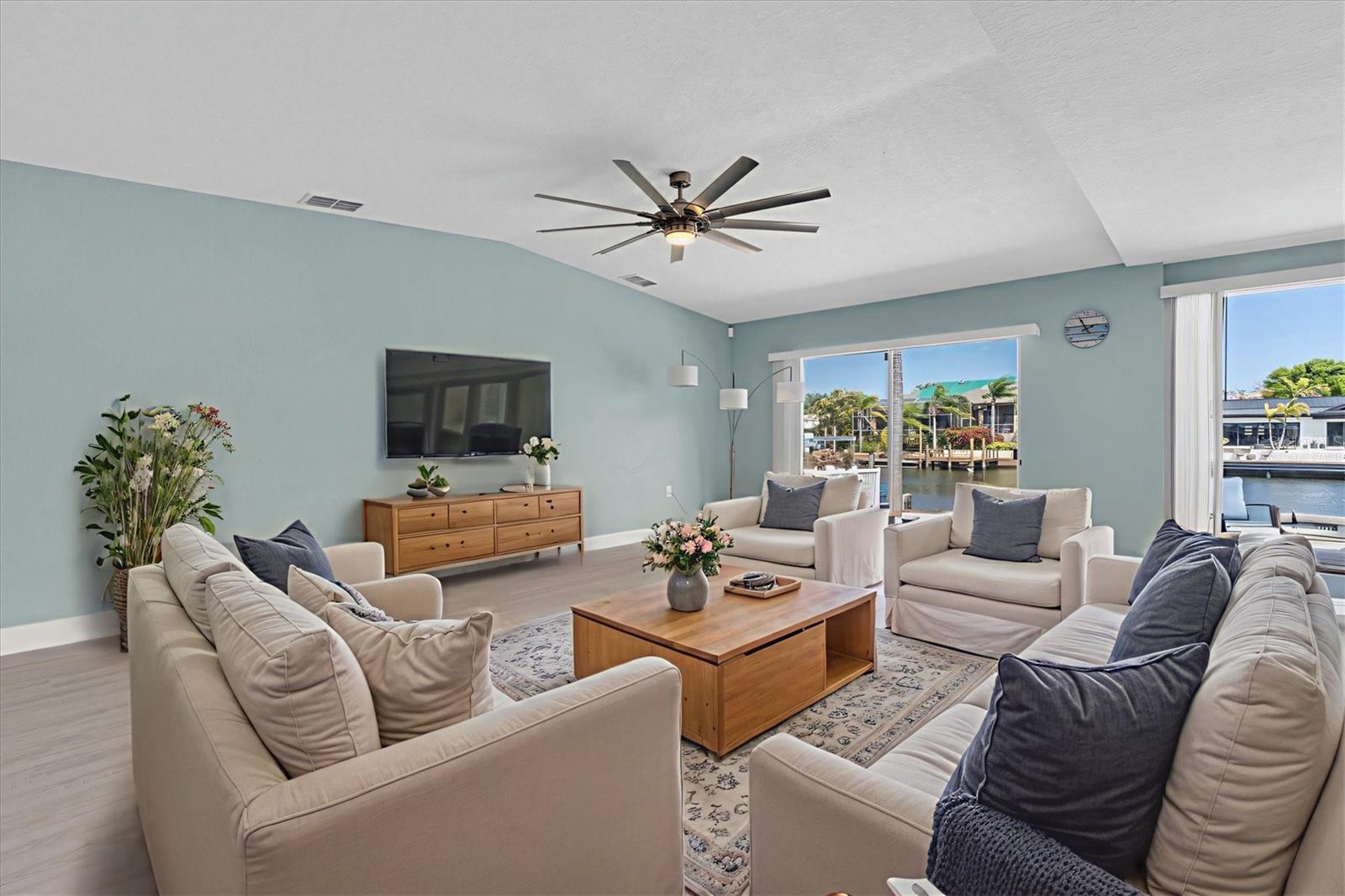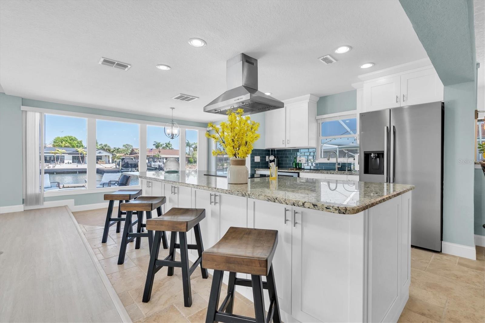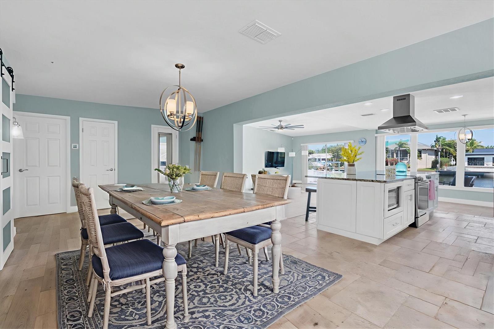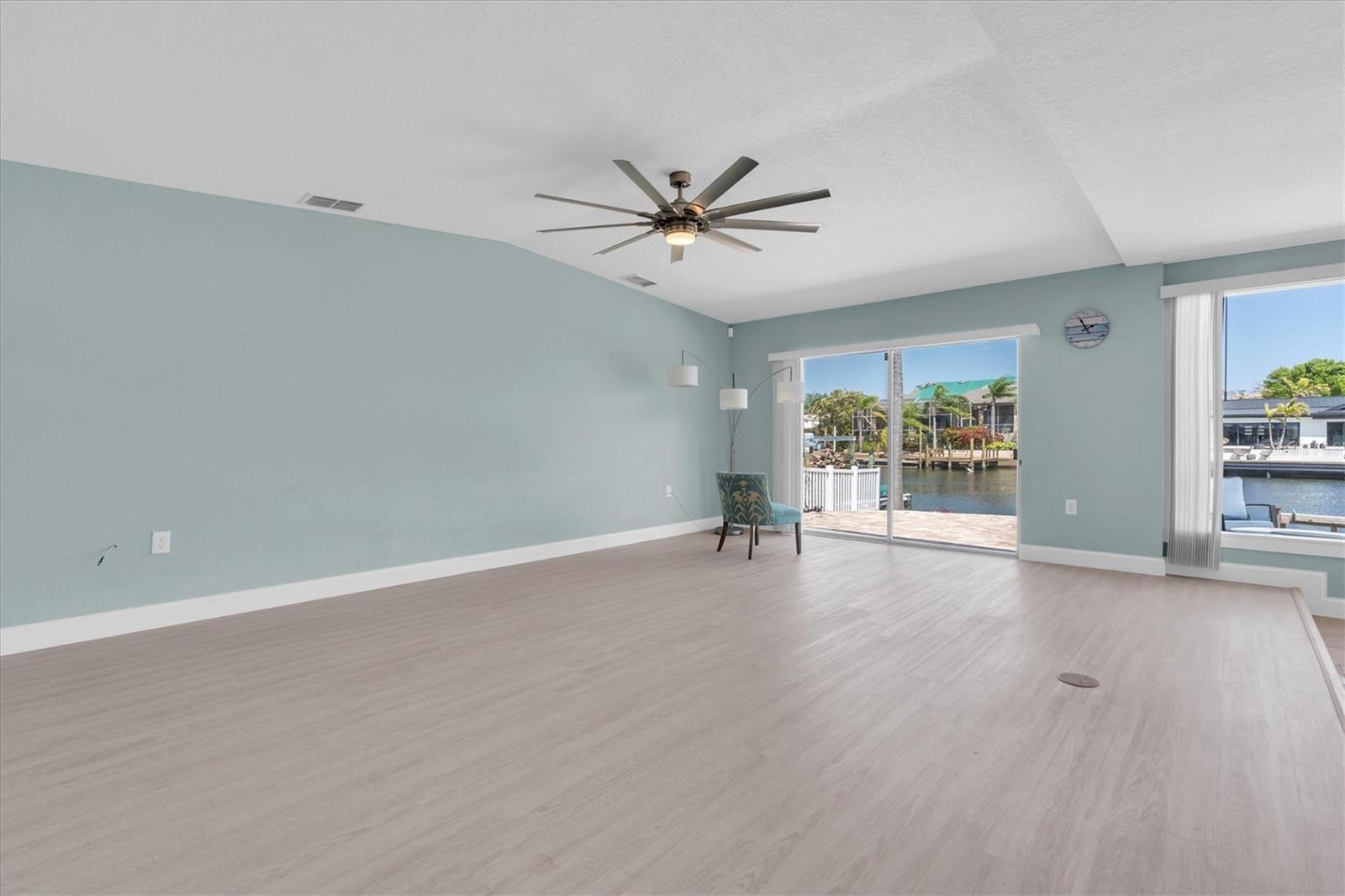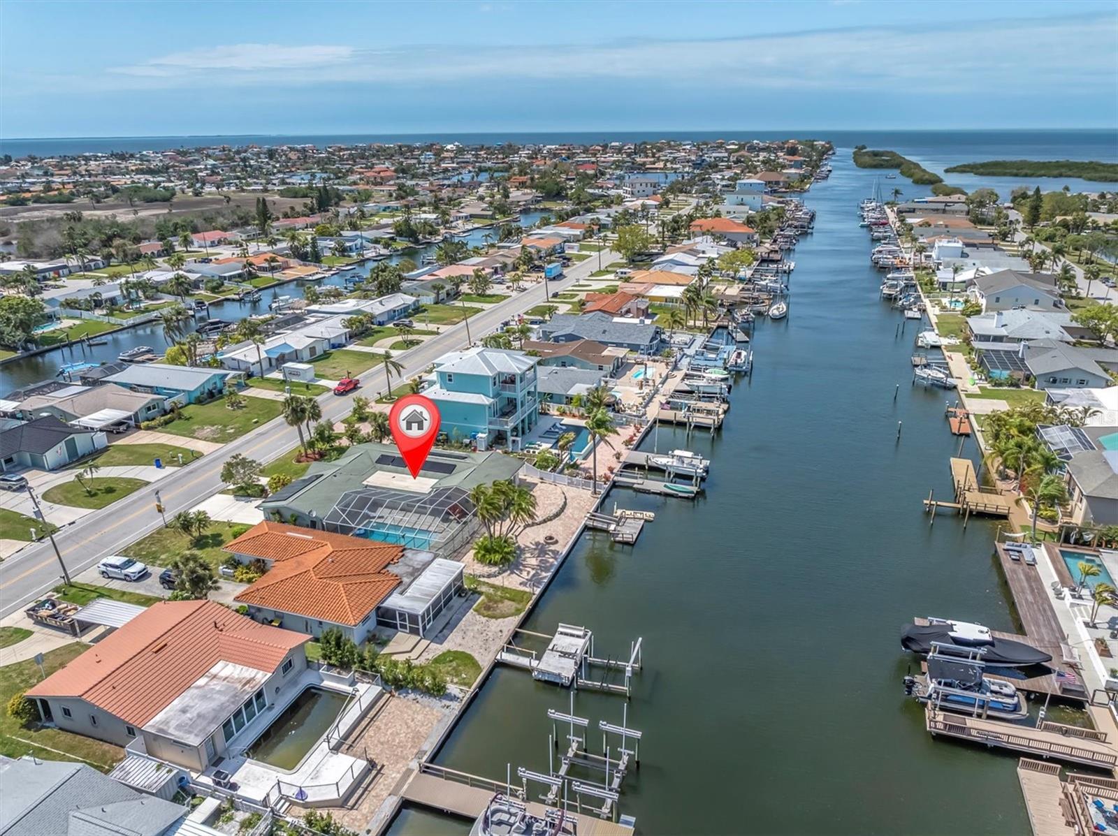 One or more photo(s) has been virtually staged. MOTIVATED SELLER - PRICE IMPROVEMENT! Welcome to your private slice of paradise —this stunning 4-bedroom, 3-bath waterfront home offers the ultimate Florida lifestyle with direct deep-water access to the Gulf. Nestled in a sought-after coastal neighborhood of Gulf Harbors, every day here feels like a vacation.Start your mornings with coffee on the dock, where calm waters and passing dolphins set the tone for the day. Entertain effortlessly in the gourmet kitchen featuring gleaming granite countertops, stainless steel appliances, white cabinetry, and a layout built for gathering. The spacious open-plan living area flows seamlessly to a beautifully resurfaced in-ground pool, surrounded by a large pavered waterfront patio perfect for lounging, dining, and making memories around the custom firepit. This move-in-ready home also features elegant travertine stone flooring and energy-efficient solar panels, making it as smart as it is beautiful. Whether you’re boating to the Gulf, hosting under the stars, or simply soaking in sunset views from your dock, this property delivers the lifestyle you’ve been dreaming of. Residents have the exclusive option to be members of the Gulf Harbors Beach Club, which offers access to a pristine sandy beach, picnic pavilions and unlimited sunsets. Don’t be sheepish—schedule your private showing today and make this waterfront gem yours!