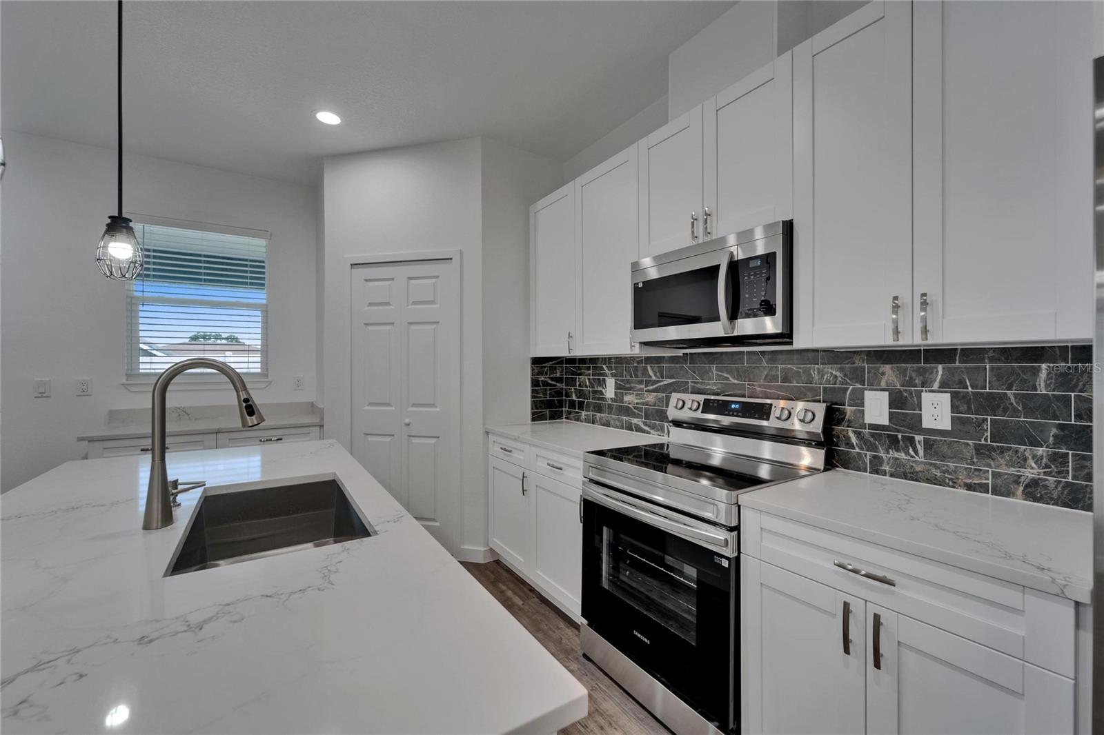Step into this gorgeous BRAND-NEW single-story home that’s got everything you need and more — 3 spacious bedrooms, 2 bathrooms, a 2-car garage, and a bonus room that’s perfect for a home office, playroom, or whatever fits your lifestyle. You’ll love the modern finishes from the moment you walk in, easy-to-maintain vinyl tile floors, bright white shaker cabinets, sleek quartz countertops, Samsung stainless steel appliances, a walk-in pantry, and a dedicated laundry room. The open layout is designed to make everyday living easy and comfortable, with a split-bedroom floor plan that gives everyone their own space. It’s a home that feels both stylish and livable. Located just minutes from New Port Richey Recreation & Aquatic Center and Morton Plant North Bay Hospital and all the charm of downtown New Port Richey — with local restaurants, shops, parks, and fun community events just around the corner.