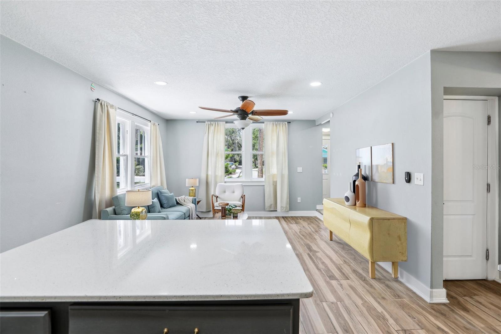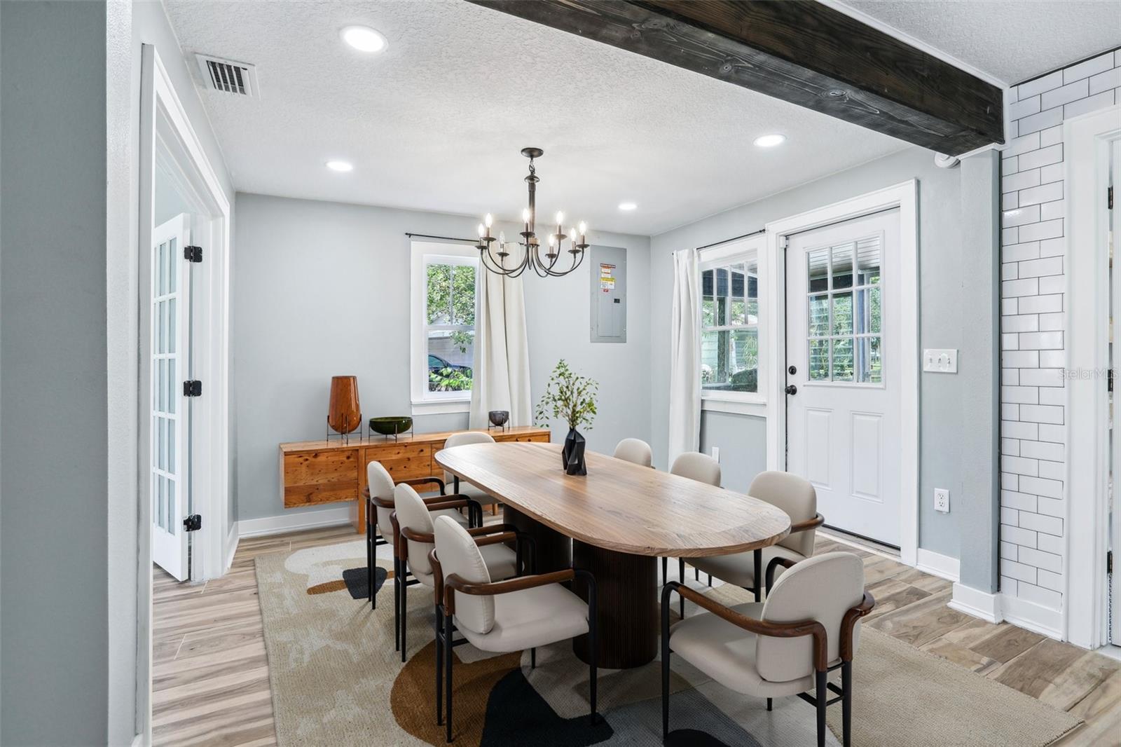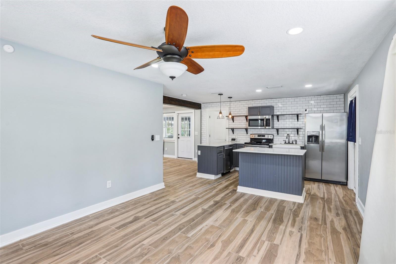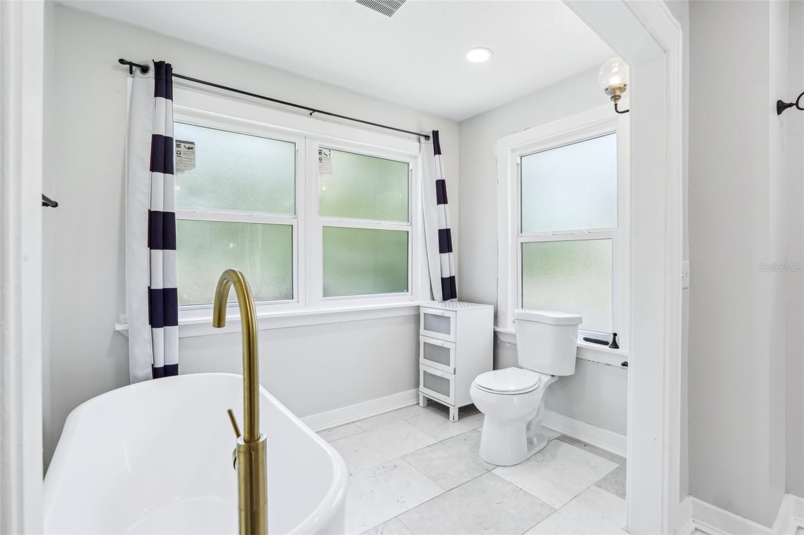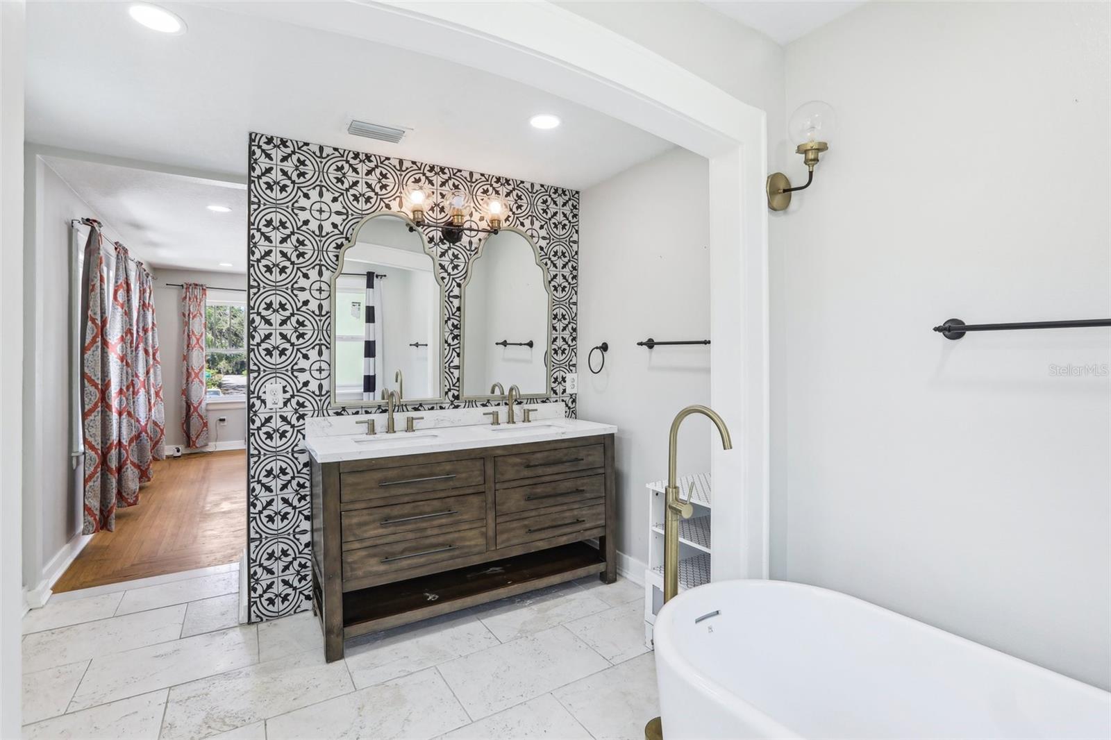 Charming and beautifully restored 3-bed, 3-bath home just minutes from downtown New Port Richey. Originally built in 1940, this residence blends timeless character with modern updates. The open-concept kitchen boasts a subway tile backsplash, open shelving, solid surface countertops, and a large single basin sink. The spacious primary bath offers a soaking tub and dual vanities. A first-floor guest bath features a walk-in shower, while the second-floor bath includes dual vanities. Ample third-floor attic space offers excellent storage.