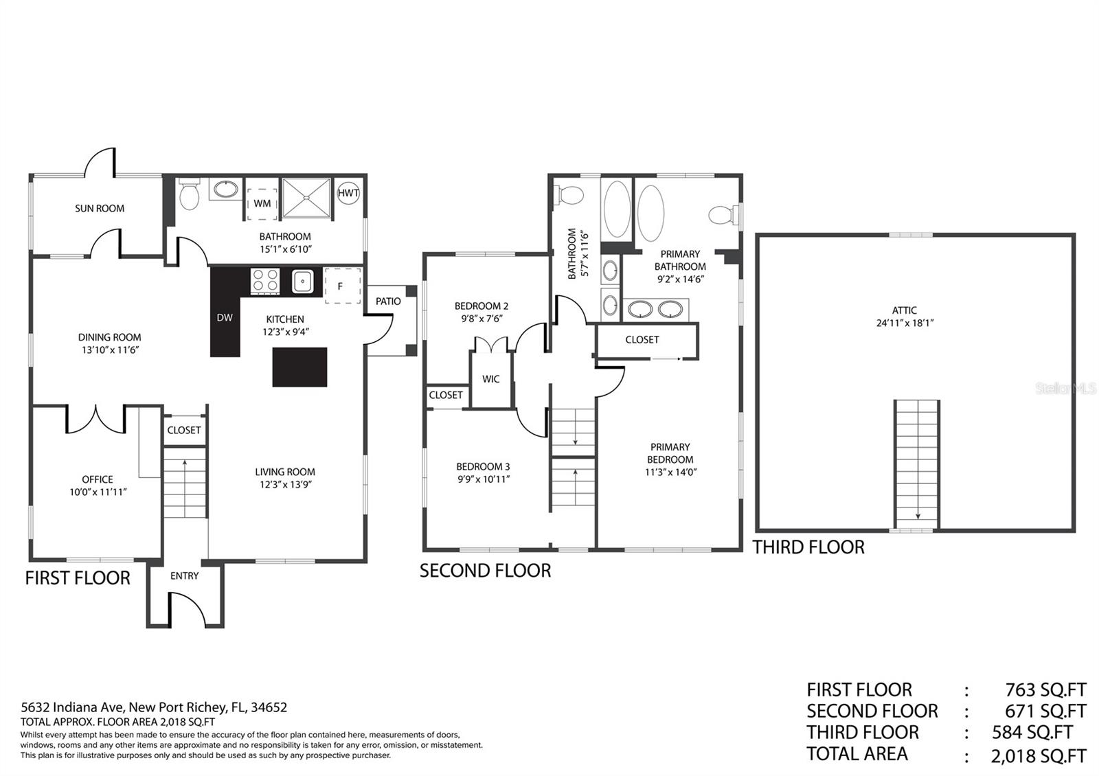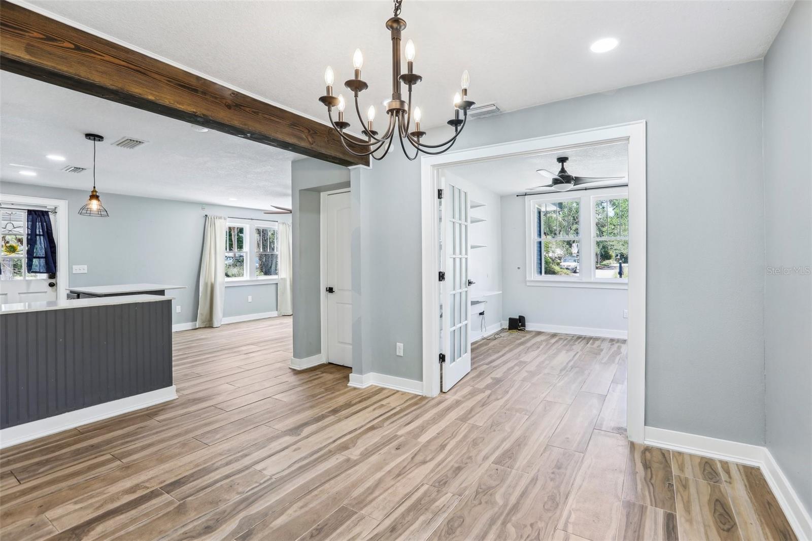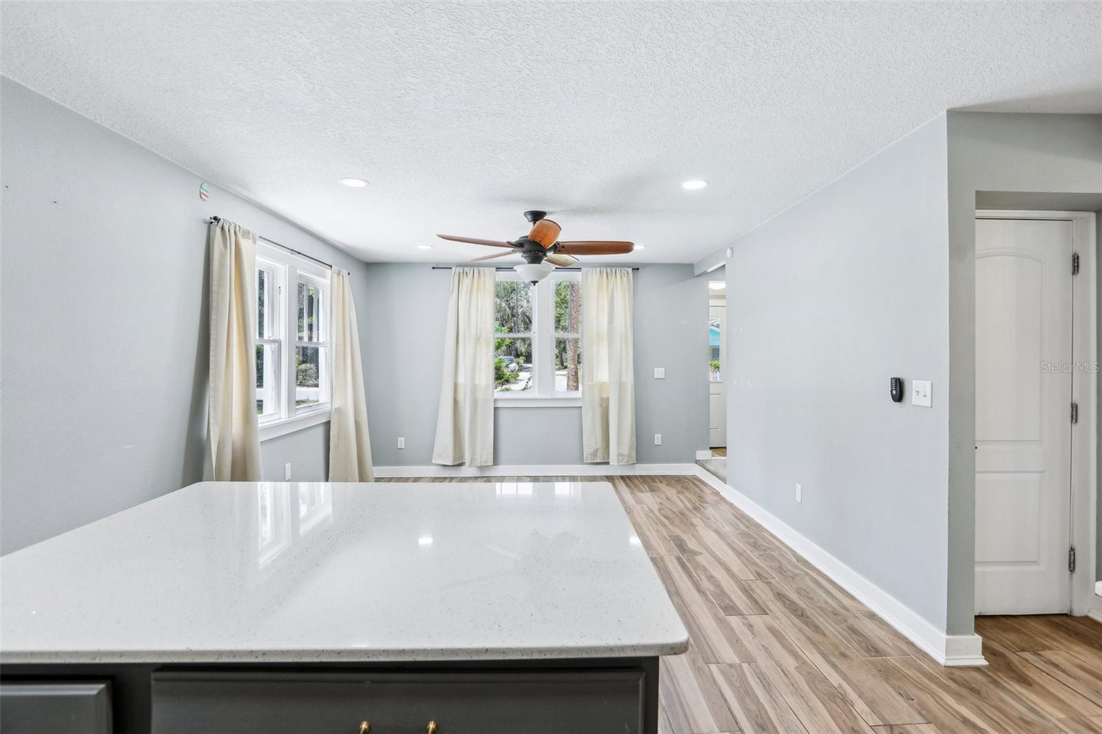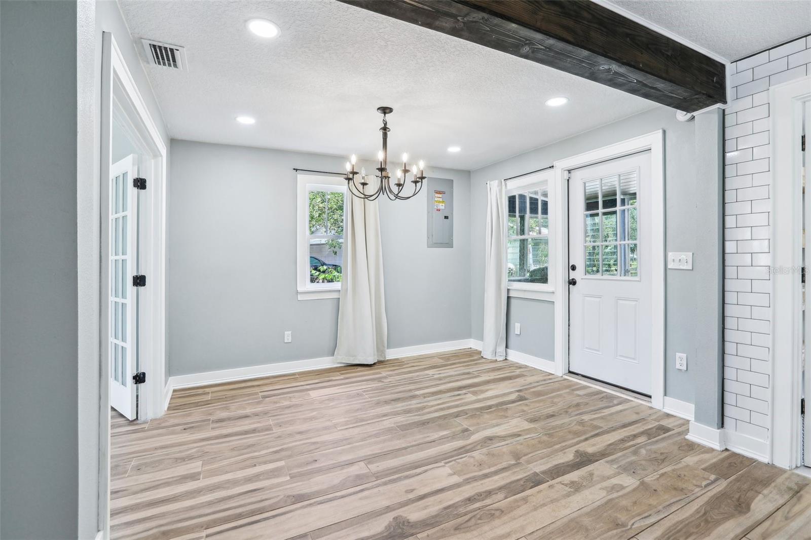 Charming and beautifully restored 3-bed, 3-bath home just minutes from downtown New Port Richey. Originally built in 1940, this residence blends timeless character with modern updates. The open-concept kitchen boasts a subway tile backsplash, open shelving, solid surface countertops, and a large single basin sink. The spacious primary bath offers a soaking tub and dual vanities. A first-floor guest bath features a walk-in shower, while the second-floor bath includes dual vanities. Ample third-floor attic space offers excellent storage.