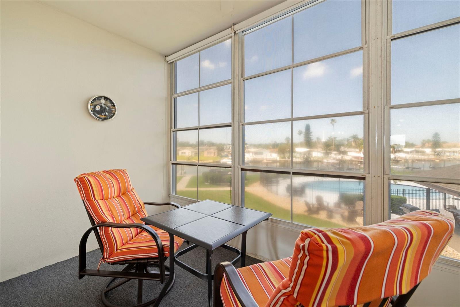 Welcome to Windward Cove, a hidden gem in the heart of New Port Richey! This spacious 2-bedroom, 2-bath second-floor condo offers incredible views of the North Channel of Gulf Harbors—and yes, those sunsets really are as amazing as they look. Step inside and you’ll find a light-filled living and dining area with direct views out to the water and pool. The layout is open and inviting, perfect for relaxing or entertaining. The large dining room easily seats a crowd, and the kitchen pass-through makes hosting a breeze. The fully equipped kitchen features plenty of cabinet space, a stainless-steel refrigerator, built-in desk nook, and a washer/dryer conveniently tucked in. One of the standout features is the enclosed lanai overlooking the canal and community pool—ideal for enjoying your morning coffee or evening wine. The extra-large primary bedroom includes a walk-in closet, built-in desk or vanity, glass sliders to the lanai, and a private en-suite bath with a spacious walk-in shower (no tub). The second bedroom is tucked toward the front of the unit, offering privacy and flexibility for guests or a home office. Best of all? This home comes fully furnished—just bring your suitcase and settle in! Whether you're seeking a permanent residence or a vacation getaway, this condo checks all the boxes in a prime location! Windward Cove Condos is a small enclave of homes. The community features a clubhouse, water/gulf front pool, tiki hut (with full outdoor kitchen, BBQ, seating and outdoor television). The low monthly fee includes building exterior maintenance, insurance, sewer, water, trash, cable (and sports package too). This building also includes two elevators for convenience. Located close to shopping, medical facilities, and just a few minutes to downtown New Port Richey, you will not run out of things to do! High & Dry! No damage from the 2024 storms. Just bring your toothbrush and you are home! This home checks all the boxes! Don’t miss your chance to own a piece of paradise! Schedule your private showing today!