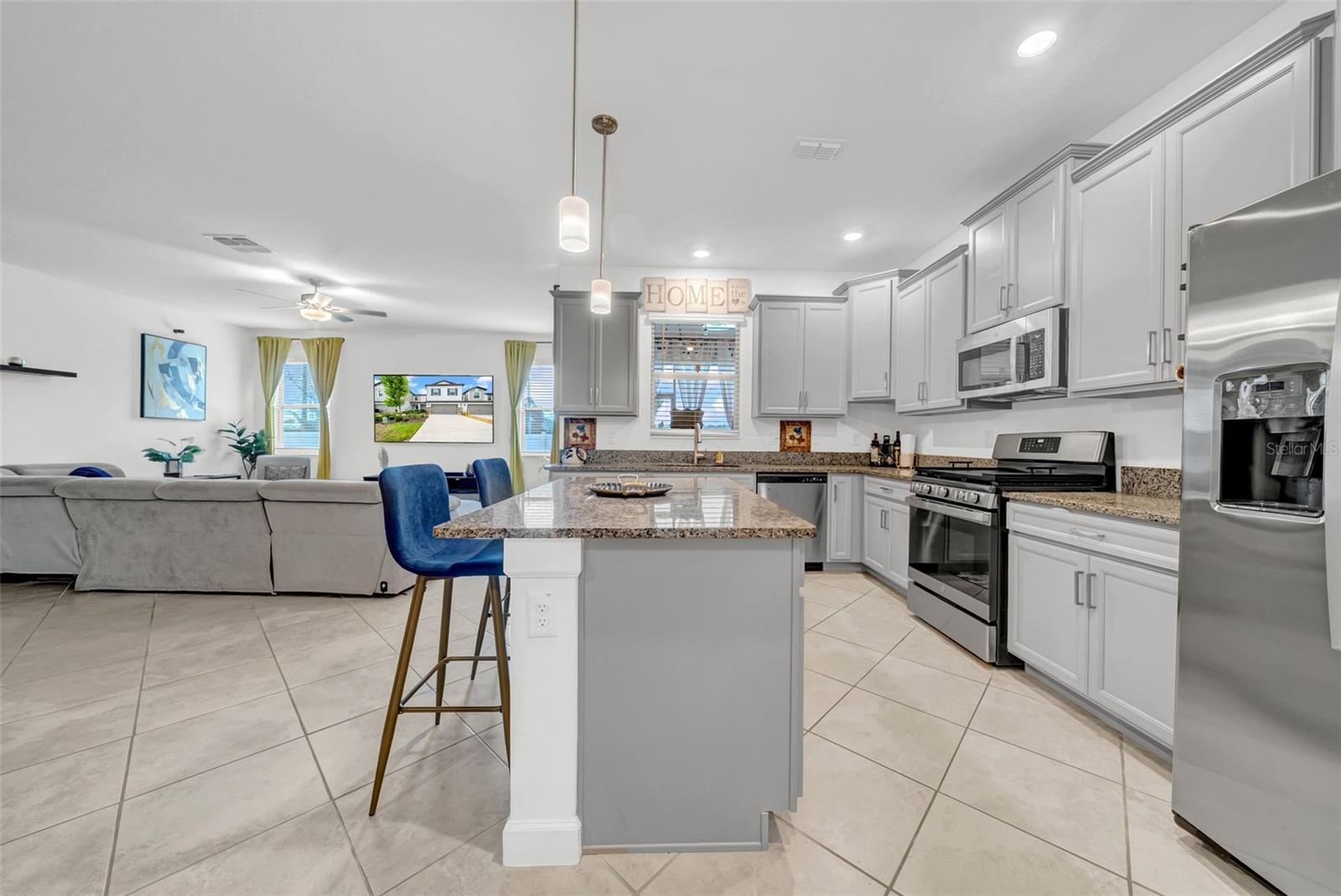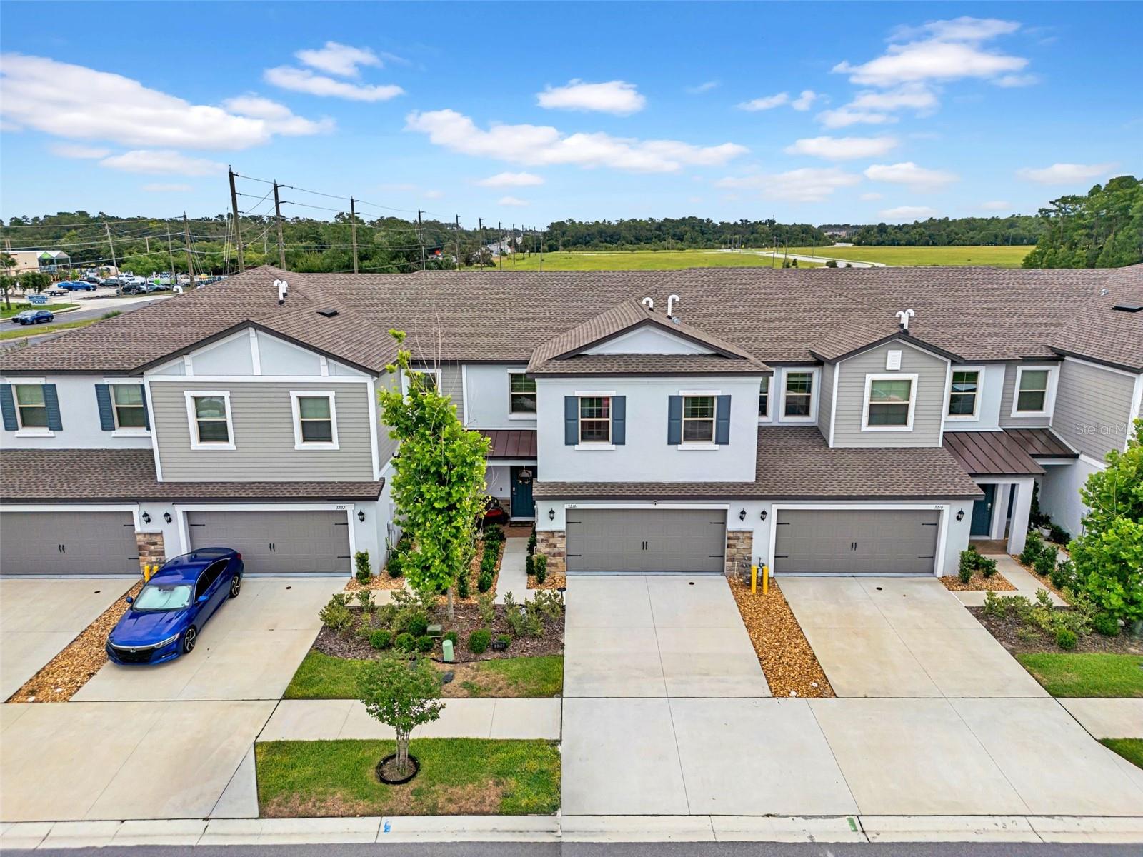 WOW! HUGE PRICE DROP! MOVE-IN READY! Experience the difference of 2,466 sq ft of thoughtfully designed townhome living! Built in 2023, this modern townhome offers all the comfort and style you’re looking for—just unpack and enjoy! This spacious and modern home features a bright open-concept floorplan on the first floor, seamlessly connecting the kitchen, family room, dining area, and screened back patio—ideal for everyday living and entertaining. Upstairs, a generous loft leads to three secondary bedrooms and the private owner’s suite. The luxurious owner’s retreat offers two walk-in closets and an en-suite bath with dual vanities and stylish finishes. All bedrooms are equipped with ceiling fans for added comfort. Additional highlights include gray cabinetry with granite countertops, GE stainless steel appliances, an EV charging station in the garage, a soft water system, and convenient guest parking directly across the street. Residents enjoy access to community amenities such as TWO community pools, walking trails, and scenic surroundings. Prime location just one light from SR-54 and Little Rd, placing you near over 60 dining, shopping, and service options. Bryant Square offers close proximity to top-rated schools, medical facilities, gyms, and hospitals.
