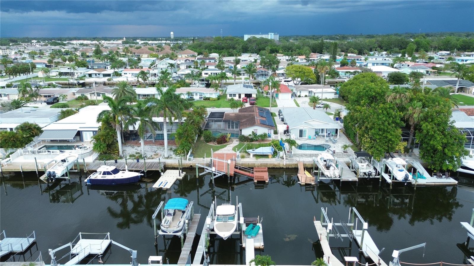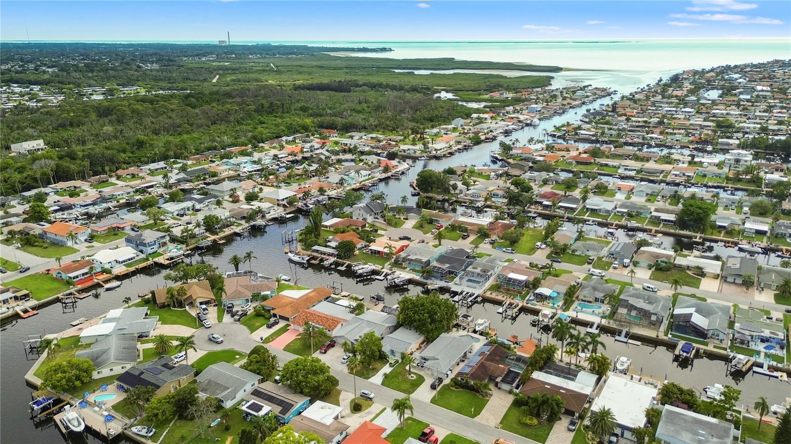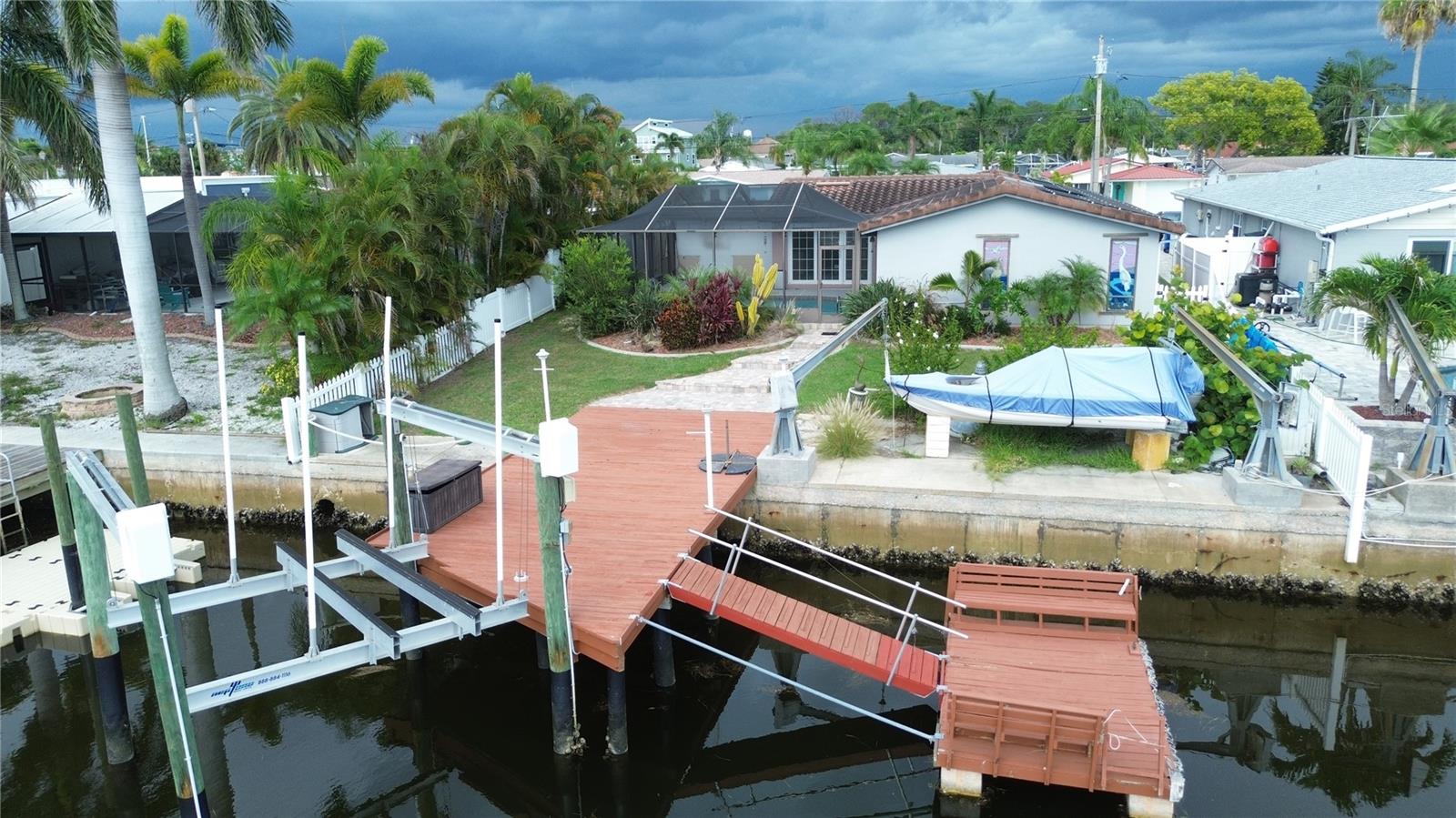 Live the vacation life year round in this deep water canal front 3 bedroom, 2 bath pool home with a 10,0000 lb boat lift a boat davit and both a stationary and a floating dock. Hop in your boat and get to the Gulf before you finish your first beer. Watch the sunset poolside from your screened land pavered anai The modern kitchen and baths add a touch of luxury. The owners suite features sliding doors leading to the pool and an ensuite bath which doubles as a pool bath, preventing swimmers from tracking water through the house. Fully owned solar panels heat the pool and the home, leading to great savings. The HOA is less than $11 per month and is voluntary. For a fee of $200 you can have access to the private neighborhood beach which is directly on the Gulf. This home will make the perfect vacation home, rental home or you can live here full time and feel like you are permanently on vacation. There are many waterfront restaurants and Publix and some shops immediately outside of the neighborhood. Downtown New Port Richey is about a mile up the road and filled with interesting boutiques, restaurants and breweries as well as a picturesque park.
