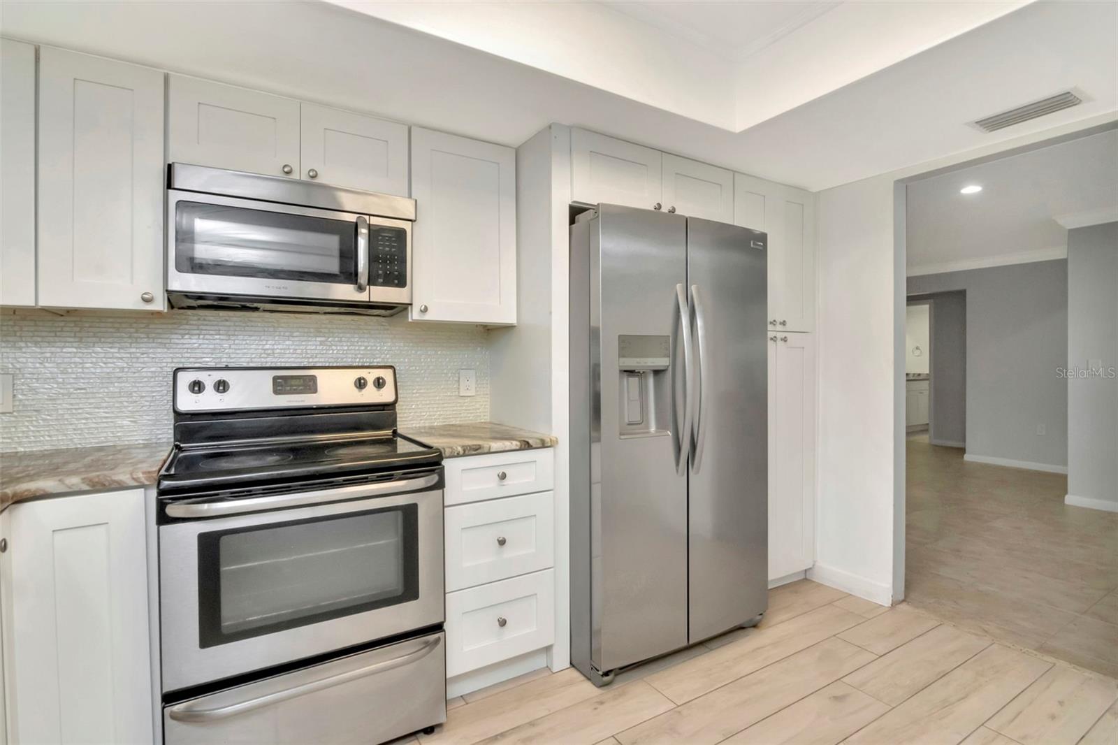 PRICE REDUCTION!!!! Welcome to this stunning and move-in-ready large 2-bedroom, 2-bathroom home with a 2-car garage. Located in the highly desirable Greenbrook Estates of New Port Richey. This thoughtfully updated residence features a split floor plan, offering privacy and comfort for you and your guests. Step inside to find an inviting open-concept living and dining area perfect for entertaining or relaxing in style. The modernized kitchen opens to a charming front screened-in porch, ideal for enjoying your morning coffee. A second screened patio in the back overlooks beautifully landscaped grounds, providing the perfect spot to unwind at the end of the day. Additional highlights include: New roof (installed in 2024), A/C is 10+ years but works great and is serviced regularly Generous closet space and natural light throughout, Sprinkler system, new laundry sink and side garage door, newly paved roads in neighborhood, new refrigerator, Crown Molding Throughout, Custom cabinets in kitchen with granite countertops and custom cabinets with granite counter tops in both bathrooms. All of this with a low annual HOA fee!!! The HOA fee includes exclusive access to the private community clubhouse and pool perfect for year-round Florida living. Greenbrook Estates is in the Mitchell School District, close to the Trinity’s shopping and dining destinations, Tarpon Springs and Clearwater beaches, Trinity Medical Center, and Seven Springs Golf & Country Club. Easy access to SR-19 and the Veterans Expressway makes commuting a breeze. Don’t miss this opportunity to own a beautiful home in a prime location—schedule your private showing today!