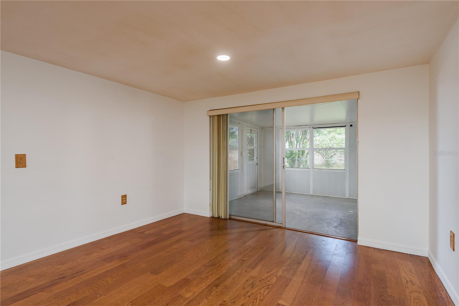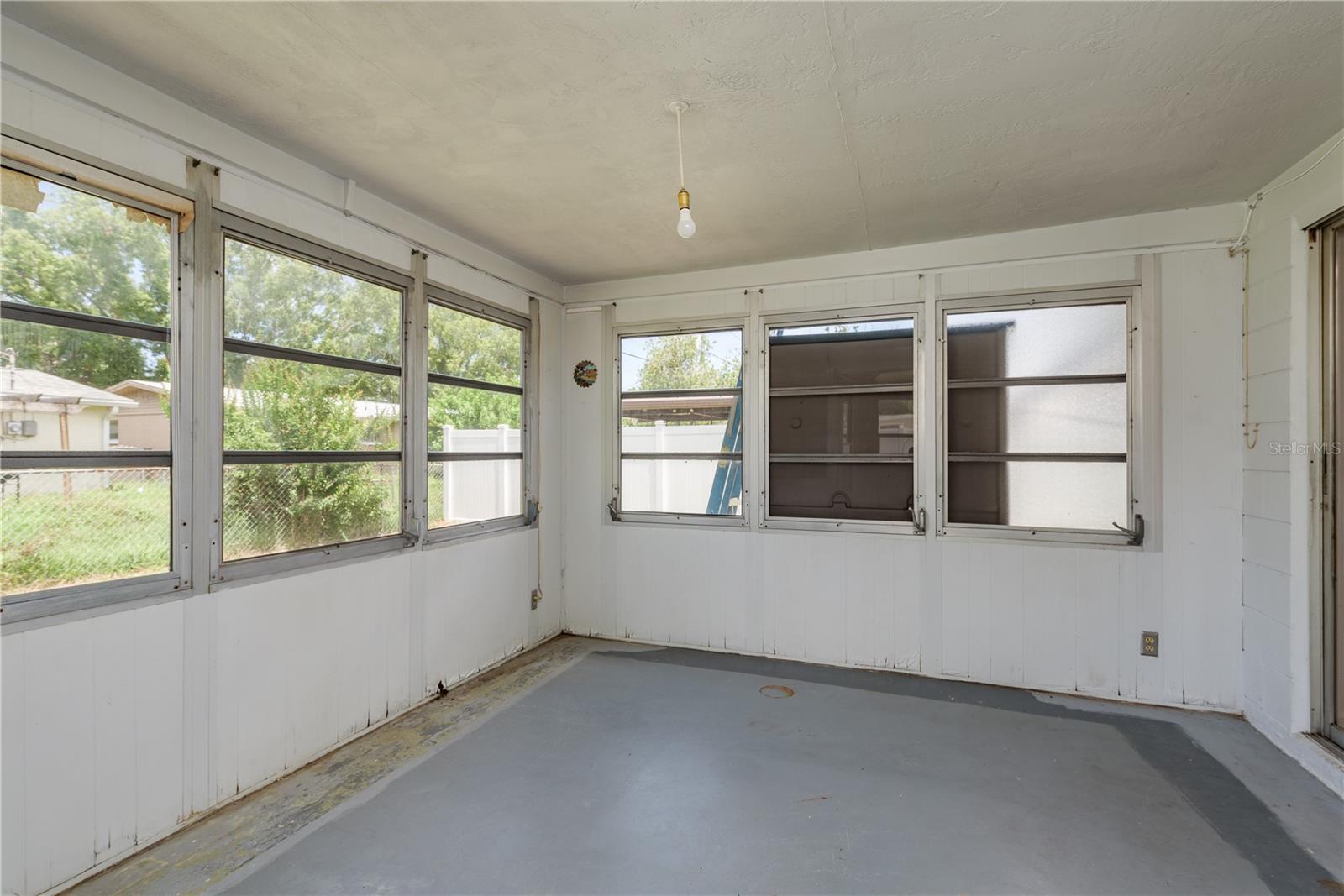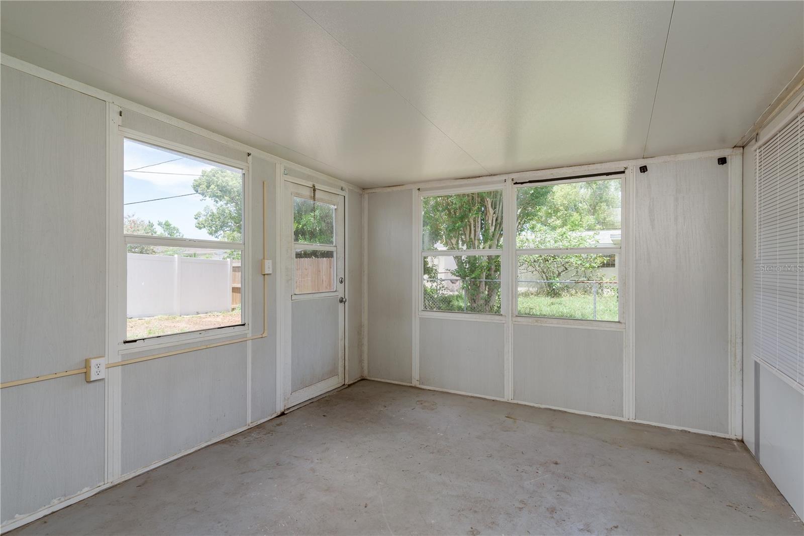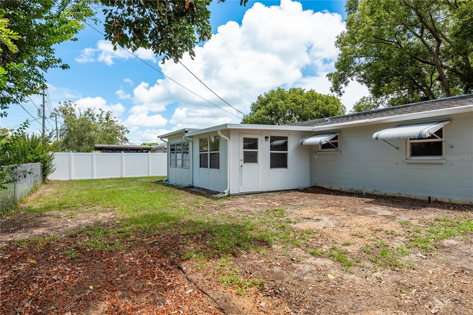 Brand new AC! This 2-bedroom, 1.5-bathroom home features a welcoming exterior with a large, shaded front yard, a front porch with decorative lighting, fresh exterior paint, and updated windows. A one-car garage adds both convenience and functionality. Inside, the home features an open floor plan with wood flooring throughout. The spacious living room flows seamlessly into a generous dining area, which includes sliding glass doors that invite natural light and provide access to the outdoor space. The kitchen offers updated cabinetry, a stainless steel refrigerator, and a closet pantry for added storage. The sizable primary bedroom includes a modern ceiling fan/light fixture and windows that brighten the space. New bedroom and bathroom doors will be installed prior to closing. At the rear of the home, two enclosed patio/lanai areas provide flexible indoor-outdoor living options and are accessible from both the kitchen and dining room. The large, partial fenced backyard offers privacy and ample room for outdoor enjoyment. With recent exterior updates and a move-in-ready interior, this home is a low-maintenance, straightforward choice. Schedule your showing today and experience the potential of this well-maintained property. Come see how this lovely home could be the perfect fit for your next chapter!