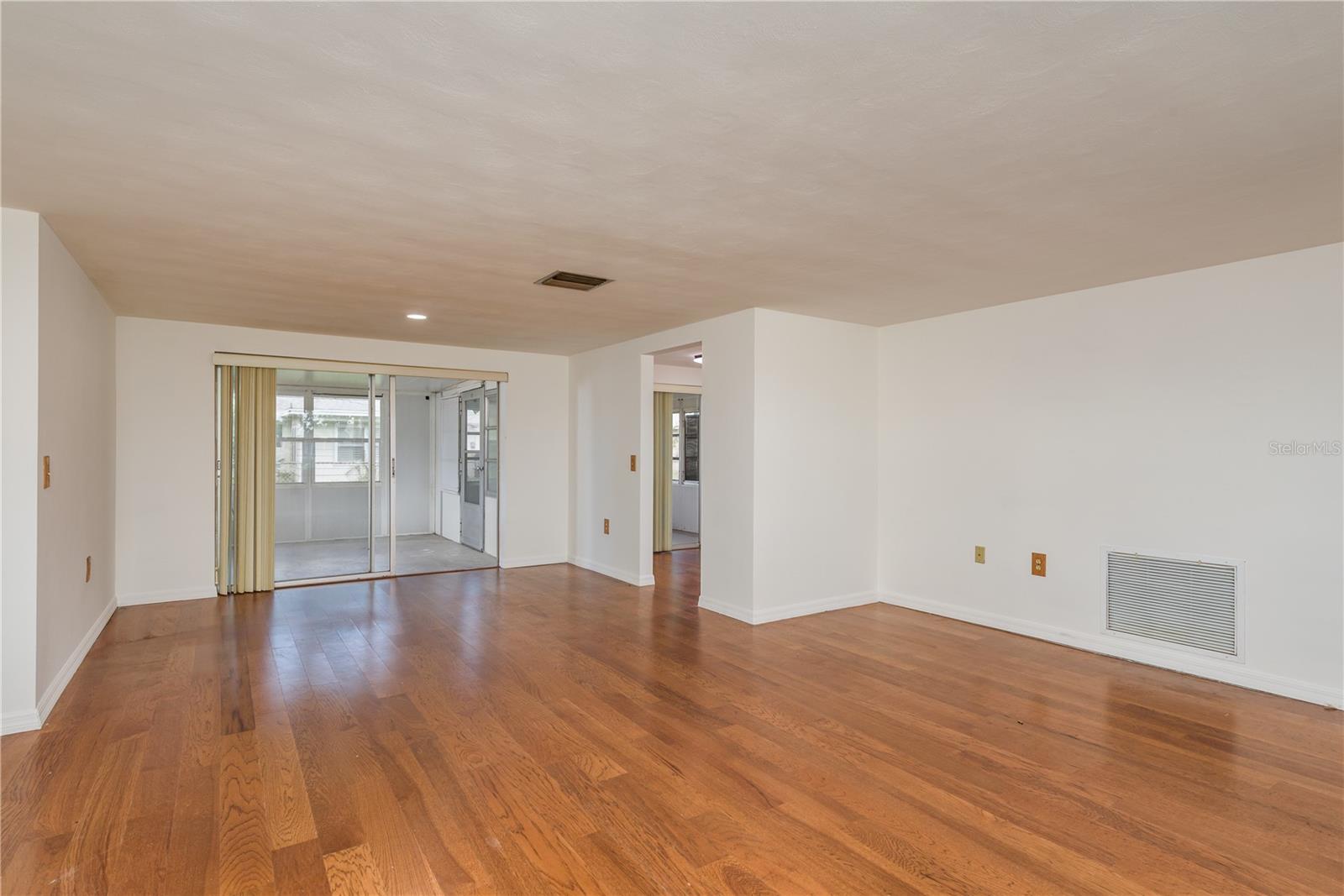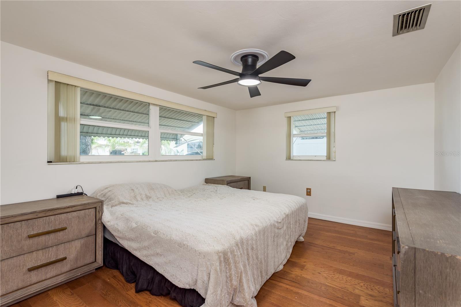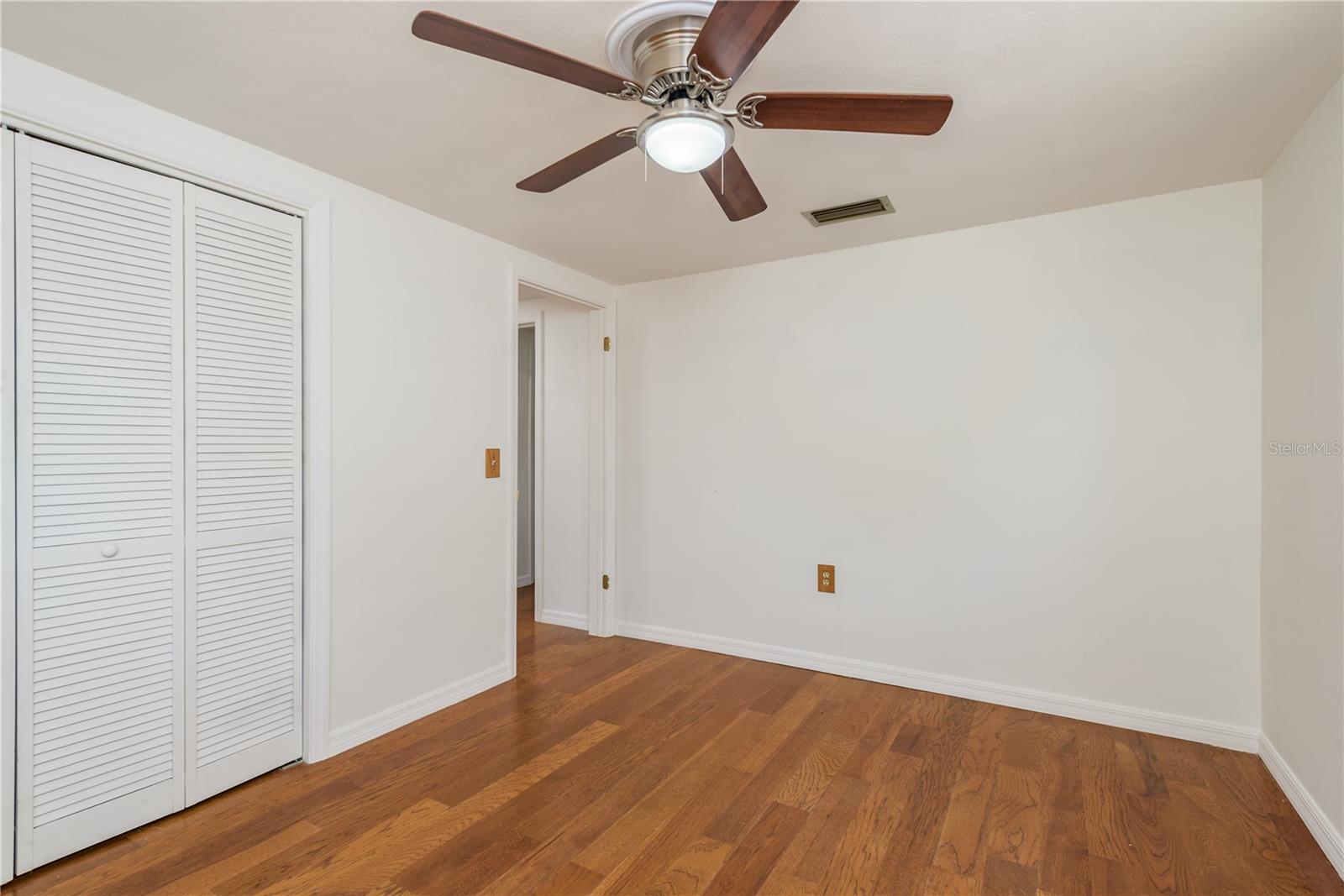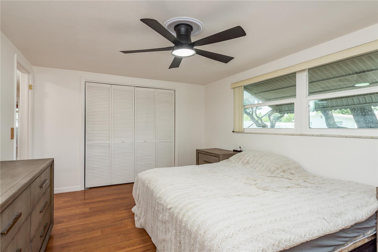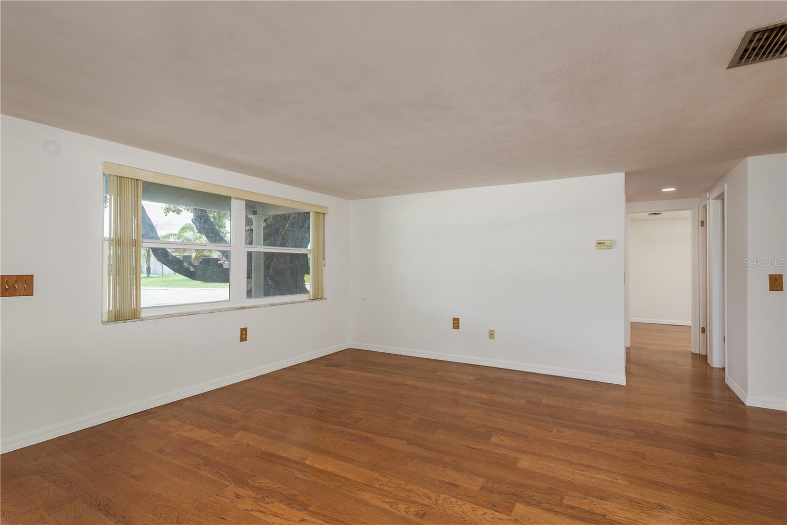 Brand new AC! This 2-bedroom, 1.5-bathroom home features a welcoming exterior with a large, shaded front yard, a front porch with decorative lighting, fresh exterior paint, and updated windows. A one-car garage adds both convenience and functionality. Inside, the home features an open floor plan with wood flooring throughout. The spacious living room flows seamlessly into a generous dining area, which includes sliding glass doors that invite natural light and provide access to the outdoor space. The kitchen offers updated cabinetry, a stainless steel refrigerator, and a closet pantry for added storage. The sizable primary bedroom includes a modern ceiling fan/light fixture and windows that brighten the space. New bedroom and bathroom doors will be installed prior to closing. At the rear of the home, two enclosed patio/lanai areas provide flexible indoor-outdoor living options and are accessible from both the kitchen and dining room. The large, partial fenced backyard offers privacy and ample room for outdoor enjoyment. With recent exterior updates and a move-in-ready interior, this home is a low-maintenance, straightforward choice. Schedule your showing today and experience the potential of this well-maintained property. Come see how this lovely home could be the perfect fit for your next chapter!