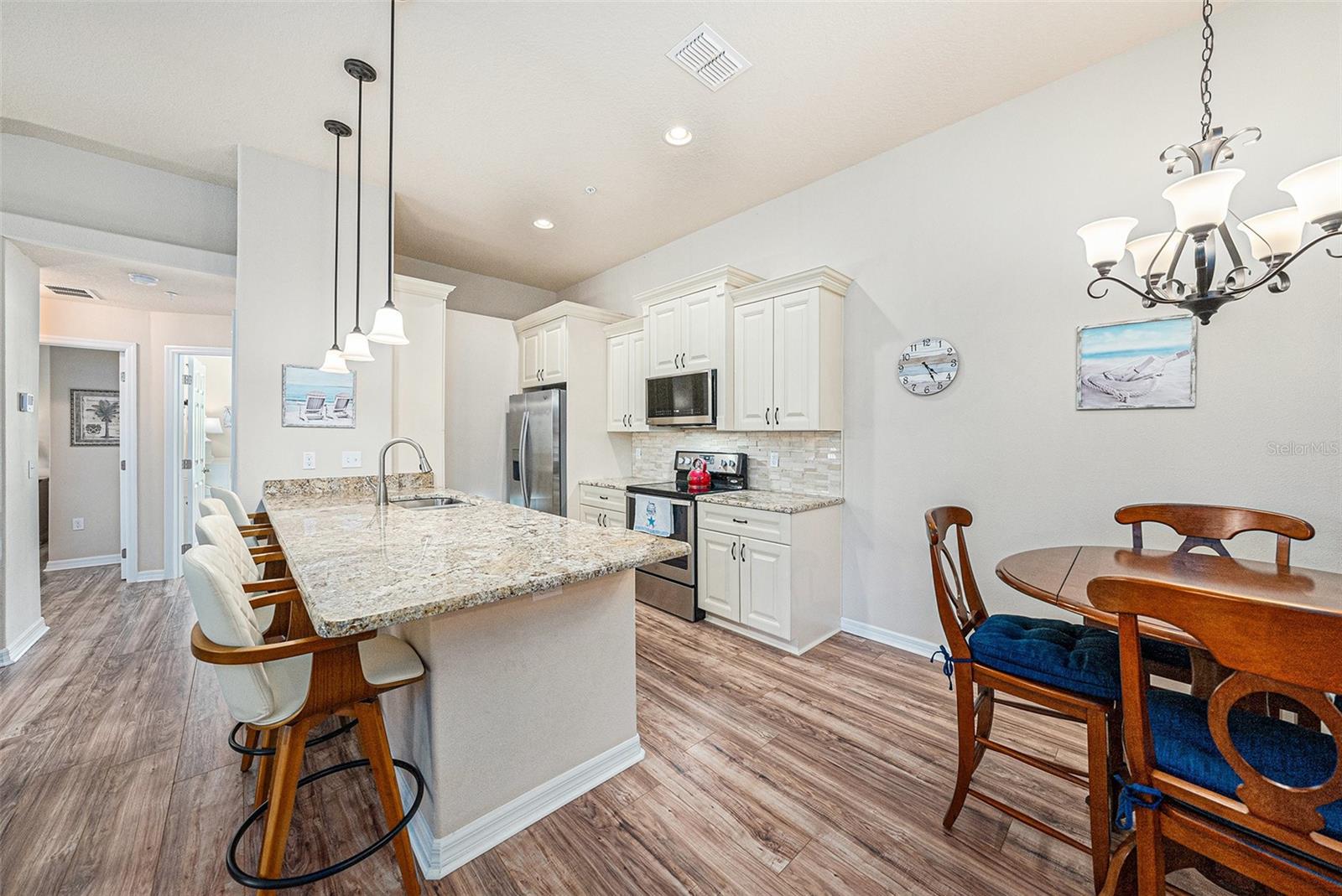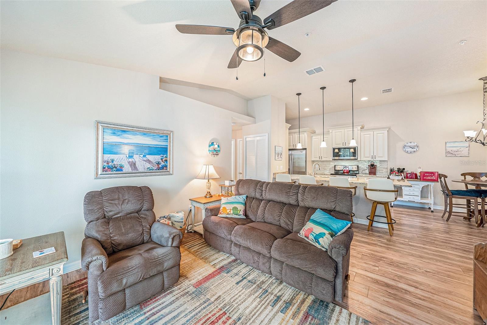 Florida Charm Meets Modern Comfort in Regency Palms Welcome to this beautifully maintained 3-bedroom, 2-bathroom condo with a versatile bonus/flex room, ideally situated in the highly desirable Regency Palms community. Built in 2015, this third-floor unit offers elevator access, stylish finishes, and a layout designed for modern Florida living. Step out onto your private rear balcony to bask in the sunshine, or head down to the oversized 22' x 11' bonus room located on the ground floor—complete with its own mini-split HVAC system. Whether you envision a home office, hobby room, media space, or extra storage, this flexible area adapts to your lifestyle. Inside, you’ll find a bright and open floor plan featuring a spacious living area, dedicated dining space, and a beautifully appointed kitchen. Enjoy the convenience of an interior laundry closet, additional pantry storage, and a full-house water filtration system, air purifier, and whole-home surge protector for added comfort and peace of mind. The primary suite offers a true retreat with a large walk-in closet and a private en-suite bath. Additional highlights include an oversized garage, a private driveway, and thoughtful upgrades throughout. Regency Palms delivers the best of Florida living with resort-style amenities including a sparkling pool and hot tub, BBQ and picnic area, a dog park, and golf cart-friendly streets. For just $200 a year, residents can also join the Gulf Harbors Private Beach Club, located only six miles away. This exclusive beach retreat features white sand, shaded pavilions, picnic tables, grills, and breathtaking sunsets along the Gulf Coast. Perfectly located just half a mile from Historic Downtown New Port Richey, this condo offers quick access to shops, restaurants, breweries, and all the excitement of Sims Park with its year-round festivals, concerts, and public library. It’s also just 1.5 miles to Robert K. Rees Memorial Park (Green Key Beach), ideal for kayaking, fishing, or beach days, with convenient access to Tarpon Springs’ historic Sponge Docks, major highways, and Tampa International Airport. Don’t miss this rare opportunity to own a slice of paradise in a vibrant and welcoming community. Schedule your private showing today.