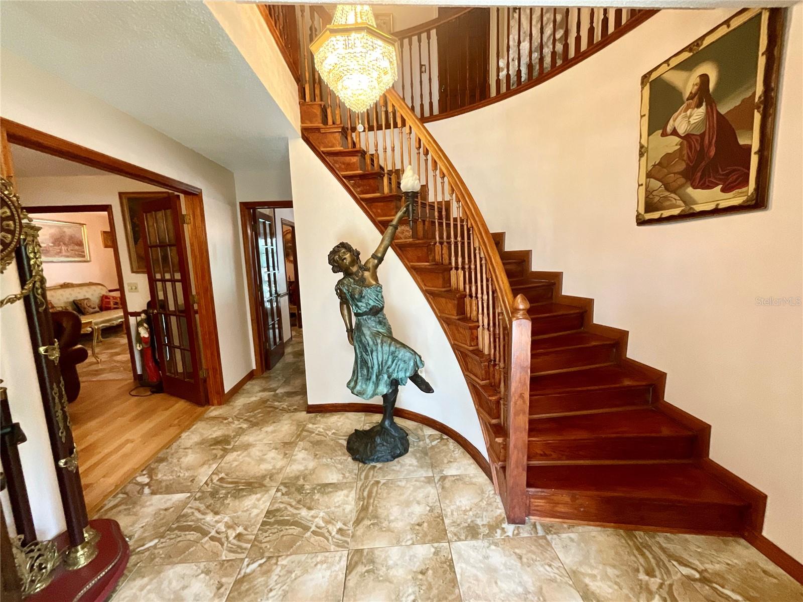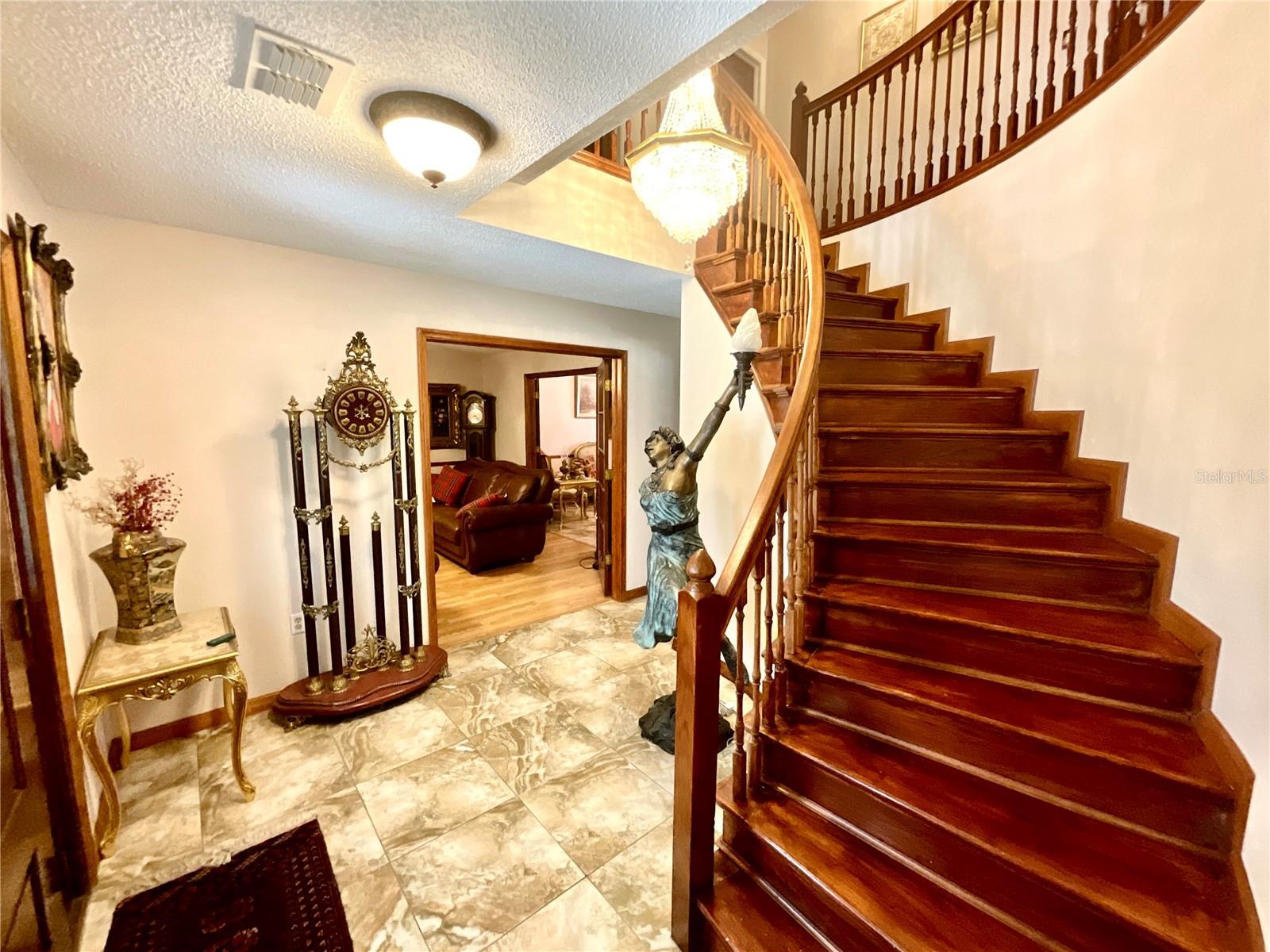 Discover Your Dream Home in Gated Crescent Forest! Step into luxury and comfort in this beautifully remodeled 4-bedroom residence in the sought-after Hidden Jewel community of Crescent Forest. Nearly 2,500 sq ft of modern living, this home has been extensively updated—featuring a brand-new kitchen and baths, refreshed pool pavers, two new AC units, a pool heater (all installed in 2020), and a roof replacement in 2018. Nestled on over 1/3 acre of lush, shaded land with majestic oaks, this property backs up to the community park and lake, offering serene views and easy access to tennis and basketball courts. The winding, tree-lined streets of Crescent Forest showcase custom-built homes with unique charm—just steps from your door. Inside, a grand foyer with a winding wood staircase welcomes you. Entertain in the spacious family room with a cozy wood-burning fireplace, or host elegant dinner parties in the formal dining room that flows into a chef’s kitchen—perfect for culinary creativity. All bedrooms are located on the second floor, including a grand primary suite with a luxurious bathroom featuring a garden tub, separate shower, and walk-in closet. The three additional bedrooms are ideal for a growing family. Outdoors, enjoy the 14x28 brick paver pool and lanai—perfect for entertaining—plus a large hot tub for year-round relaxation. The fenced, landscaped backyard ensures privacy and tranquility. Located minutes from the courthouse, new VA Center, and vibrant downtown Main Street, this home offers convenience and lifestyle. Schedule your private showing today and experience the unique charm of Crescent Forest—where luxury meets location!