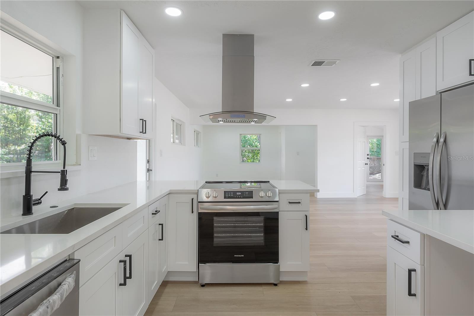Welcome Home to your own private piece of Old Florida—nestled along the banks of the Cotee River in one of New Port Richey’s most peaceful and established neighborhoods. Set at the end of a quiet cul-de-sac and just minutes from the vibrant, historic downtown district, this beautifully renovated five-bedroom, four-and-a-half-bath home offers over 3,800 square feet of flexible living space on an oversized, oak-shaded lot spanning more than half an acre. With direct river access and a layout designed for comfort and connection, this is the ultimate setting for laid-back luxury living. Inside, the home features a thoughtful, two-story layout with room for everyone. The main level offers two spacious bedroom suites, each with its own updated en suite bathroom. One of the suites opens directly to a large shared balcony that also connects to the main living area—a peaceful spot to take in river breezes and leafy views from above. The open living and dining areas flow easily together, creating an airy, light-filled atmosphere that’s perfect for both daily living and entertaining. The kitchen has been completely remodeled with shaker cabinetry, sleek countertops, and stainless steel appliances, offering plenty of prep space and storage. Whether you're cooking for one or hosting the whole crew, this kitchen is equal parts beautiful and functional. Downstairs, the home continues to impress with three additional bedrooms, two full bathrooms, and multiple flexible living spaces that can easily serve as a media room, game room, home gym, guest quarters, or even a private in-law suite. With its own separate entry and an easy flow to the backyard, the lower level is perfectly suited for multi-generational living or long-term guests. Outside is where the lifestyle really takes over. The backyard feels more like a private park, framed by mature trees, swaying palms, and lush greenery. Spend your mornings fishing from the riverbank or your afternoons napping in a hammock under the oaks. A screened-in lanai provides a shaded, bug-free zone to relax or entertain, and there’s plenty of room to add a pool, fire pit, or garden if you choose. With a private boat launch right on the property and deep-water Gulf access just 45 minutes downstream, the only question is: what kind of boat will you keep in your backyard? There’s also covered storage for your boat or extra vehicles, giving you everything you need for a true Florida waterfront lifestyle. This home is just a short walk to two nearby city parks and a quick drive or golf cart ride into downtown New Port Richey, where you’ll find an eclectic mix of restaurants, breweries, boutiques, and community events along the riverfront. With no HOA, an oversized lot, and a fully updated interior and exterior, this is a rare opportunity to own a piece of the Cotee River lifestyle—private, peaceful, and only getting better with time. Come see for yourself what life on the river can really look like. This one is more than a home—it’s an experience.