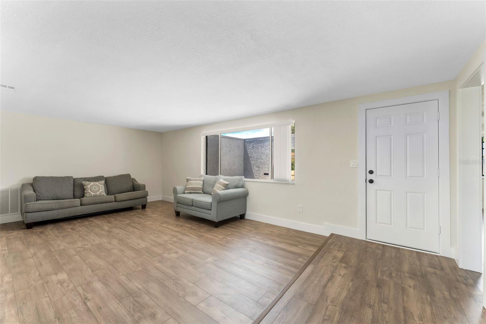 Seller will help with closing Costs! NEW ROOF ALERT & A NEW SCREEN PORCH Move-in ready waterfront gem! This fully remodeled 2-bedroom, 2.5-bath home features a spacious layout with tile flooring throughout, a bright kitchen with open family and dining areas, and a large Florida room with serene canal views. Enjoy low-maintenance living with a newer roof, updated finishes, and no HOA or CDD fees. The 1-car garage includes laundry hookups, and the oversized driveway provides extra parking. Located in a non-flood zone (X500) with public water and sewer. Convenient to shopping, beaches, and parks — this is Florida living at its best! Easy to convert into a 3-bedroom layout if desired.