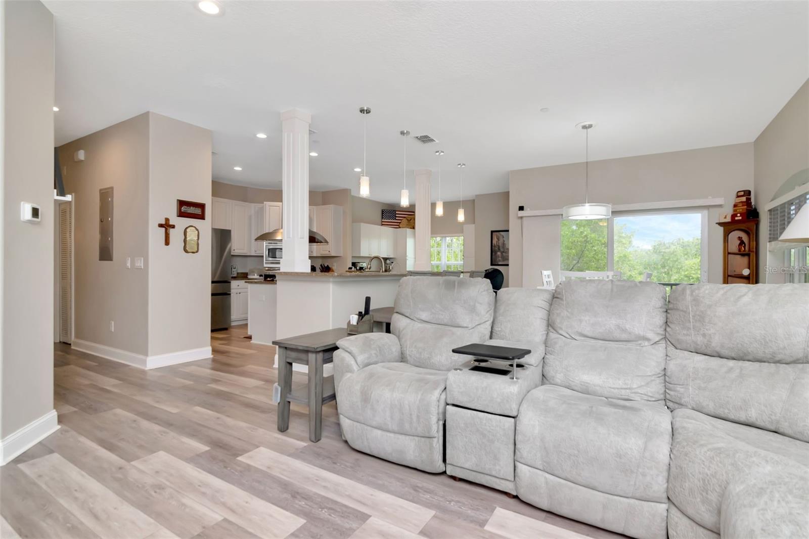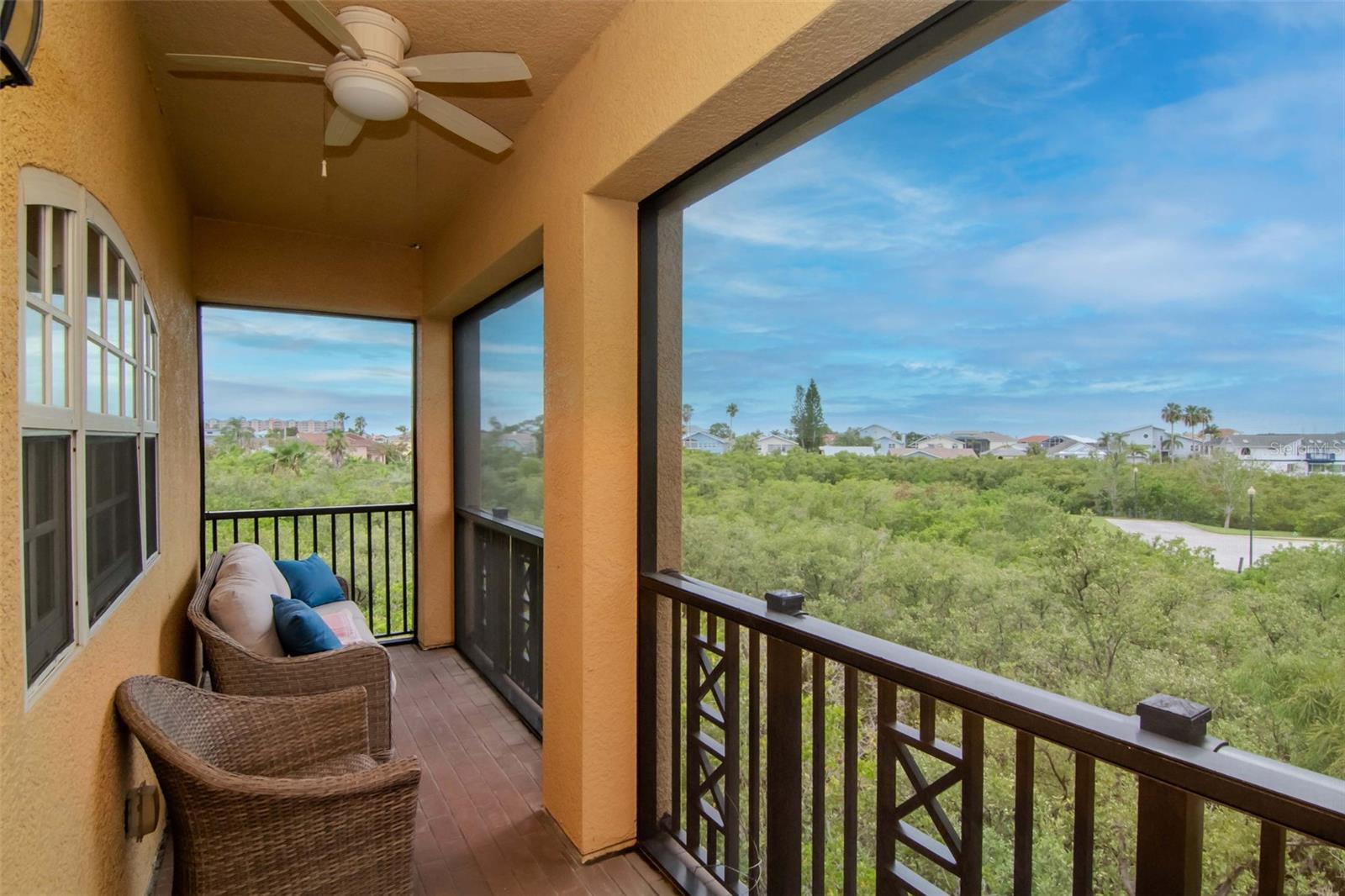 UPDATE !! Assumable Mortgage with a rate of 4.5!!! Welcome to this stunning 3-bedroom, 3-bathroom townhome boasting 2,510 sq ft of beautifully updated living space, nestled in the desirable and growing community of The Reserves of Sea Forest, within Gulf Landings. Enjoy true Florida resort-style living with access to premium amenities including a private boat ramp, day docks, tennis courts, and a waterfront clubhouse complete with a heated pool and spa. This townhome would also be an amazing vacation home or rental investment, short term allowed! This townhome also includes membership to the exclusive Gulf Harbors Private Beach—just a breezy golf cart ride away—offering soft sand, sunset views, and the ultimate coastal escape. Inside, you’ll find an array of recent upgrades: luxury vinyl plank flooring, updated lighting, LED can lights, and updated guest bath. The kitchen features bright cabinetry, granite countertops, a natural gas cooktop on a center island, convection oven, new refrigerator, newer dishwasher, and a custom coffee bar with adjacent pantry. The open-concept kitchen flows seamlessly into a spacious living room with a cozy gas fireplace, floating shelves, and a mounted 75” TV. Step outside to a fully screened wrap-around balcony—ideal for alfresco dining and relaxation. Tinted windows and screened patios enhance outdoor enjoyment and energy efficiency. Upstairs, the expansive primary suite offers a gas fireplace, private screened balcony, upgraded walk-in closet, and a spa-like ensuite with split vanities, granite countertops, a whirlpool tub, and a separate shower. A spacious secondary bedroom features its own ensuite and walk-in closet, with laundry conveniently located between both rooms. The third bedroom—currently used as an office—is located on the main floor alongside a full guest bath. The home includes three oversized storage closets designed to accommodate a future elevator (electrical panel in place), plus a massive two-car garage with workspace. (Workbench and built-in storage are negotiable), from garage you have access to a large, screened patio ideal for grilling and entertaining. Enjoy peace of mind with newer systems: main floor A/C (2023), third floor A/C (2024), and gas water heater (2022). HOA covers exterior maintenance, roof, flood and building insurance, landscaping, reserves, trash, common area taxes, maintenance of the boat ramp/docks, waterfront clubhouse, pool, spa, and tennis courts. Live a low-maintenance, high-lifestyle existence, in this golf cart friendly community, enjoying your evenings spent cruising to the private beach or down Main Street to enjoy all the charm and culture of New Port Richey. So Schedule your showing today!