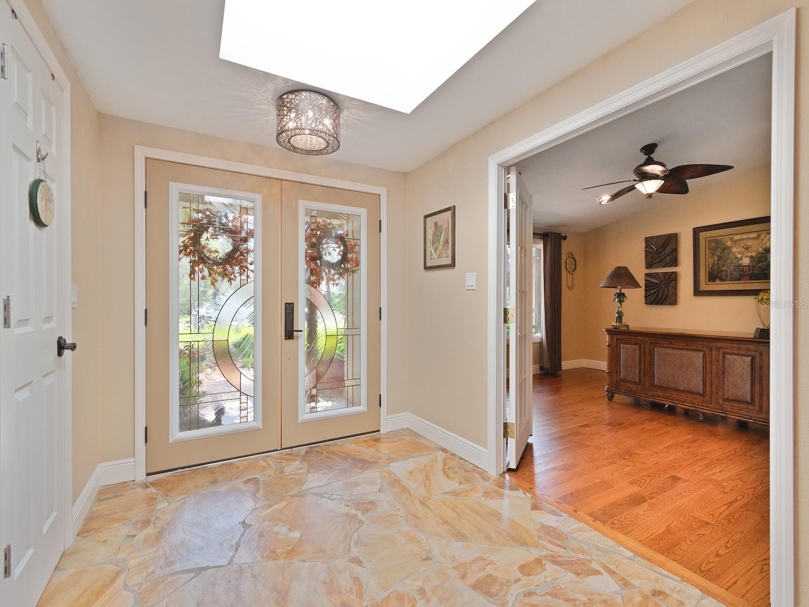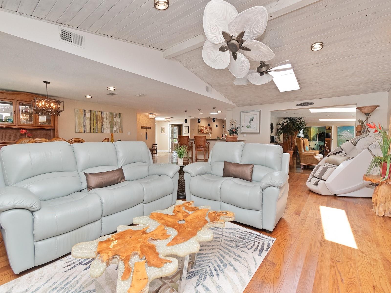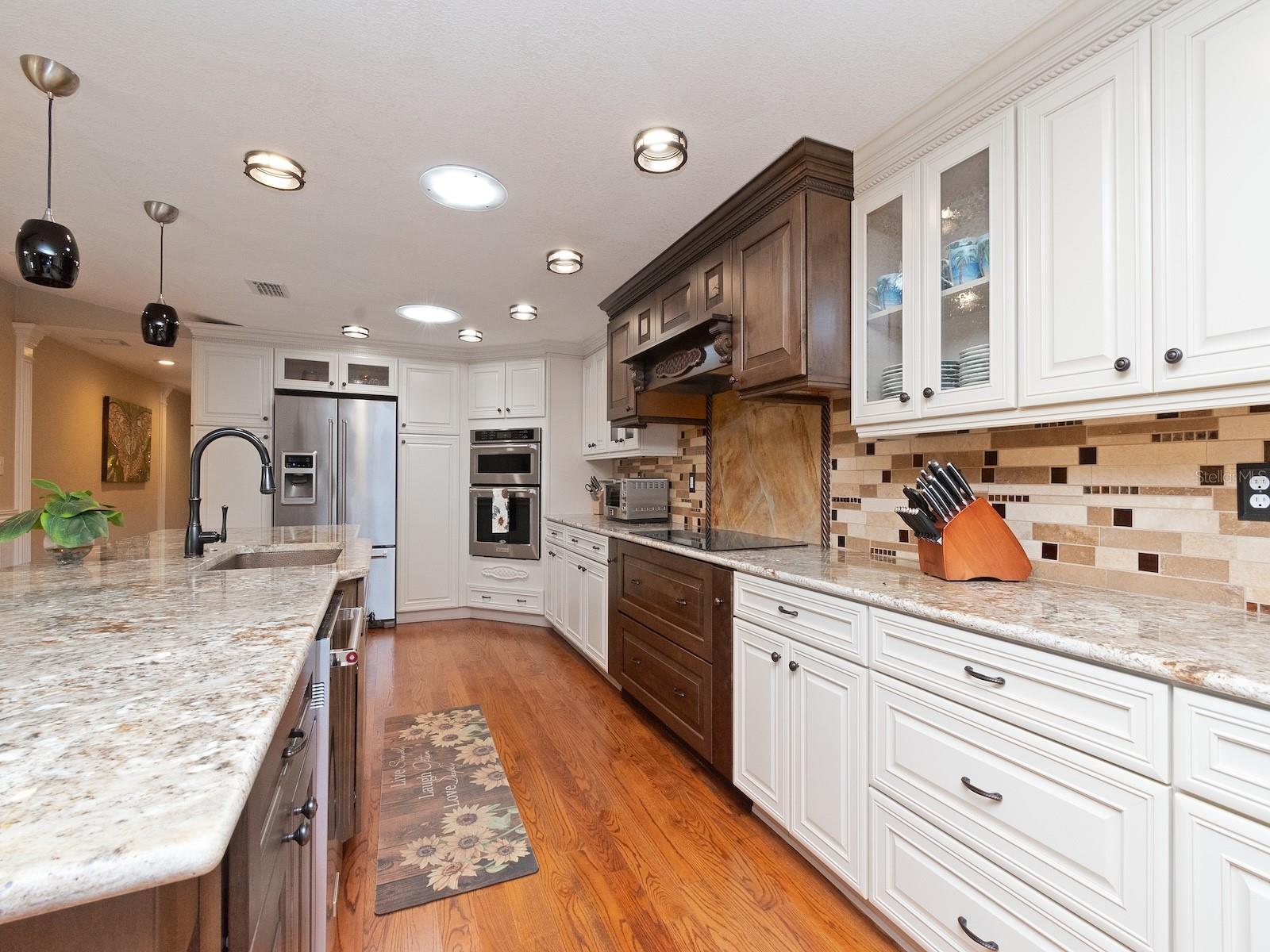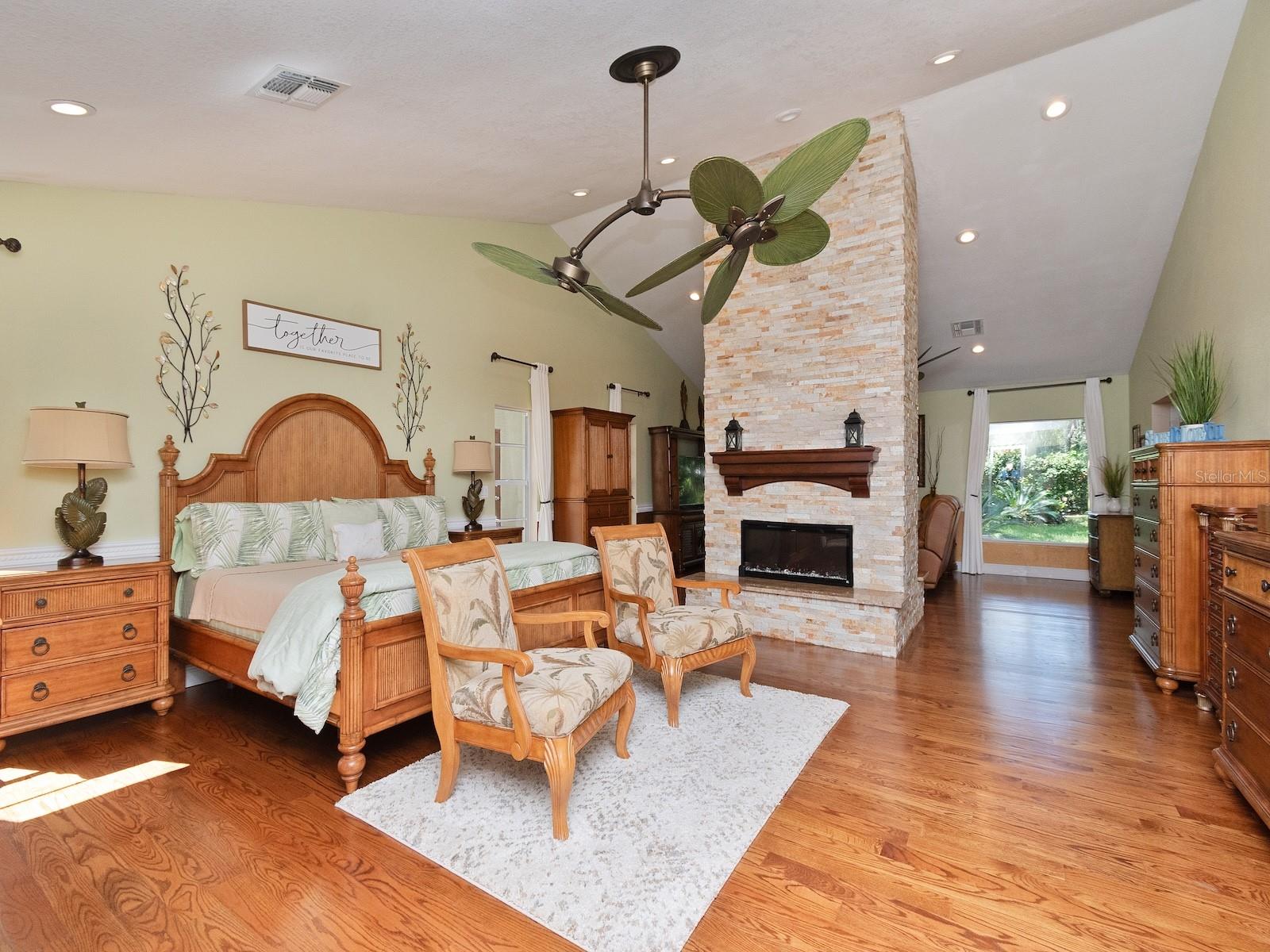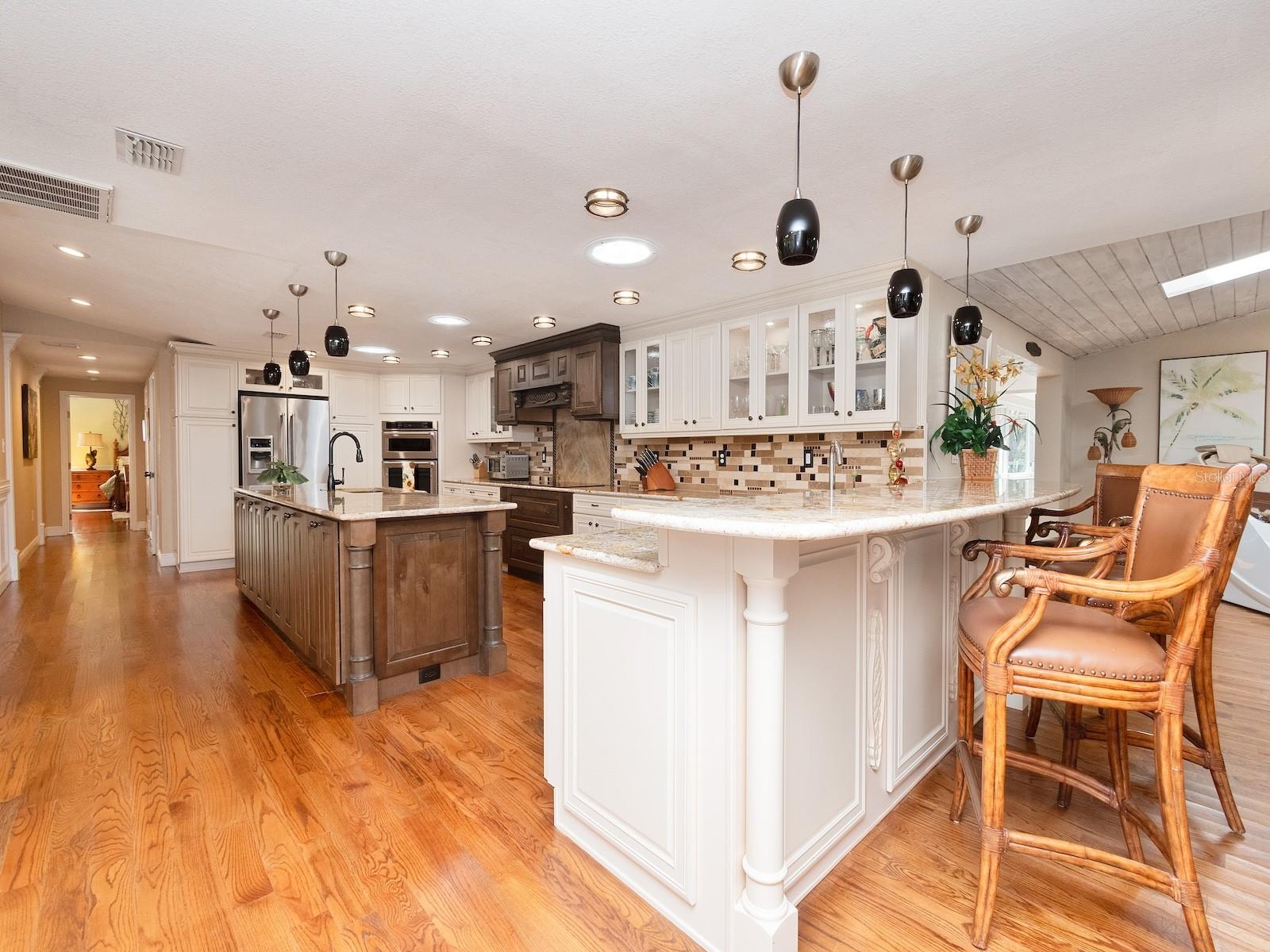 Significant price decrease!!!! PREPARED TO BE IMPRESSED. This home is for those seeking luxury finishes and abundant space for Florida living and relaxation. Located towards the end of a charming winding street, the 4/3.5 split & open floorplan features solid hardwood floors throughout, exotic granite countertops, matching KitchenAid appliances, cabinetry with sliding pull-out drawers and soft-close doors, an antimicrobial copper kitchen sink, a fun martini-shaped bar sink, an 800 s.f. master bedroom with dual-sided stacked stone fireplace, a master bath with rainfall shower, deep soaking tub and hands free commode/bidet, separate his & hers closets with organizers, Carrara Marble in secondary bath, tons of closet space, an enormous flex space, a laundry room with 2 sets of washers/dryers, an additional detached 1,800 s.f. block-construction garage that can fit 4 vehicles for a total of 6 car garage + ac workshop and a park-like yard filled with Live Oaks, Magnolia, and several kinds of Palm Trees. The 1.12 acre lot is quiet and private; perfect for storing boats, trailers, and rvs, and there’s plenty of room to add a swimming pool, volleyball or tennis court, children’s playset, greenhouse, chicken coops, and a horse stall. There’s room for all! Located in a top school district with lots of restaurants, shopping and grocery stores nearby. No HOA and not in a flood zone