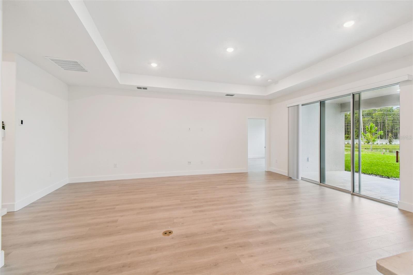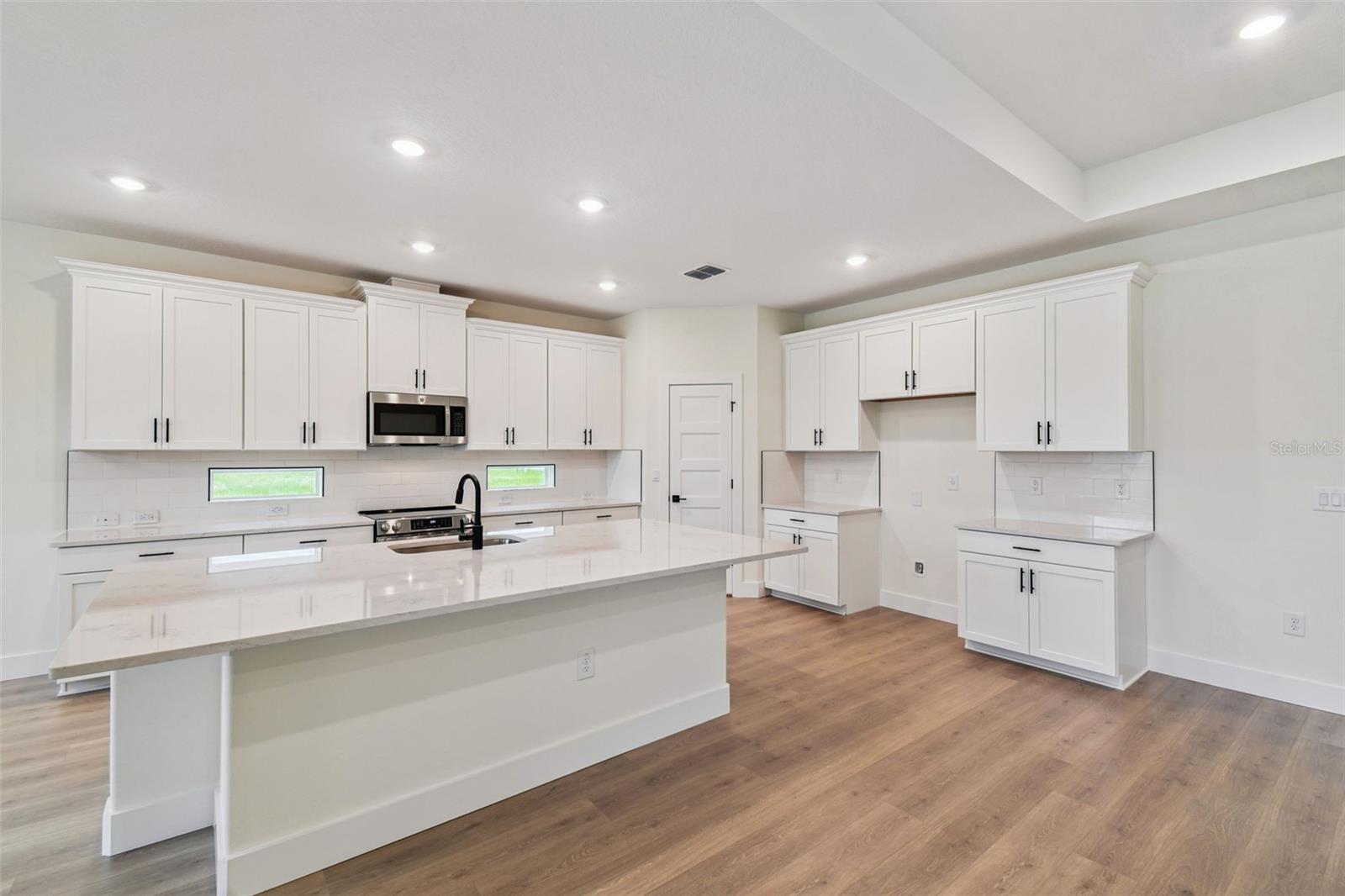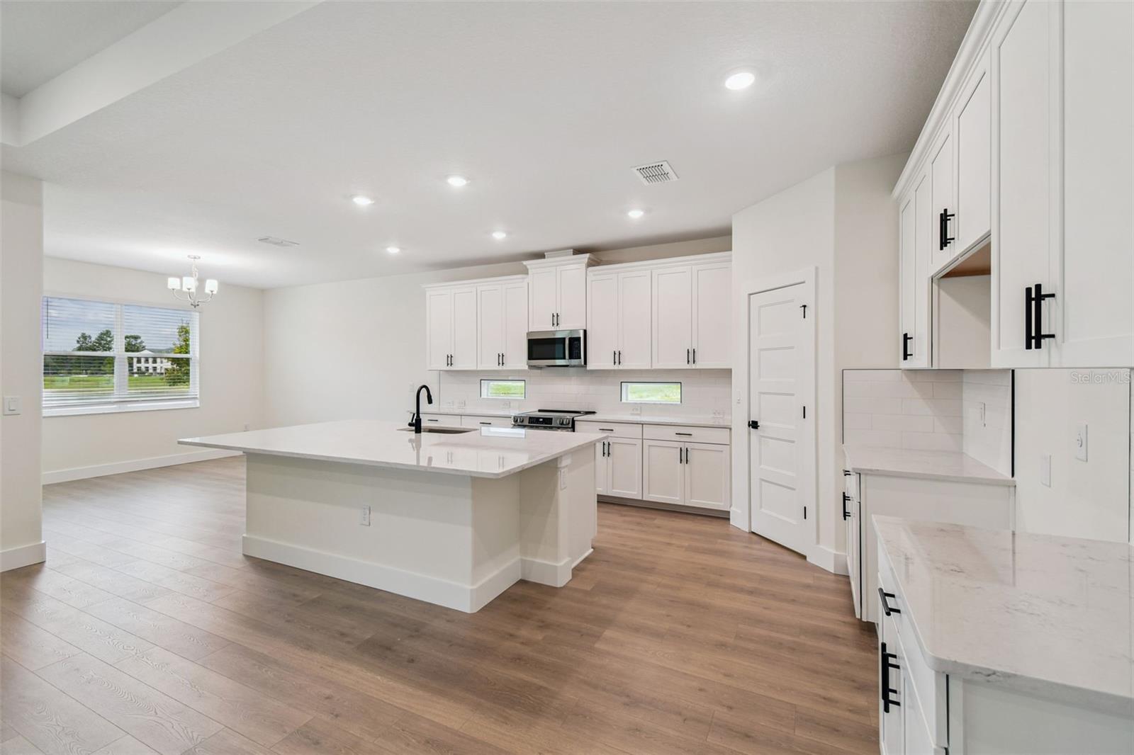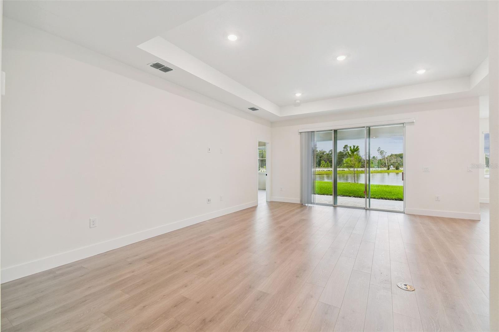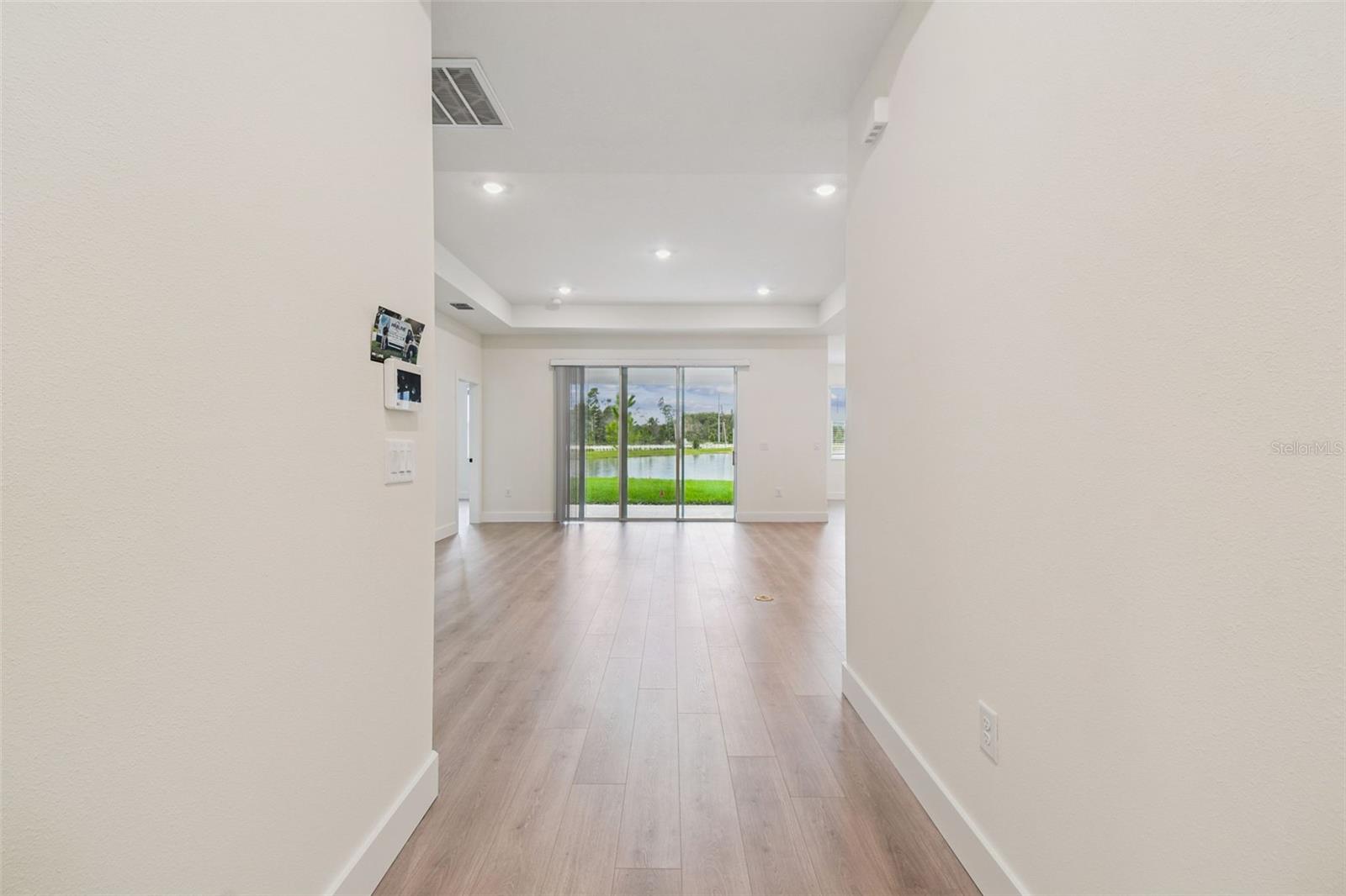New Price - Don't Miss This Opportunity! This Vitale luxury home offers exceptional curb appeal the moment you arrive on its peaceful cul-de-sac street. The exterior is highlighted by a welcoming front porch with columns, the perfect spot to relax outdoors in the evenings. The lot backs onto a serene pond, providing privacy with no rear neighbors and tranquil views right from your backyard. The Donatello, a brand-new floor plan in this exciting new community, features a spacious and open layout designed for modern living. With three bedrooms, two and a half baths, a dining room, and a large great room, the home blends comfort and style in every detail. Step inside through the front porch into a beautiful foyer with a view extending across the open living areas to the covered lanai beyond. Both the dining room and great room provide access to the lanai, creating an effortless flow for indoor-outdoor entertaining. Tray ceilings add architectural interest throughout the great room, which offers generous space for gathering with family and friends. The main living areas are finished with luxury vinyl plank flooring, while the bathrooms feature designer tile. The home showcases stylish black fixtures, LED lighting, upgraded cabinetry, and thoughtful design touches throughout. In the kitchen, a large center island with seating, ample cabinetry, granite countertops, a tiled backsplash, stainless steel appliances, and a walk-in pantry make it as functional as it is elegant. The resort-style owner’s suite is a retreat of its own, with an expansive bedroom, optional tray ceiling, and an optional private door leading to the lanai. The spa-like bathroom features dual vanities, a corner soaking tub, a spacious tiled walk-in shower with glass enclosure, and a massive walk-in closet. The guest bedrooms are tucked away on one side of the home for privacy and share a full bathroom with the same elevated finishes, while a powder bath near the foyer provides added convenience for visitors. A large laundry room with storage space adds to the home’s functionality. Additional features include five-inch baseboards, luxury vinyl flooring in the main living areas, tile flooring in wet spaces, stainless steel appliances, Low-E double-pane windows, R-38 insulation, irrigation, and other energy-efficient details. With these high-end finishes and modern efficiencies, the Donatello delivers both beauty and value. This residence is part of Hidden Ridge, one of New Port Richey’s newest communities. With easy access to the Suncoast Parkway from Ridge Road, commuting to Tampa is a breeze. The neighborhood is conveniently located just west of Decubellis Road, close to shopping, dining, medical centers, golf courses, and both state and community parks. As the area continues to grow with new construction and commercial centers, now is the perfect time to invest in this enclave community.