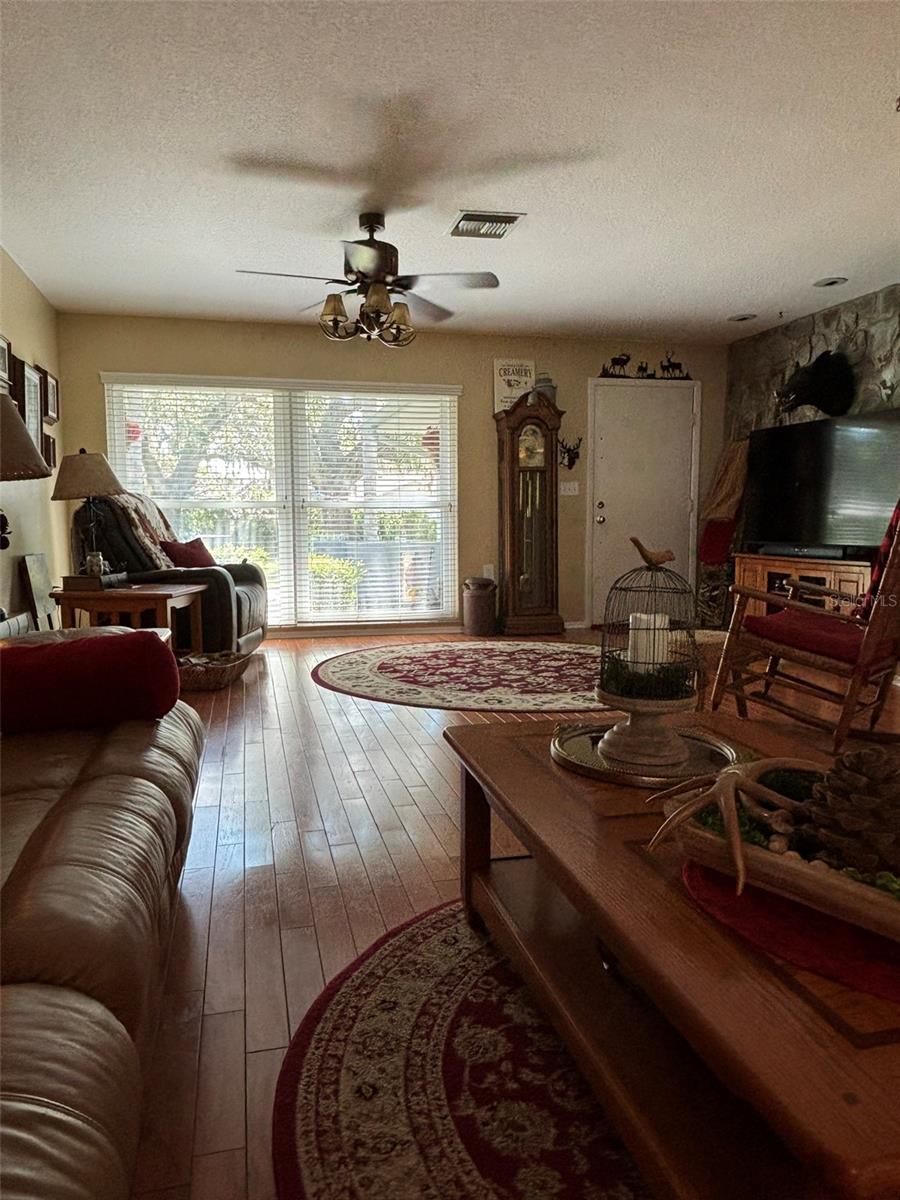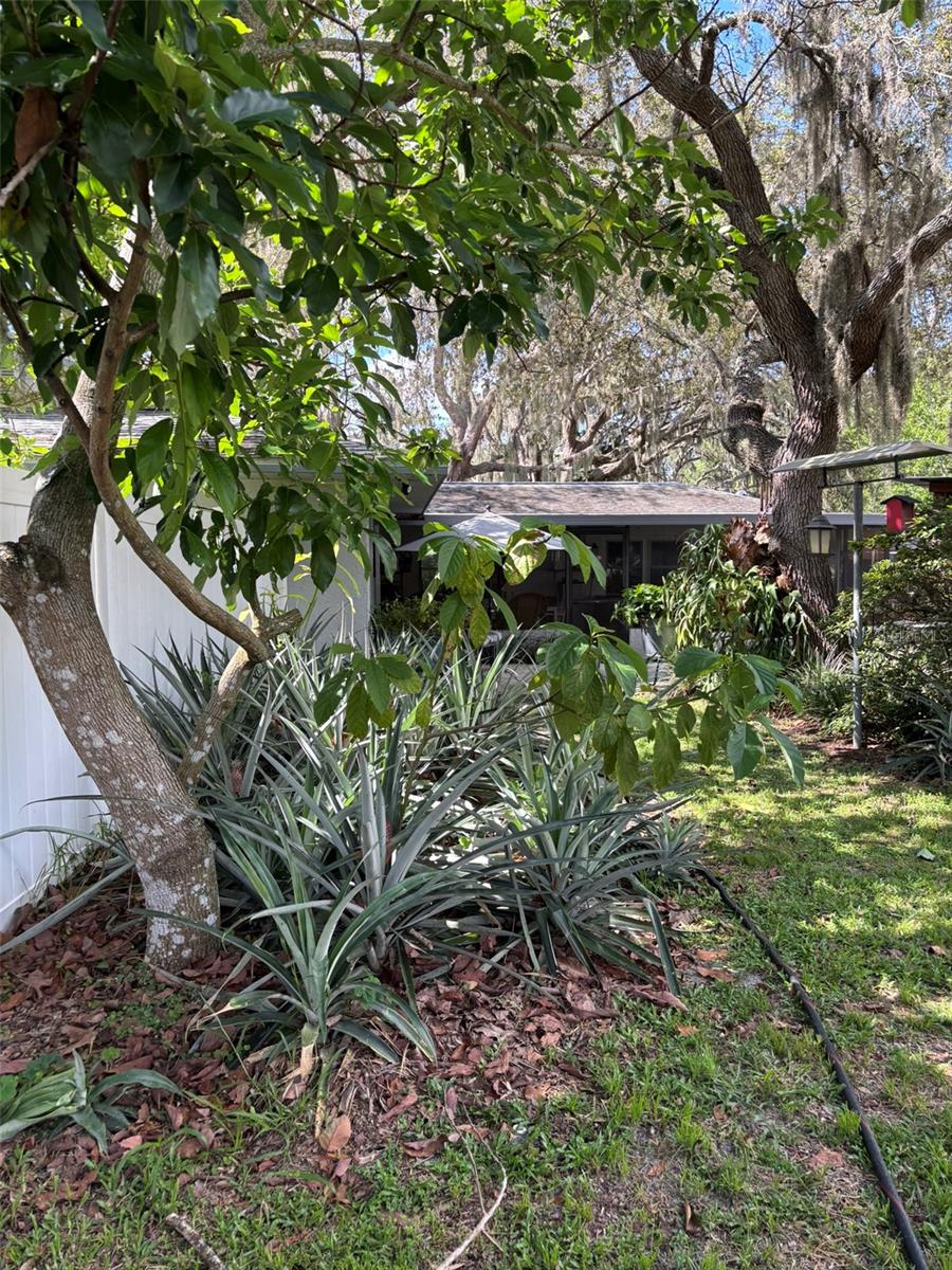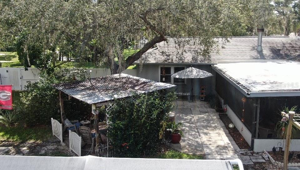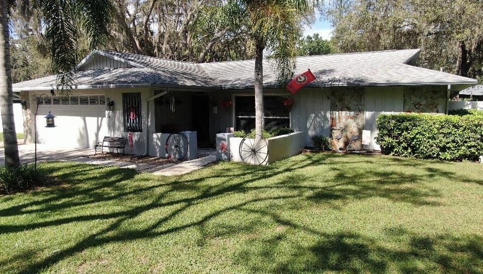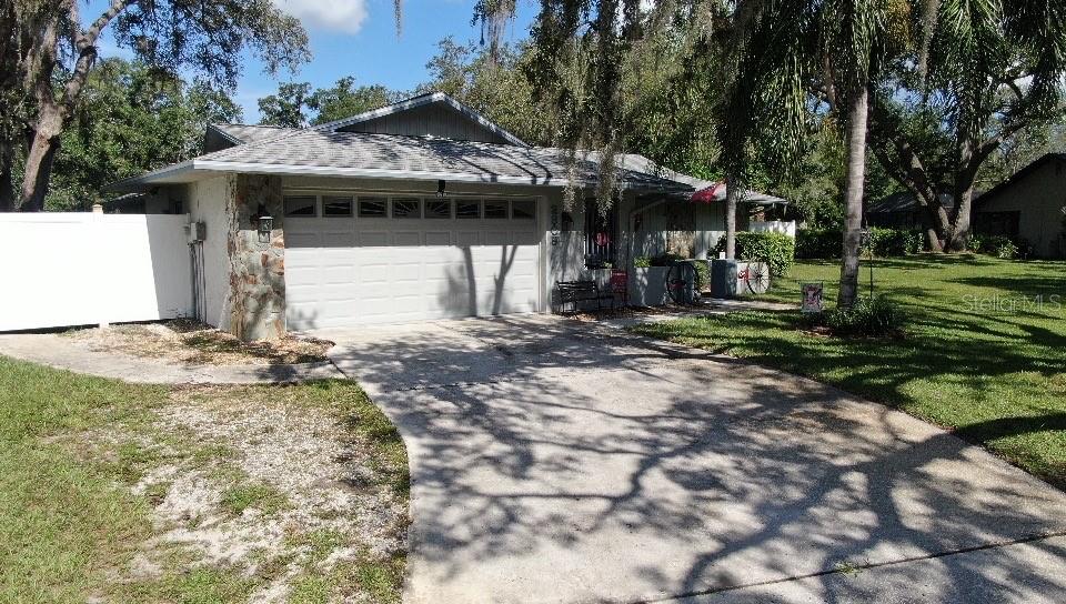 Presenting a stunning home now available in the desirable Woodbend Subdivision. Residents of this community often put down roots, creating a lasting sense of belonging. This forever home is situated on 0.55 acres of land, securely positioned in a non-flood zone. As you enter through the generous driveway, offering ample parking, you are welcomed by a charming front porch, perfect for enjoying tranquil mornings or relaxing evenings. Stepping inside, you are greeted by a warm and inviting ambiance. The living room features hardwood flooring, providing plenty of space for comfort and entertaining, complemented by a striking double-sided fireplace that adds a unique flair. Each bedroom is equipped with its own walk-in closet and private bathroom, showcasing oversized vanities and custom countertops. The master bathroom offers dual access, with entries from both the master suite and the hallway. The farmhouse-style kitchen boasts granite countertops and includes appliances, along with an island/breakfast bar ideal for casual dining and entertaining. The adjoining dining room provides additional space and seating, all while enjoying the view of the double-sided fireplace. A pantry is available for storing non-perishable items, and the two-car garage features a convenient entrance that leads to a laundry/mudroom. From the living room or dining area, sliding doors provide access to a delightful Floridian back porch, creating an ideal space for relaxation or hosting gatherings. The back porch opens to your personal oasis, where you can immerse yourself in nature, cultivate a garden, or grill under the gazebo, surrounded by an array of pineapple bushes and banana trees, offering the joy of homegrown organic fruits. The backyard includes three sheds: a 17'x22' workshop with electrical access (110–220 volts, lighting, and concrete floor), a 12'x22' storage/shop (electric 110v, lighting, concrete, and safety flooring), and a 10'x10' lawn equipment storage shed (electric 110v, one light). The property is equipped with a well pump sprinkler system featuring ten zones and is enclosed by a fence with two access vinyl fence gates. Recent updates include a full roof replacement completed on January 21, 2020; popcorn ceiling removal on September 16, 2020; a new HVAC system installed on April 15, 2021; new windows added in February 2022; a new water heater on August 27, 2023; septic tank servicing on February 7, 2025; and a four-point inspection conducted on June 23, 2025. Woodbend Subdivision is a no outlet community with only one entrance and exit, ensuring minimal through traffic and a peaceful atmosphere. Conveniently located near Seven Springs and Trinity, you enjoy easy access to essential amenities while maintaining a sense of spaciousness without overcrowding. Woodbend Subdivision HOA is Voluntary. Schedule your showing today!