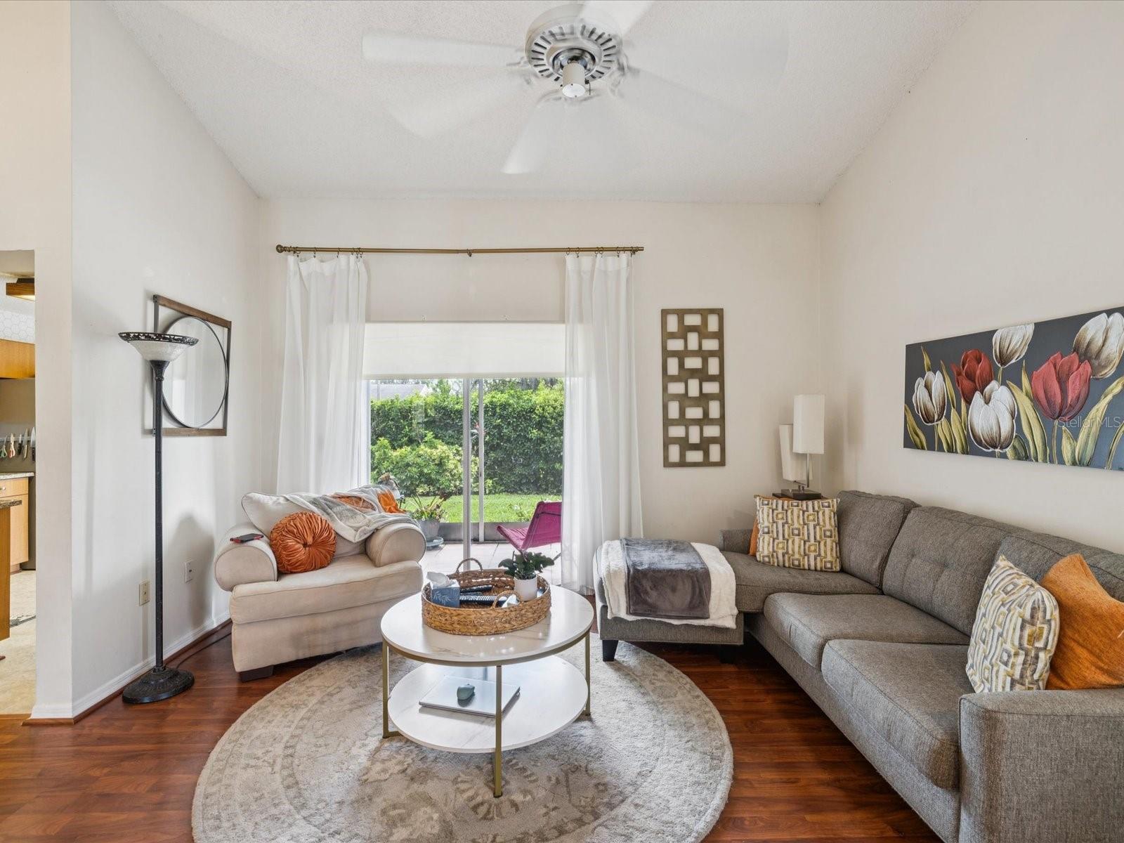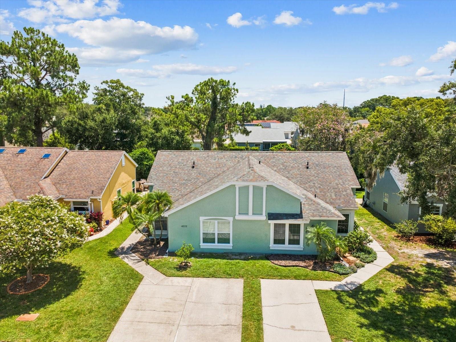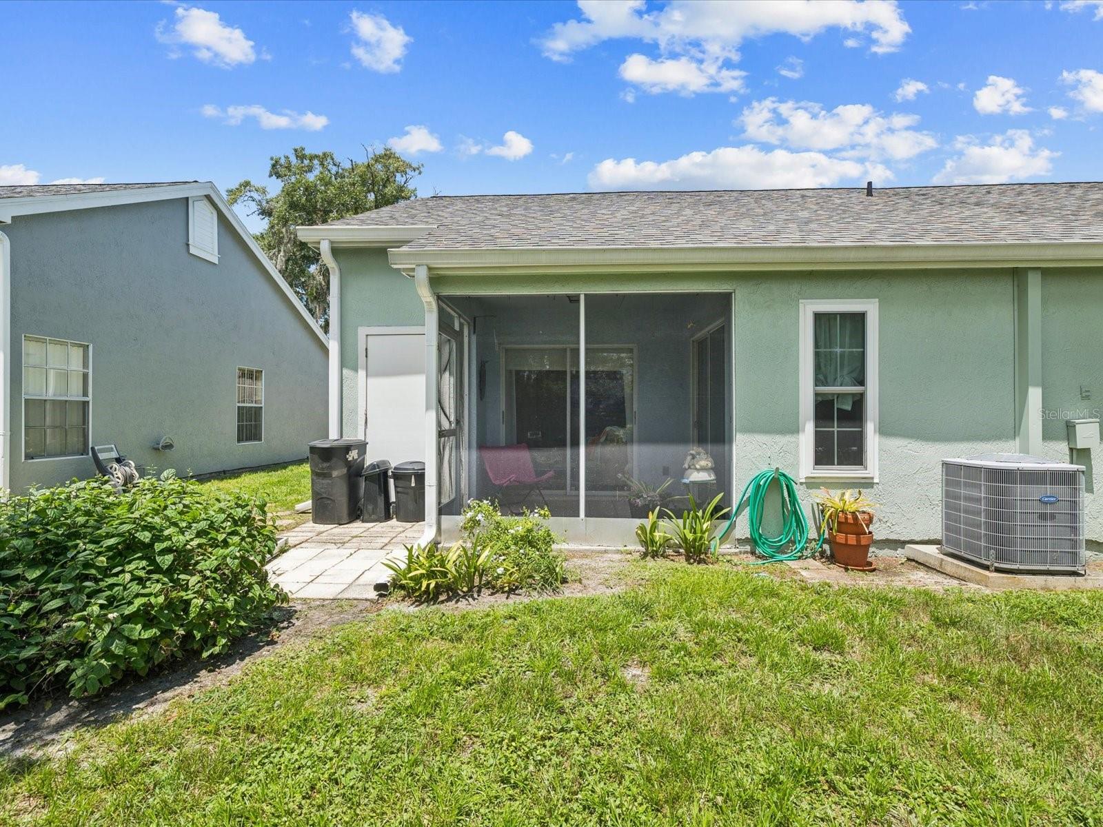 Cozy 2/2 Villa in desirable Millpond Estates in New Port Richey/Trinity area~~This unit has been updated w/newer floors, appliances, granite counters in kitchen and NEW Storm Windows~~As you enter you will find open floorplan w/Laminate Floors~~Kitchen has granite countertops, newer stainless appliances~~Master has large closet and en-suite bathroom and shower~~Guest room has large closet and directly across from the Guest Bathroom~~Laundry closet in hall as well as another storage closet~~As you exit to the screened patio to enjoy the private backyard~~Additional Storage Closet outside patio area and room for a grill~~Low HOA of $315 includes Lawn Care, Exterior Maintenance, Roof, Cable, Internet and Trash~~Millpond Community has serene ponds, quiet walking areas, pool/spa, clubhouse, fitness room, events~~The location is ideal to shopping, doctors, restaurants. Roof replaced 8-9 yrs ago. A/C 2010.