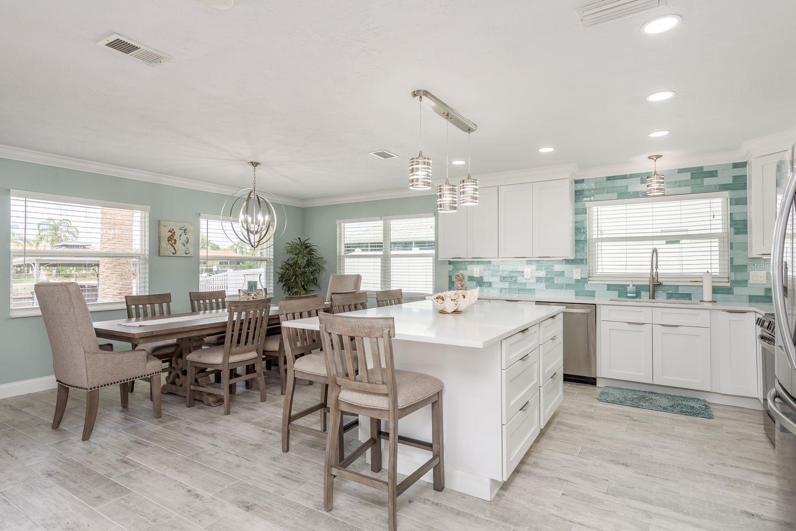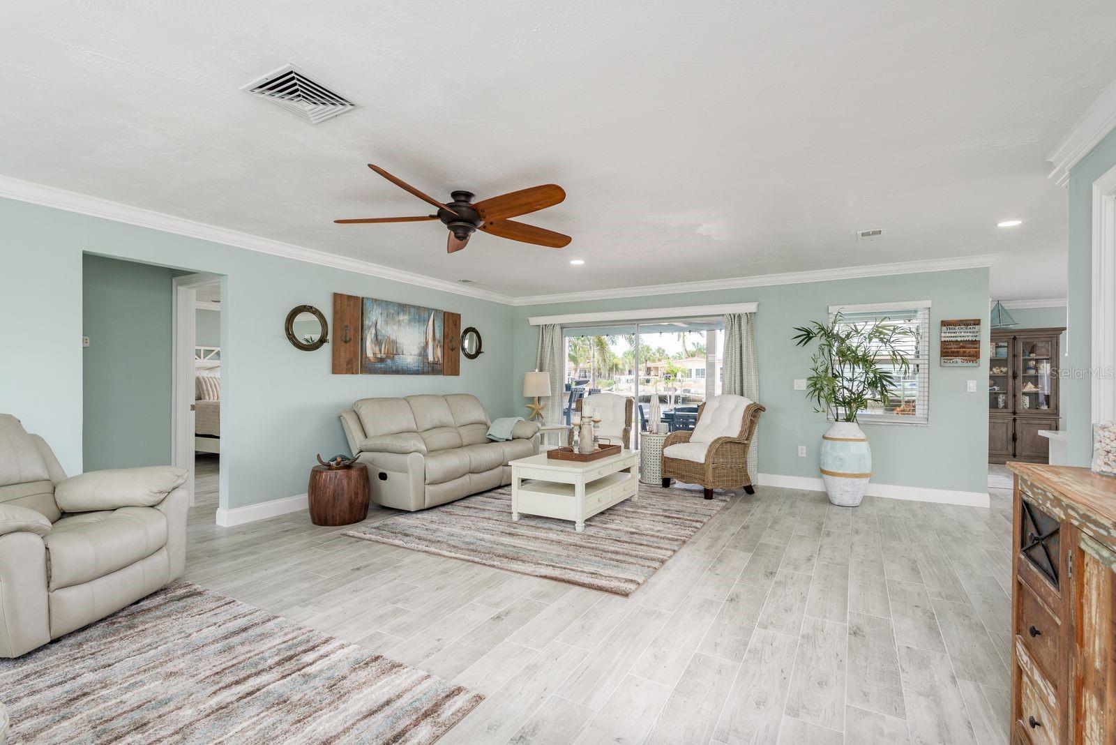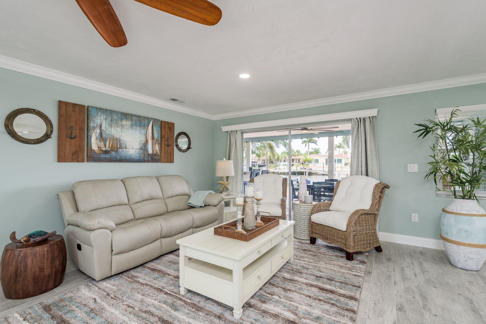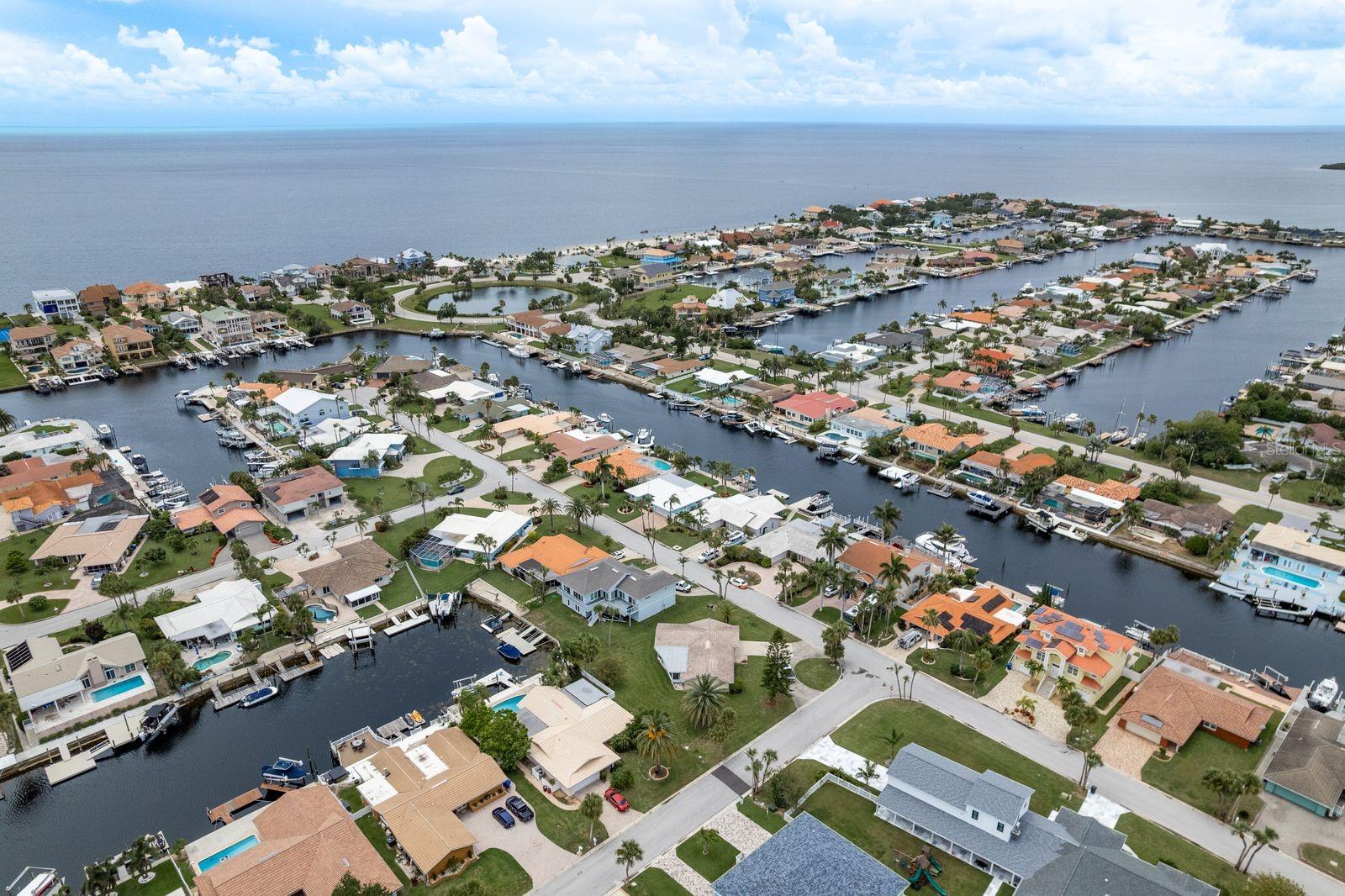 BACK ON THE MARKET WITH BRAND NEW ROOF '25. Welcome to your dream waterfront retreat at 3301 Seaway Drive, located in the highly sought-after boating community of Gulf Harbors in New Port Richey. This beautifully updated 2-bedroom, 2-bath home offers 1,640 square feet of thoughtfully designed living space on one of the widest and deepest sailboat-friendly canals in the neighborhood—just minutes to the open Gulf with no bridges to navigate. The home sits on a large lot with 75 feet of seawall, and a floating dock, 1200SF of outdoor living space and ENOUGH ROOM FOR YOUR VERY CUSTOM - POOL, making it a true boater’s paradise. Inside, the open floor plan provides privacy and functionality, while the updated kitchen features a beautiful island, quartz countertops, white cabinetry, retractable outlets and new stainless steel appliances. Luxury ceramic tile, plantation shutters, and crown molding that add comfort and style throughout. The spacious primary suite includes sliding doors leading to the bar and outdoor entertainment area, a walk-in closet, and a private bath with a step-in shower. You are going to love all the natural lighting this home has to offer. Step outside to enjoy your outdoor space, lush landscaping, and fenced yard perfect for entertaining or relaxing in the Florida sun. Recent upgrades include new baseboards, flooring throughout, quartz countertops and fixtures in bathrooms, new blown-in insulation, new pavers, freshly painted and new landscape. Gulf Harbors offers an optional private beach club just two blocks away for only $200 per year, featuring white sand, cabanas, grills, and stunning sunsets. The optional Civic Association membership ($125/year) includes access to community events, clubs, and two boat ramps. Located close to downtown New Port Richey’s shops, restaurants, Sims Park, and the scenic Cottee Riverwalk, this home offers the perfect blend of coastal charm, modern upgrades, and unbeatable location. Don’t miss your chance to live the Florida lifestyle—schedule your private showing today!