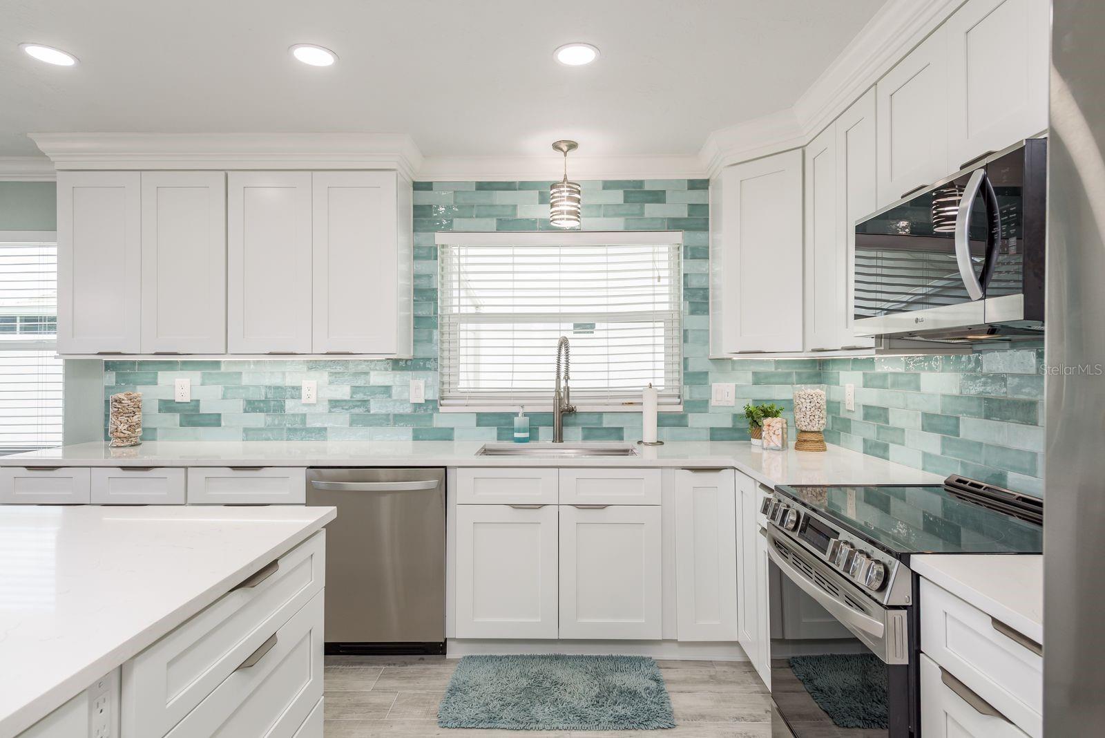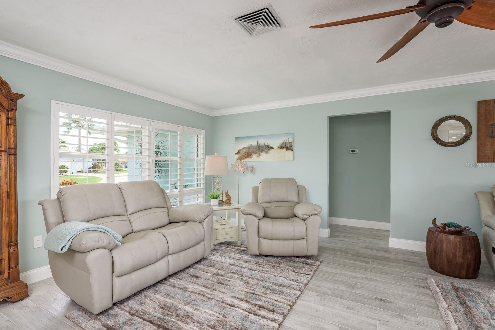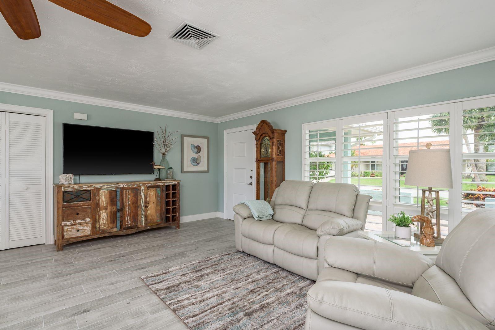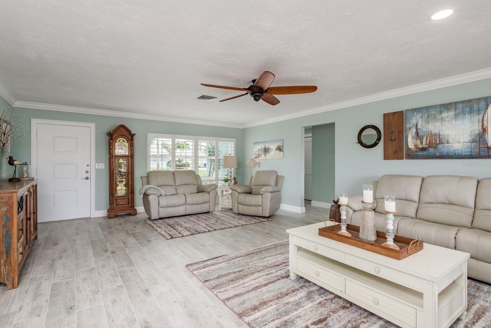 BACK ON THE MARKET WITH BRAND NEW ROOF '25. Welcome to your dream waterfront retreat at 3301 Seaway Drive, located in the highly sought-after boating community of Gulf Harbors in New Port Richey. This beautifully updated 2-bedroom, 2-bath home offers 1,640 square feet of thoughtfully designed living space on one of the widest and deepest sailboat-friendly canals in the neighborhood—just minutes to the open Gulf with no bridges to navigate. The home sits on a large lot with 75 feet of seawall, and a floating dock, 1200SF of outdoor living space and ENOUGH ROOM FOR YOUR VERY CUSTOM - POOL, making it a true boater’s paradise. Inside, the open floor plan provides privacy and functionality, while the updated kitchen features a beautiful island, quartz countertops, white cabinetry, retractable outlets and new stainless steel appliances. Luxury ceramic tile, plantation shutters, and crown molding that add comfort and style throughout. The spacious primary suite includes sliding doors leading to the bar and outdoor entertainment area, a walk-in closet, and a private bath with a step-in shower. You are going to love all the natural lighting this home has to offer. Step outside to enjoy your outdoor space, lush landscaping, and fenced yard perfect for entertaining or relaxing in the Florida sun. Recent upgrades include new baseboards, flooring throughout, quartz countertops and fixtures in bathrooms, new blown-in insulation, new pavers, freshly painted and new landscape. Gulf Harbors offers an optional private beach club just two blocks away for only $200 per year, featuring white sand, cabanas, grills, and stunning sunsets. The optional Civic Association membership ($125/year) includes access to community events, clubs, and two boat ramps. Located close to downtown New Port Richey’s shops, restaurants, Sims Park, and the scenic Cottee Riverwalk, this home offers the perfect blend of coastal charm, modern upgrades, and unbeatable location. Don’t miss your chance to live the Florida lifestyle—schedule your private showing today!