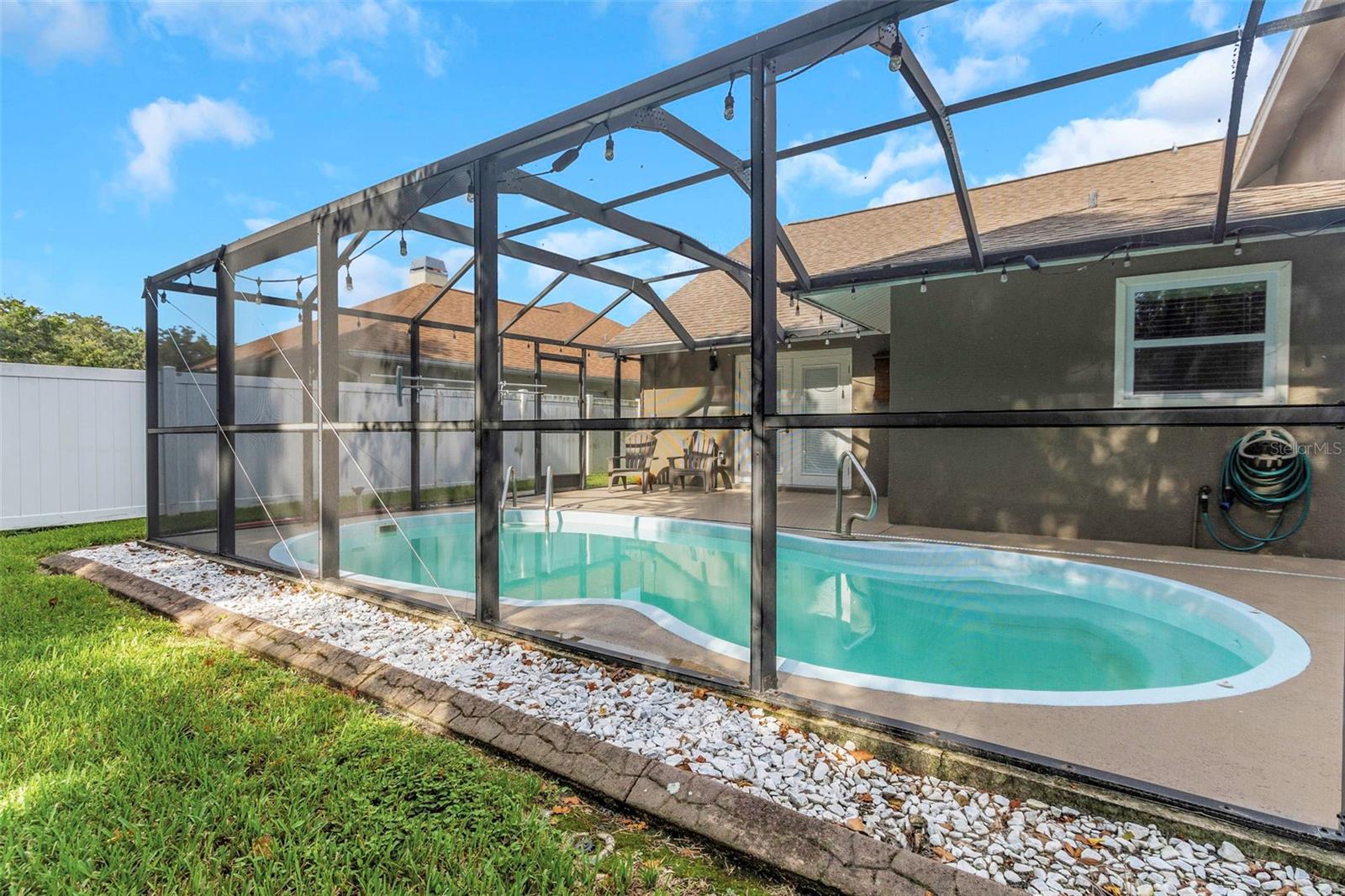 Welcome to 6007 Fall River Dr, a meticulously maintained 4-bedroom, 2.5-bathroom home nestled in the heart of New Port Richey’s desirable community of River Crossing. Situated on a serene conservation lot, this move-in ready property offers the perfect blend of comfort, privacy, and modern upgrades. Step inside to find a spacious and inviting layout ideal for both everyday living and entertaining. The bright, open floor plan features separate living and family rooms, a well-appointed kitchen with ample cabinet space, and a dedicated dining area overlooking the pool and wooded backdrop. Enjoy peace of mind with recent upgrades, including a new roof, new pool equipment, and new pool cage screening, ensuring years of worry-free outdoor enjoyment. The sparkling screened-in pool and lanai provide the ultimate Florida lifestyle—perfect for relaxing or hosting guests year-round. All four bedrooms are generously sized, with the primary suite offering a walk-in closet and an en-suite bath with dual sinks, a soaking tub, and a separate shower. Located in a quiet, well-kept neighborhood with no rear neighbors, this home is just minutes from shopping, restaurants, schools, parks, and medical facilities. Don’t miss your chance to own this updated, private oasis in one of New Port Richey’s most sought-after areas. Schedule your private tour today!