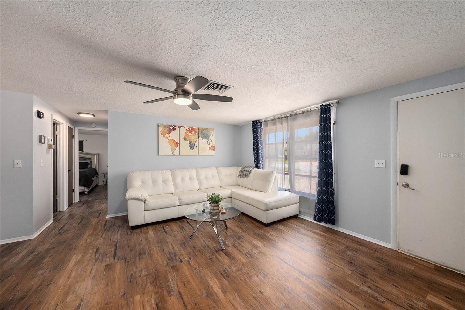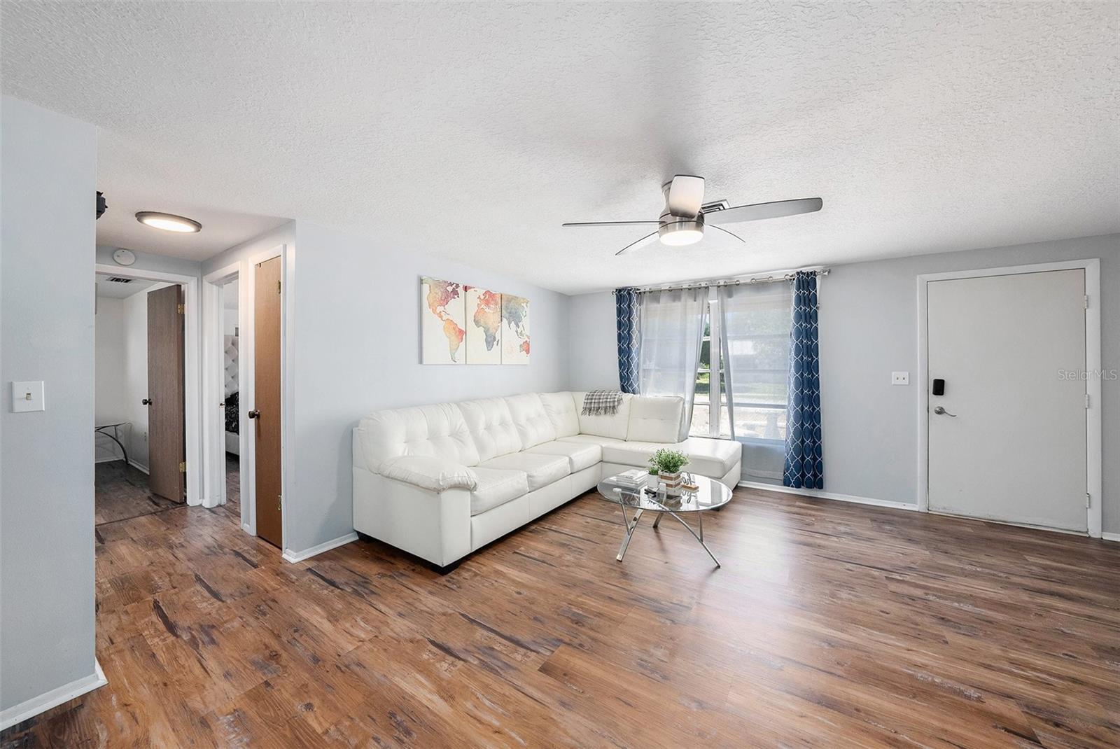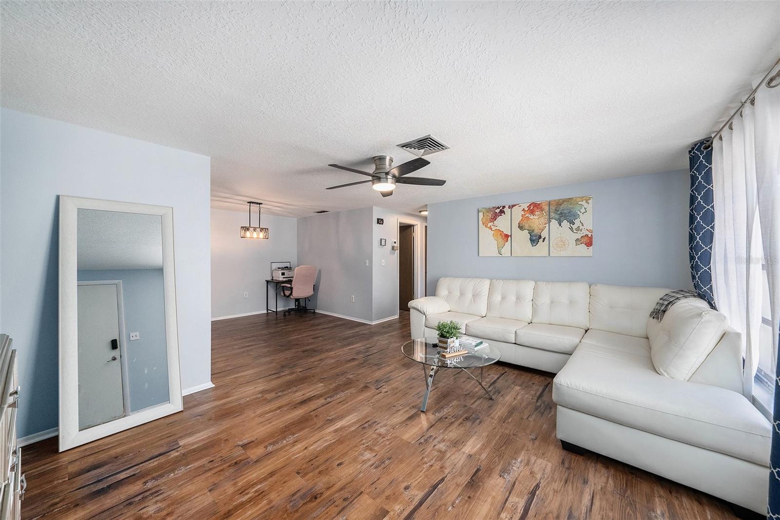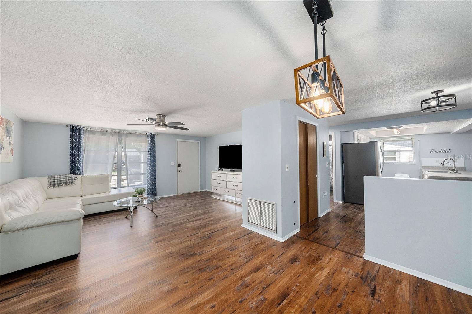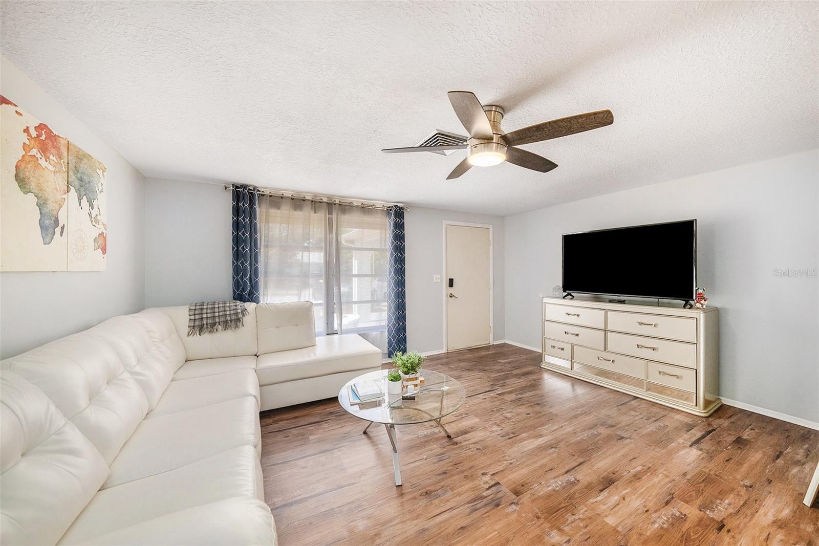 This charming 2-bedroom, 2-bath home with a 1-car garage offers more than meets the eye. It features an additional flex space perfect for a home office, creative studio, playroom, or even a guest room a space that adapts to your lifestyle. Located in a quiet neighborhood with no HOA, this home is move-in ready and beautifully updated, featuring a new AC system and water heater (2024), and a roof replaced in 2018, which still has plenty of life remaining. You'll love the modern kitchen with stainless steel appliances, updated countertops, and stylish backsplash. The flooring throughout is both elegant and easy to maintain. Step outside to enjoy a screened-in lanai and a fully fenced backyard - ideal for relaxing, entertaining, or letting pets roam freely and safely. Located in Flood Zone X - meaning NO FLOOD insurance required and just minutes from shopping, dining, and top-rated schools, this home presents a fantastic opportunity for first-time buyers, families, retirees, or savvy investors.