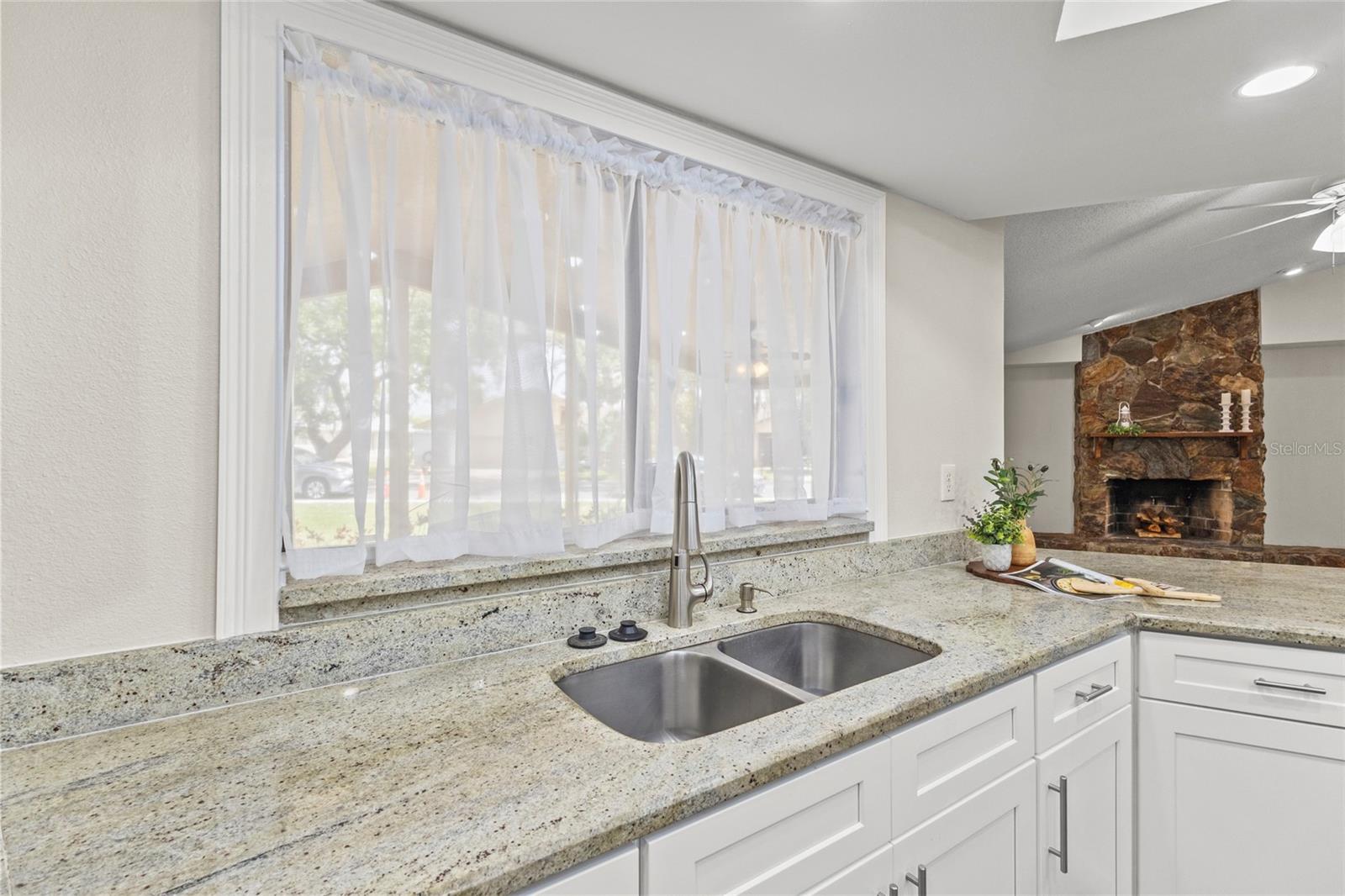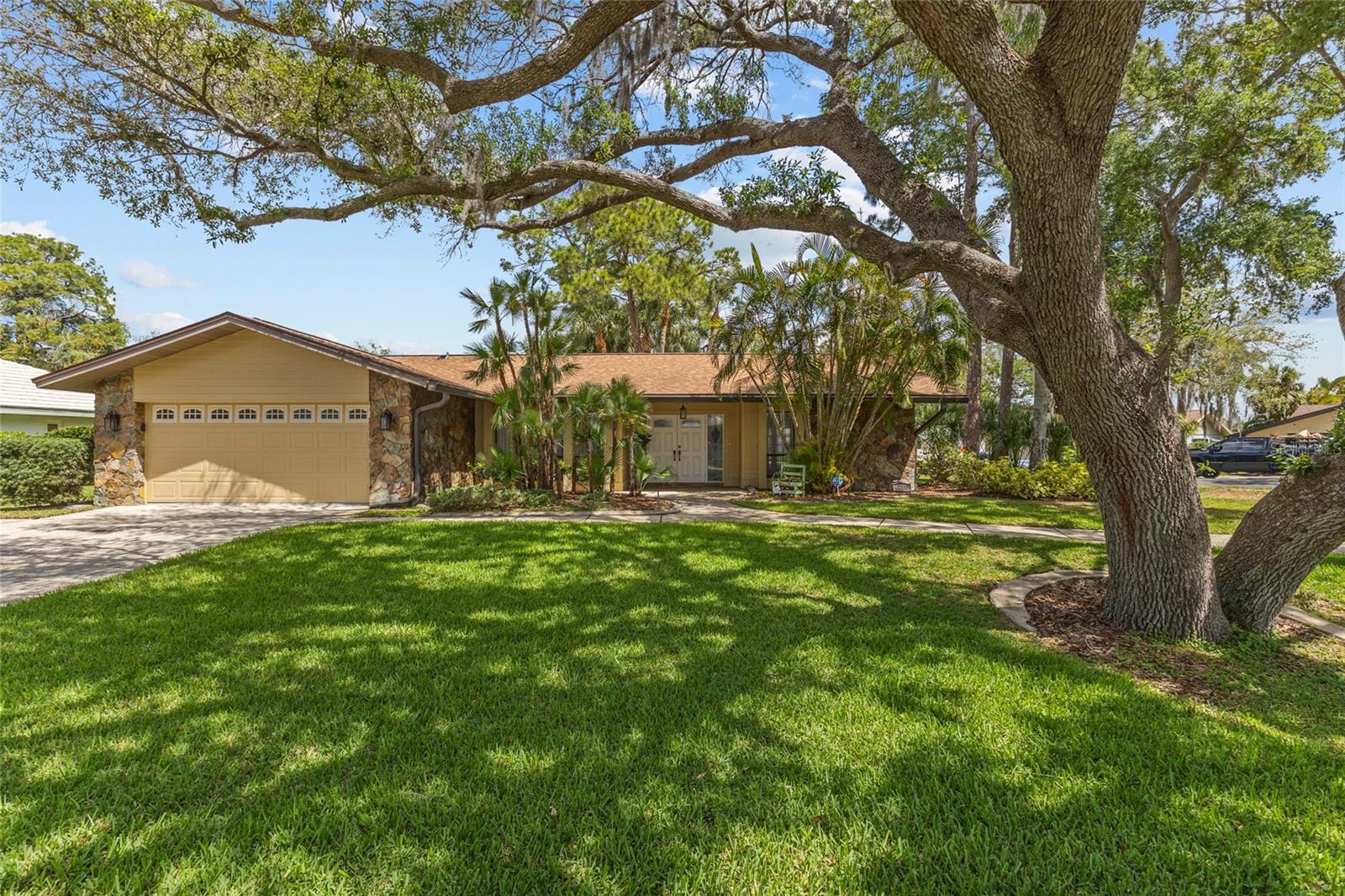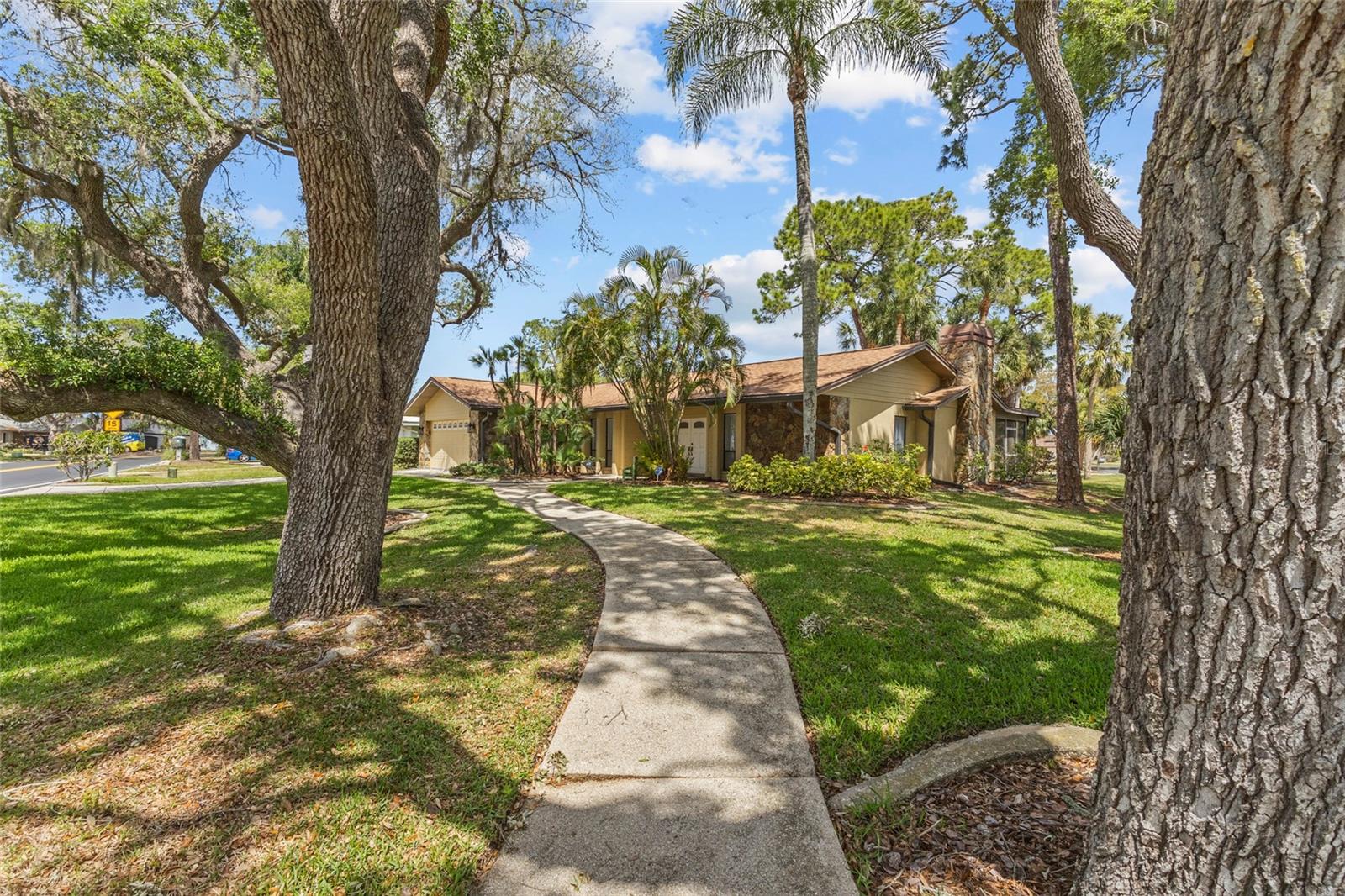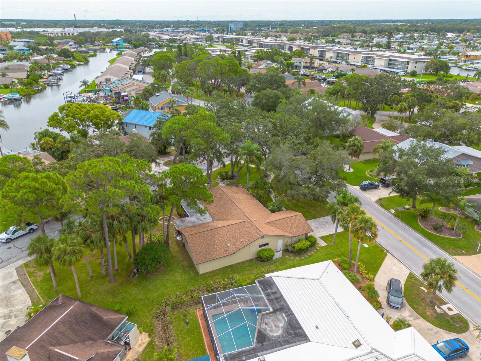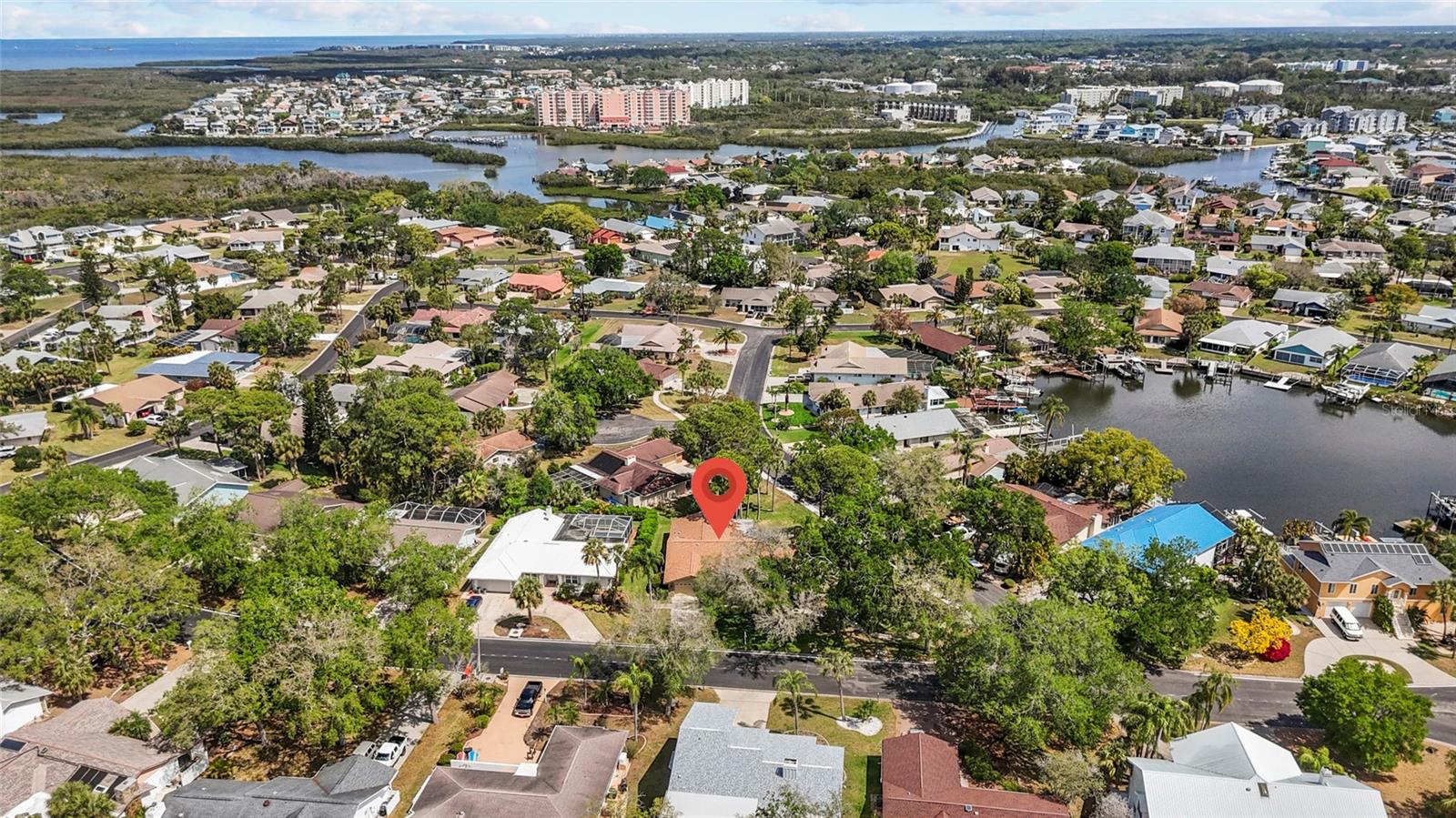 One or more photo(s) has been virtually staged. Live the Florida lifestyle with EXCLUSIVE ACCESS to Pasco County's ONLY GULF-FRONT BEACH!! Enjoy the residents-only POOL, TENNIS COURTS, BOAT LAUNCH and optional membership to the YACHT CLUB and BOAT SLIPS to rent as available! Located on a LUSHLY-LANDSCAPED corner lot, this home has been COMPLETELY RENOVATED and features a CHEF'S DREAM KITCHEN - brand new stainless FRIGIDAIRE GALLERY appliances, a center island GLASS COOKTOP and a hood that vents to the outside! GRANITE COUNTERS flow to a BREAKFAST BAR! The adjacent Breakfast Area and Family Room overlooks the stunning wood-burning FLAGSTONE FIREPLACE AND HEARTH, with a view through the FRENCH DOORS to the SUNLIT SCREENED LANAI! The FORMAL DINING ROOM welcomes family and friends, with plenty of room for a large table for SPECIAL GET-TOGETHERS! The large Entry Foyer opens to a spacious FORMAL LIVING ROOM. The primary Ensuite features ELEGANT FRENCH DOORS to the screened Lanai, brand new vanity with DUAL SINKS, a separate updated shower/commode, plus a CEDAR-LINED WALK-IN CLOSET and an additional built-in Closet! Each of the two guest Bedrooms has its own brand new vanity and commode, with a shared Shower/Tub in the center for MAXIMUM PRIVACY! The well-sized Laundry Room features NEW OVERHEAD CABINETS, vanity and stainless steel sink, with hook-ups ready for a washer and dryer! CLEAN 4-POINT home inspection! The WATER HEATER is BRAND NEW, and the electrical panel was replaced in 2019! AC was installed in 2021. Roof was new in 2014. The HURRICANE-PROOF GARAGE DOOR provides added security! This gem of a home is just minutes from the VIBRANT RIVERFRONT CITY of New Port Richey, with BREWERIES, COFFEE SHOPS, bakeries, and year-round FAIRS AND FESTIVALS! Less than 30 minutes to Tampa International Airport! Waterfront restaurants just five minutes away! A short drive to restaurants and the infamous SPONGE DOCKS in Tarpon Springs!