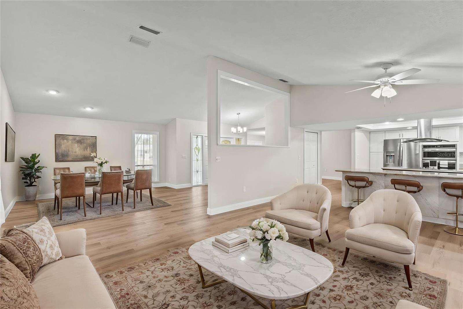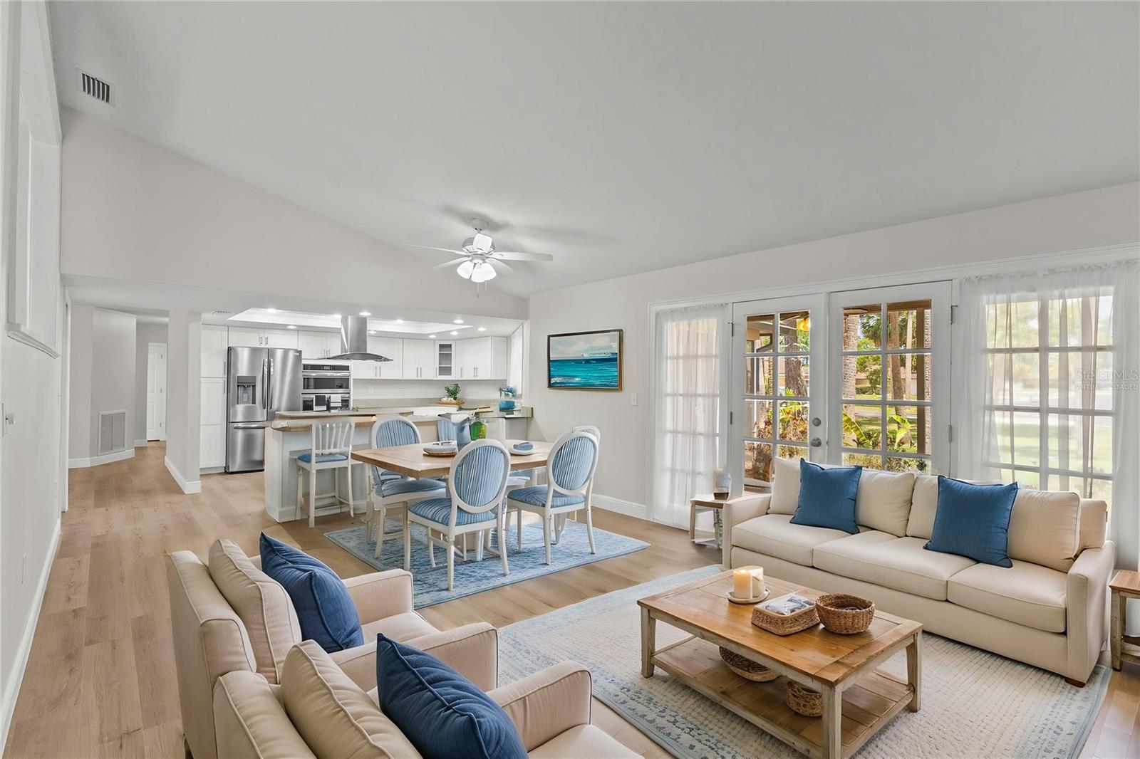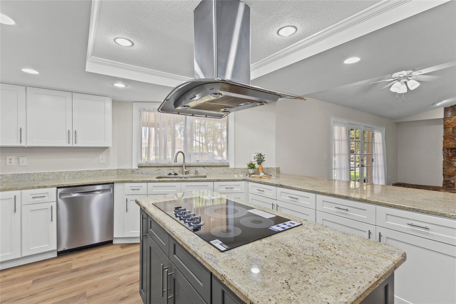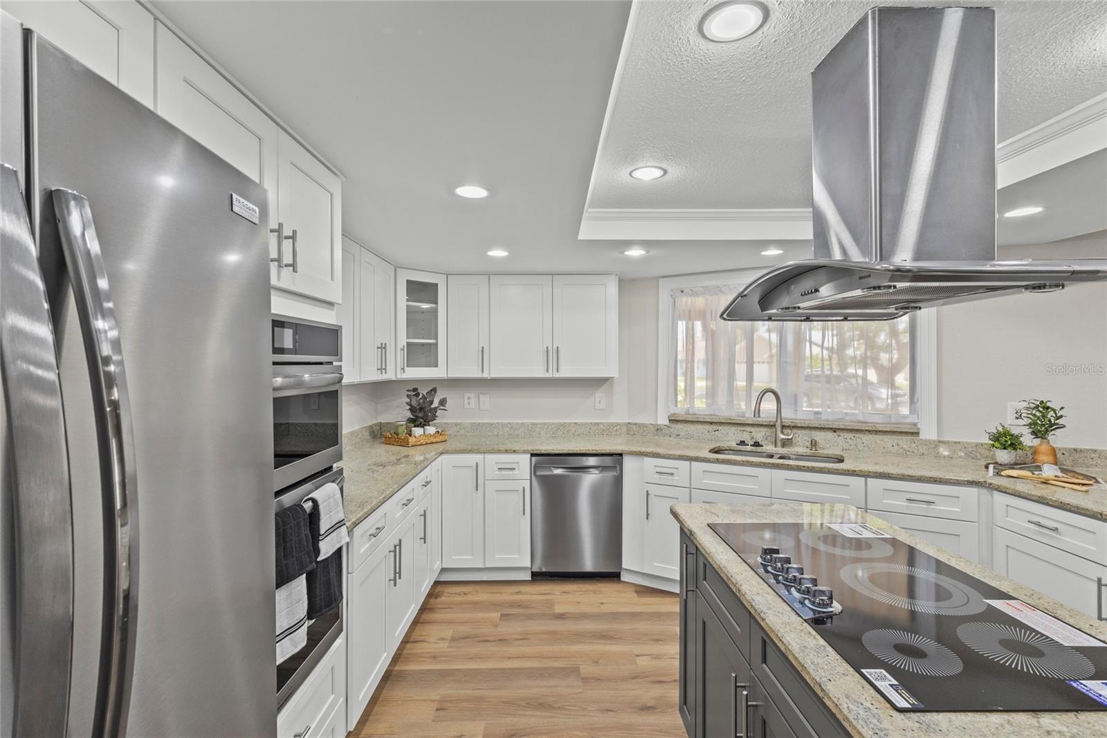 One or more photo(s) has been virtually staged. Live the Florida lifestyle with EXCLUSIVE ACCESS to Pasco County's ONLY GULF-FRONT BEACH!! Enjoy the residents-only POOL, TENNIS COURTS, BOAT LAUNCH and optional membership to the YACHT CLUB and BOAT SLIPS to rent as available! Located on a LUSHLY-LANDSCAPED corner lot, this home has been COMPLETELY RENOVATED and features a CHEF'S DREAM KITCHEN - brand new stainless FRIGIDAIRE GALLERY appliances, a center island GLASS COOKTOP and a hood that vents to the outside! GRANITE COUNTERS flow to a BREAKFAST BAR! The adjacent Breakfast Area and Family Room overlooks the stunning wood-burning FLAGSTONE FIREPLACE AND HEARTH, with a view through the FRENCH DOORS to the SUNLIT SCREENED LANAI! The FORMAL DINING ROOM welcomes family and friends, with plenty of room for a large table for SPECIAL GET-TOGETHERS! The large Entry Foyer opens to a spacious FORMAL LIVING ROOM. The primary Ensuite features ELEGANT FRENCH DOORS to the screened Lanai, brand new vanity with DUAL SINKS, a separate updated shower/commode, plus a CEDAR-LINED WALK-IN CLOSET and an additional built-in Closet! Each of the two guest Bedrooms has its own brand new vanity and commode, with a shared Shower/Tub in the center for MAXIMUM PRIVACY! The well-sized Laundry Room features NEW OVERHEAD CABINETS, vanity and stainless steel sink, with hook-ups ready for a washer and dryer! CLEAN 4-POINT home inspection! The WATER HEATER is BRAND NEW, and the electrical panel was replaced in 2019! AC was installed in 2021. Roof was new in 2014. The HURRICANE-PROOF GARAGE DOOR provides added security! This gem of a home is just minutes from the VIBRANT RIVERFRONT CITY of New Port Richey, with BREWERIES, COFFEE SHOPS, bakeries, and year-round FAIRS AND FESTIVALS! Less than 30 minutes to Tampa International Airport! Waterfront restaurants just five minutes away! A short drive to restaurants and the infamous SPONGE DOCKS in Tarpon Springs!
