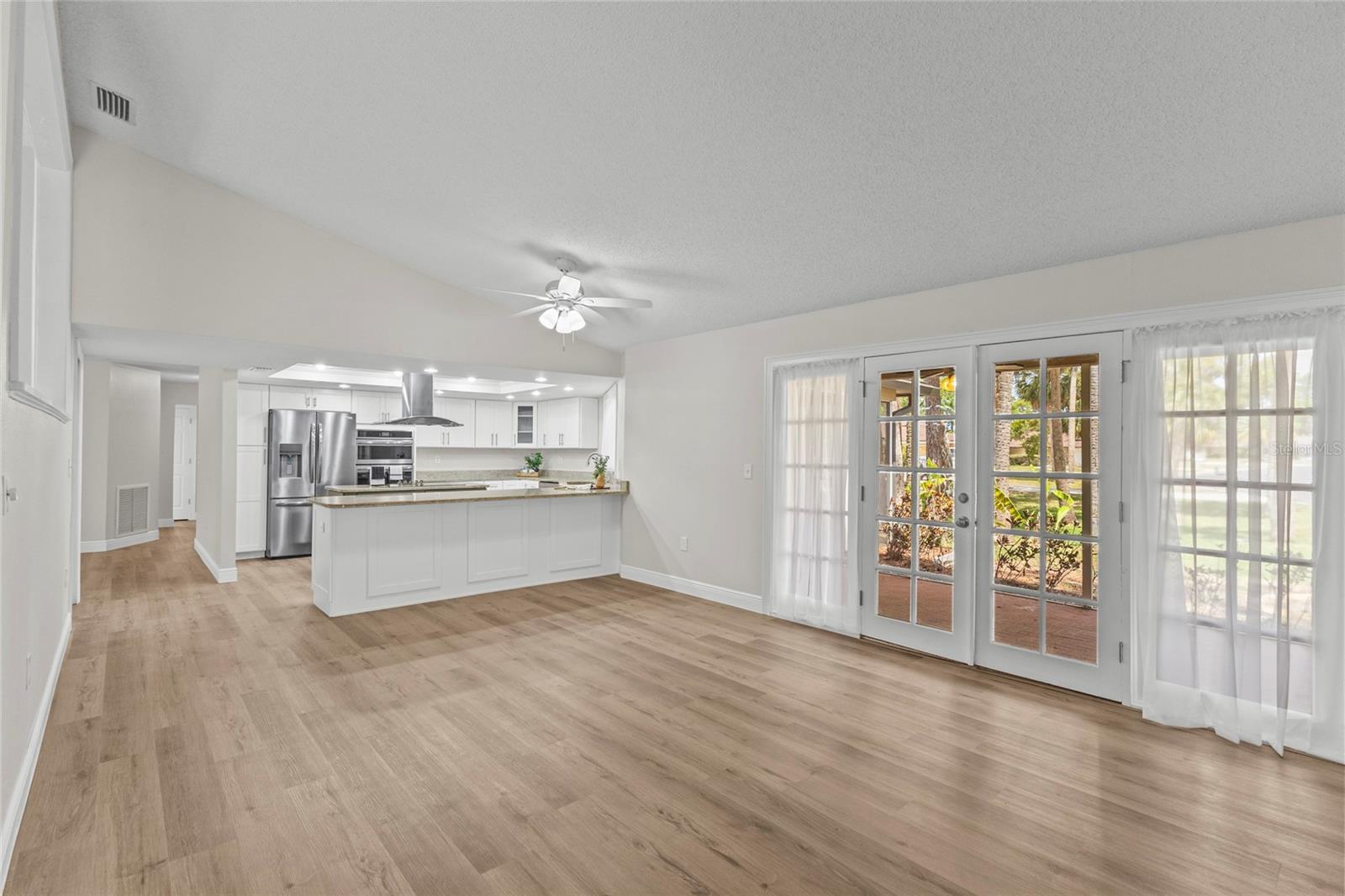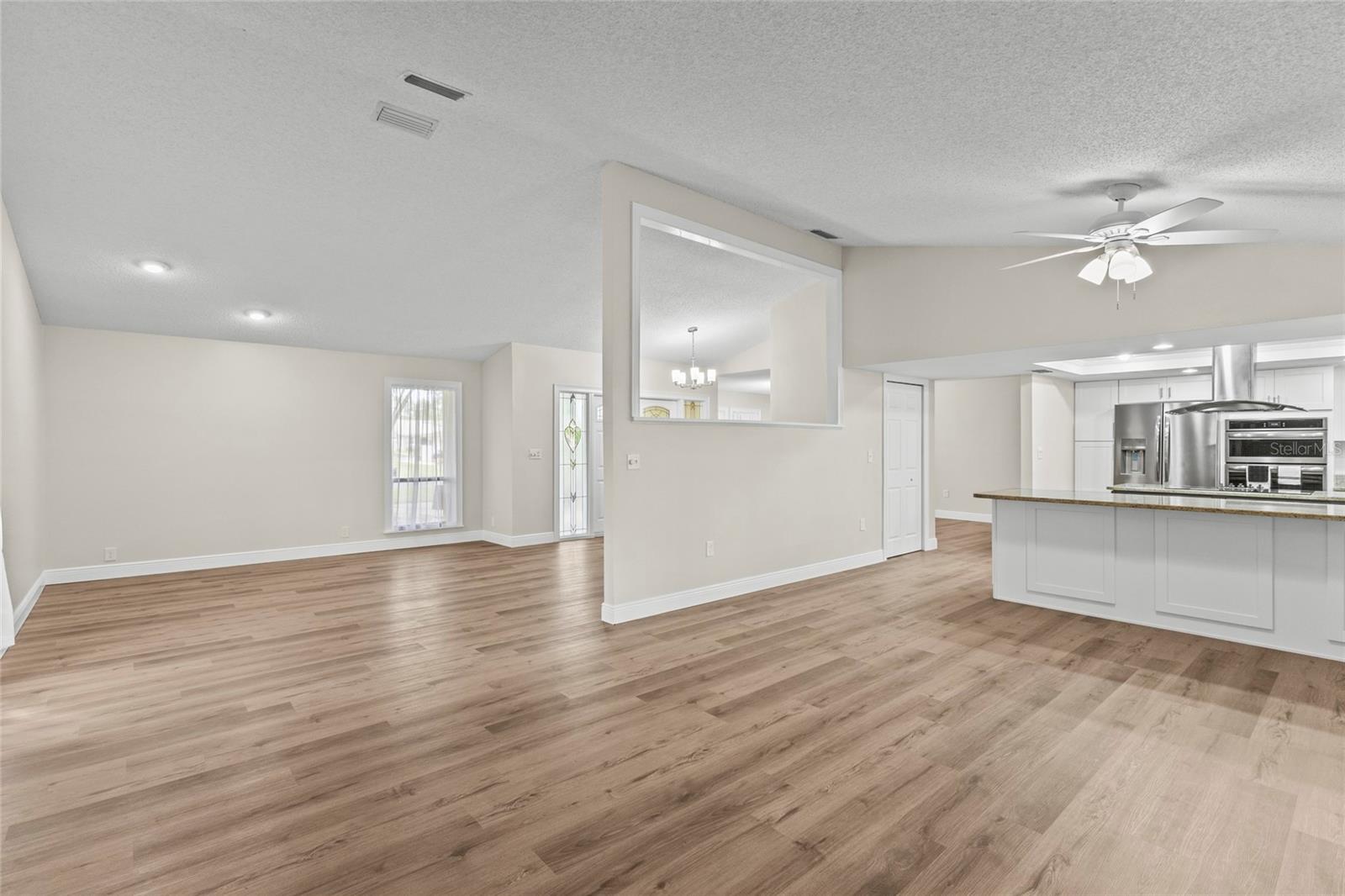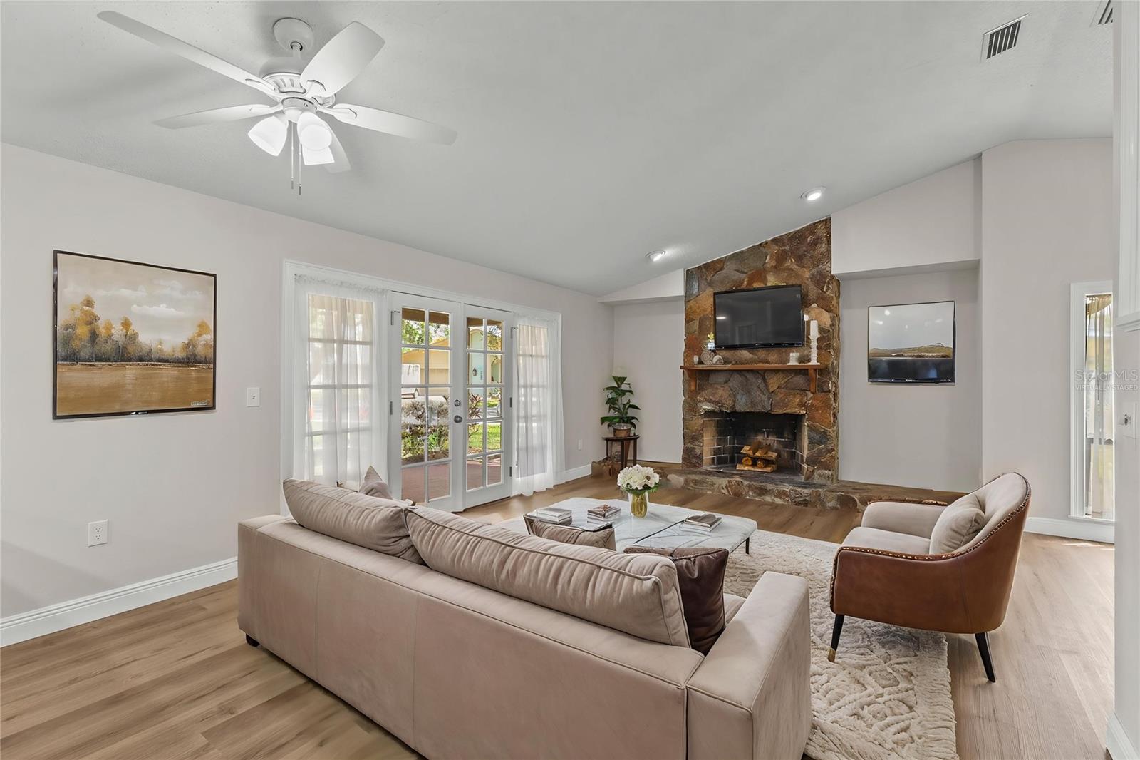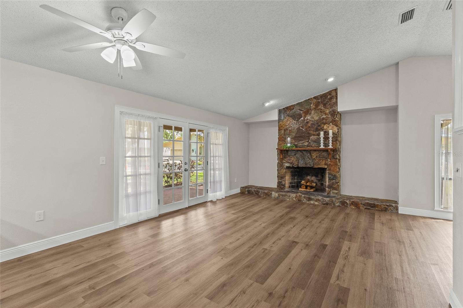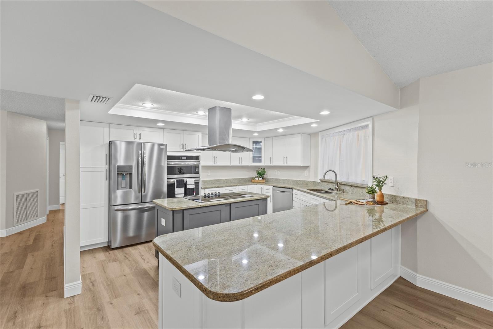 One or more photo(s) has been virtually staged. Live the Florida lifestyle with EXCLUSIVE ACCESS to Pasco County's ONLY GULF-FRONT BEACH!! Enjoy the residents-only POOL, TENNIS COURTS, BOAT LAUNCH and optional membership to the YACHT CLUB and BOAT SLIPS to rent as available! Located on a LUSHLY-LANDSCAPED corner lot, this home has been COMPLETELY RENOVATED and features a CHEF'S DREAM KITCHEN - brand new stainless FRIGIDAIRE GALLERY appliances, a center island GLASS COOKTOP and a hood that vents to the outside! GRANITE COUNTERS flow to a BREAKFAST BAR! The adjacent Breakfast Area and Family Room overlooks the stunning wood-burning FLAGSTONE FIREPLACE AND HEARTH, with a view through the FRENCH DOORS to the SUNLIT SCREENED LANAI! The FORMAL DINING ROOM welcomes family and friends, with plenty of room for a large table for SPECIAL GET-TOGETHERS! The large Entry Foyer opens to a spacious FORMAL LIVING ROOM. The primary Ensuite features ELEGANT FRENCH DOORS to the screened Lanai, brand new vanity with DUAL SINKS, a separate updated shower/commode, plus a CEDAR-LINED WALK-IN CLOSET and an additional built-in Closet! Each of the two guest Bedrooms has its own brand new vanity and commode, with a shared Shower/Tub in the center for MAXIMUM PRIVACY! The well-sized Laundry Room features NEW OVERHEAD CABINETS, vanity and stainless steel sink, with hook-ups ready for a washer and dryer! CLEAN 4-POINT home inspection! The WATER HEATER is BRAND NEW, and the electrical panel was replaced in 2019! AC was installed in 2021. Roof was new in 2014. The HURRICANE-PROOF GARAGE DOOR provides added security! This gem of a home is just minutes from the VIBRANT RIVERFRONT CITY of New Port Richey, with BREWERIES, COFFEE SHOPS, bakeries, and year-round FAIRS AND FESTIVALS! Less than 30 minutes to Tampa International Airport! Waterfront restaurants just five minutes away! A short drive to restaurants and the infamous SPONGE DOCKS in Tarpon Springs!