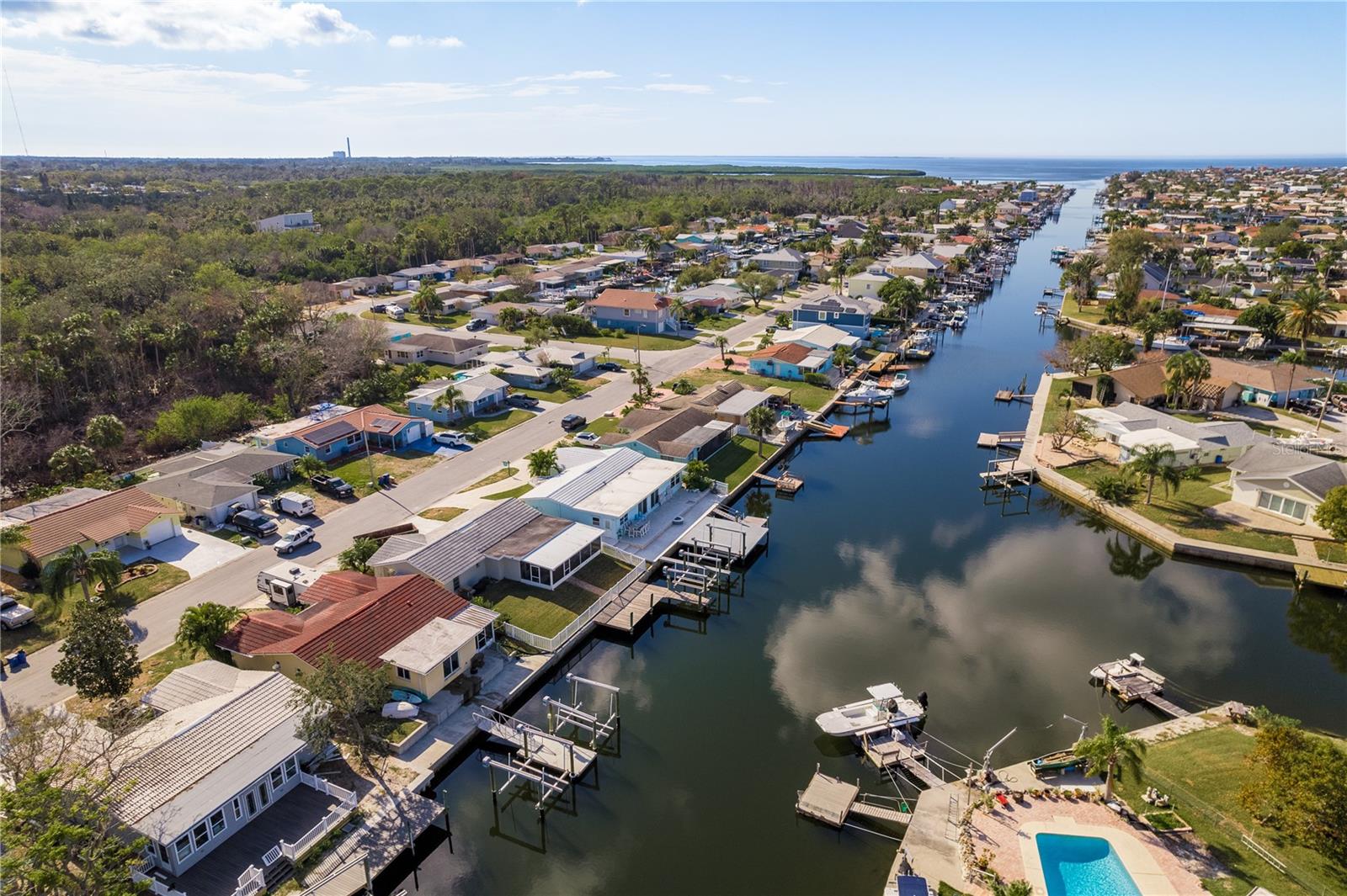Come enjoy the Tropical Lifestyle in this newly renovated 3-bedroom, 2-bath home featuring 66 feet of waterfrontage with 10,000 lb. lift, huge 24 x 24 fixed dock with composite decking, convenient catwalk on the side of the lift, and brand-new floating dock. Situated on the deep sailboat-friendly South Channel with quick, easy, direct and unobstructed access to the open Gulf waters! Located in the highly sought-after community of Gulf Harbors. This home offers a great 3-way split-floor plan boasting a spacious living room with built in electric fireplace. The kitchen features solid wood cabinets, quartz countertops, stainless steel appliances, built-in desk area and large breakfast bar serving into the family room. The large family room features hurricane-grade sliding doors leading out to the large Travertine paver deck and offers beautiful and expansive water views. Off one end of the family room is the large primary suite which also offers wonderful water views, sitting/office area, huge walk-in closet and private primary bath with step-in shower. Off the other end of the family room is one of the 2 guest bedrooms with water views and its own access to the garage. The other guest bedroom located in the front of the home is gracious in size and has a large walk-in closet. Both guest bedrooms are served by a full guest bathroom. The home offers Travertine tile and Plantation Shutters throughout. The huge Travertine paver deck in the backyard is a perfect place to entertain your envious guests and enjoy the cool gulf breezes and has a built-in gas fire pit! The large paver circular drive allows for plenty of parking. This home has been completely replumbed, new electrical throughout, all drywall has been replaced from top to bottom. New HVAC system, duct work approximately 5 years old. This home is ready for you & your boat(s) to start enjoying the sandy beaches of nearby tropical islands! Excellent fishing, diving, water sports, shelling, island exploring, and more all right outside your door! Gulf Harbors is a golf cart friendly community and has an optional association that offers 2 boat ramps & other amenities. You also have the option to join the Gulf Harbors members-only private sandy beach overlooking the beautiful Gulf and Anclote Key offering cabanas & grills. Downtown New Port Richey, just a short drive away is lively and quaint with many restaurants, bars, shops, and Sims Park where you can enjoy one of the many special events and outdoor concerts throughout the year or stroll along the beautiful riverwalk along the Cottee River. Schedule your viewing today!