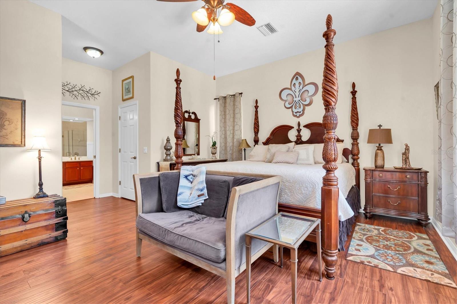 Beautiful 4BR/2.5BA home with over 3,300 sq ft in the highly desirable Longleaf community! Built in 2006, this spacious home offers a main-floor primary suite with dual walk-in closets, garden tub & separate shower. Formal living & dining rooms plus an open kitchen with island, eat-in area & views of the family room. Upstairs features a large loft—perfect for office, playroom, or media room. Interior laundry room adds convenience. Enjoy outdoor living with a screened patio, heated pool (2020), fenced yard, and large front porch with brick pavers. Sit on your front porch and look out to the nice open greenspace. Major updates include roof (2019), A/C (2021), gas water heater (2022). Longleaf offers parks, playgrounds, sports courts, walking trails, a dog park, town center, and a community pool. Zoned for top-rated schools! Move-in ready with space, upgrades & location!