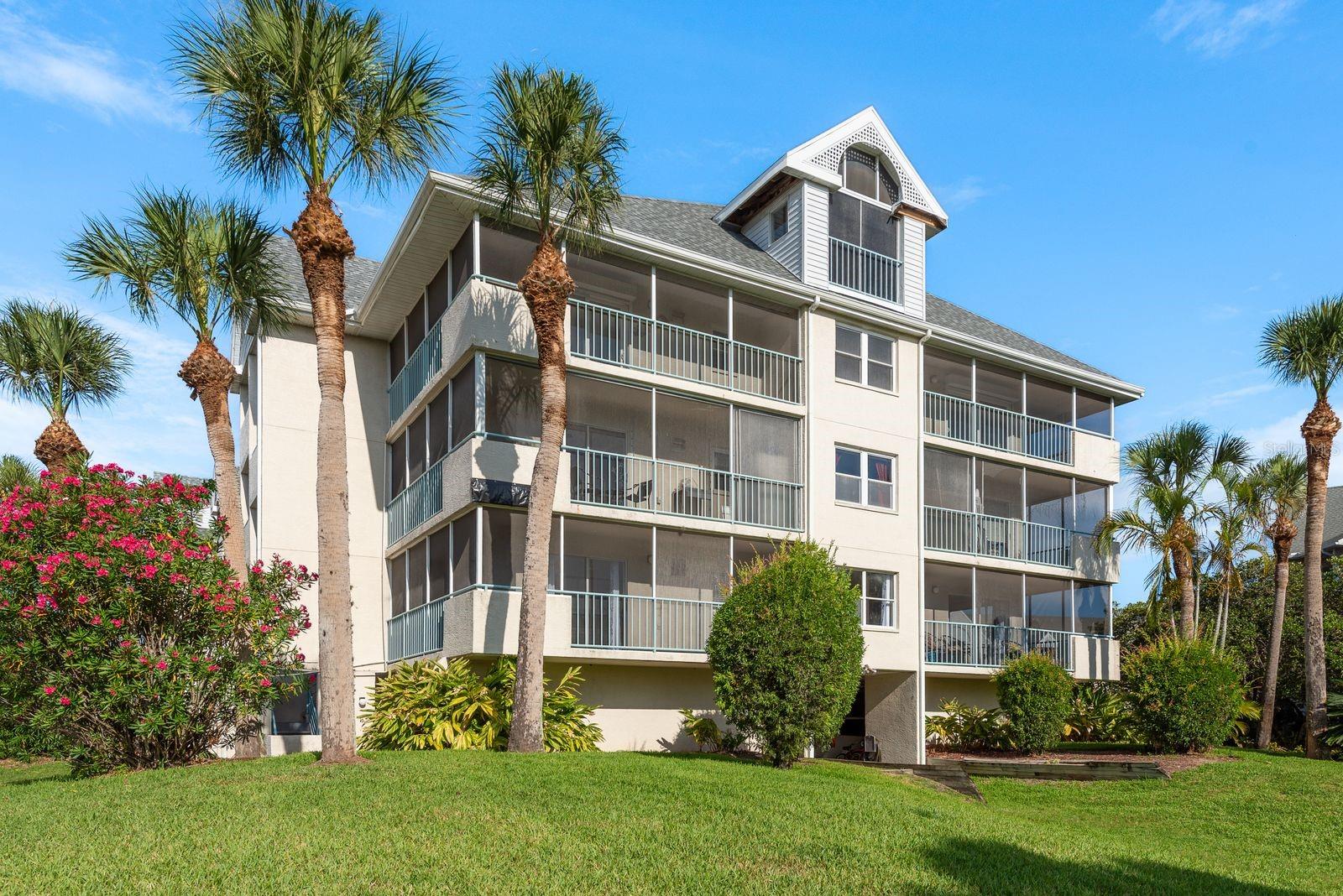 Beautiful Waterfront 2-Bedroom Condo with Wrap-Around Balcony & Airbnb Potential. Welcome to this spacious and beautifully decorated 2-bedroom, 2-bathroom condo located on a serene canal with access to boat slips. While this unit does not come with a deeded slip, there are often slips available for sale or rent — a great option if waterfront living and boating are part of your lifestyle. Boasting over 1,400 square feet of living space, this condo offers a light and airy feel with three sets of sliding glass doors that open onto a screened wrap-around balcony—perfect for enjoying both sunrise and sunset views. Inside, you'll find an open and generously sized living and dining area, plus a modern kitchen featuring: Beautiful laminate flooring, Granite countertops, Stainless steel refrigerator and dishwasher, Ample cabinetry and eat-in space. The split-bedroom layout offers privacy, with the primary suite featuring: King-size bed, Dual vanity bathroom with separate tub and shower, Walk-in closet, Private sliding door to the balcony. Additional features include a full-size laundry room with washer and dryer, and the condo comes fully furnished if desired. Plus, short-term rentals (e.g., Airbnb) are allowed, making this an excellent investment opportunity. Located on the first floor above the parking garage, the unit provides both convenience and security. Owners enjoy covered parking in the garage with one reserved space, along with additional guest parking outside. The Community offers 2 pools, community boat ramp, tennis and pickle ball courts. Monthly fees include internet, basic cable, sewer, trash, pest control, exterior maintenance, roof repair and more. Community has access to Gulf Harbors private beach also for an optional fee of $200 per year . Don’t miss your chance to own this stunning waterfront condo in a desirable community — ideal for full-time living, a vacation getaway, or an income-producing rental! Seller will do owner financing with a 5 year balloon with 20% down; fed rate or lower. Owner will assist with buyer's closing costs!!! Also, listed as a seasonal rental.