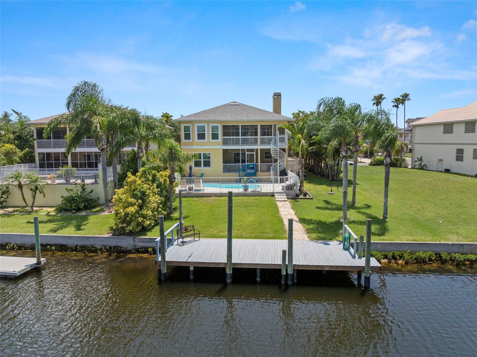 What a gem on the Gulf! This home has been lovingly maintained and features so many terrific extras YOU WILL BE AMAZED! This waterfront pool home has ONE OF THE BEST open views in the community -- the home is situated at the end of a wide canal instead of across from other homes. You will be visited by dolphins, manatee and shore birds on a regular basis! The pool deck is spacious and fenced and is the best place to entertain or enjoy the Florida sunshine. 2 living levels create so many options for the next owner -- the lower level has minimal steps and could be the perfect in-law suite with an open floor plan, complete kitchen, 2 bedrooms and 1 bath with a walk-in shower. That level could also be turned into an income-producing space, or the best temporary home for friends and family when they visit. AND THERE'S AN ELEVATOR!! (inspected and maintained regularly) The top level is the main living space with an open floor plan, split bedrooms (3), and 2 bathrooms, both with walk-in showers. The master is spacious and features large bay windows overlooking the beautiful water and inviting pool -- what a view to wake up to each morning! One of the bedrooms on the front of the home has access to a covered balcony to view sunsets and enjoy the salt air breezes off the Gulf waters. And BOTH living levels feature large, screened lanais overlooking the water and pool areas - double decker open air living! Florida living at its finest! The kitchen upstairs also has a small deck with a propane line for grilling. How convenient! The garage is on the lowest level and has a surprise inside -- a private office space with all the electronics and privacy to conduct business without interruption. The garage also features pulleys for bicycle storage out of the way and other storage options for water toys and tools. The amenities of this home are nearly endless -- so here we go: New roof 2024; top floor HVAC air handler replaced 2024; all new hurricane resistant windows and doors 2019; large Generac generator that will keep the power on for days to the entire property; 500 gallon buried propane tank that provides gas to the generator, grills and fireplace; new 60 gallon water heater installed 2025; new pool equipment/pump/filter installed recently; UV lights have been installed into both HVAC air handlers for eradicating mold/mildew; fiberglass pool resurfaced recently; newer luxury vinyl flooring in smaller living quarters; interior and exterior painted in the last 5 years. On top of the great amenities of this home, the community offers so much to its residents -- there is a large clubhouse with regular events and activities, a community boat ramp, picnic areas, swimming pool, waterfront dockage at the clubhouse, tennis/pickleball courts and access to the only private beach club in the Tampa Bay/Nature Coast area of the Gulf. Only an hour away from 2 airports - TPA and PIE and within minutes of the trendy historic downtown of New Port Richey -- this home is situated in a true hot spot near Tampa Bay, voted one of the best places to live in the USA.